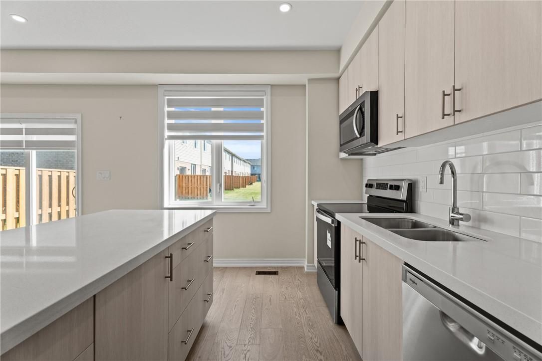 Welcome to 8 linden park lane, hamilton - a modern end unit townhome showcasing over $100,000 in premium upgrades! Enjoy an open-concept layout filled with natural light, upgraded flooring throughout, a designer kitchen with quartz countertops and stainless-steel appliances, and elegant finishes from top to bottom. The spacious primary suite offers a luxurious ensuite and walk-in closet. Convenient garage access, upper-level laundry, and a private backyard make this home perfect for modern living. Located in a desirable, family-friendly community close to parks, schools, shopping, and easy highway access.