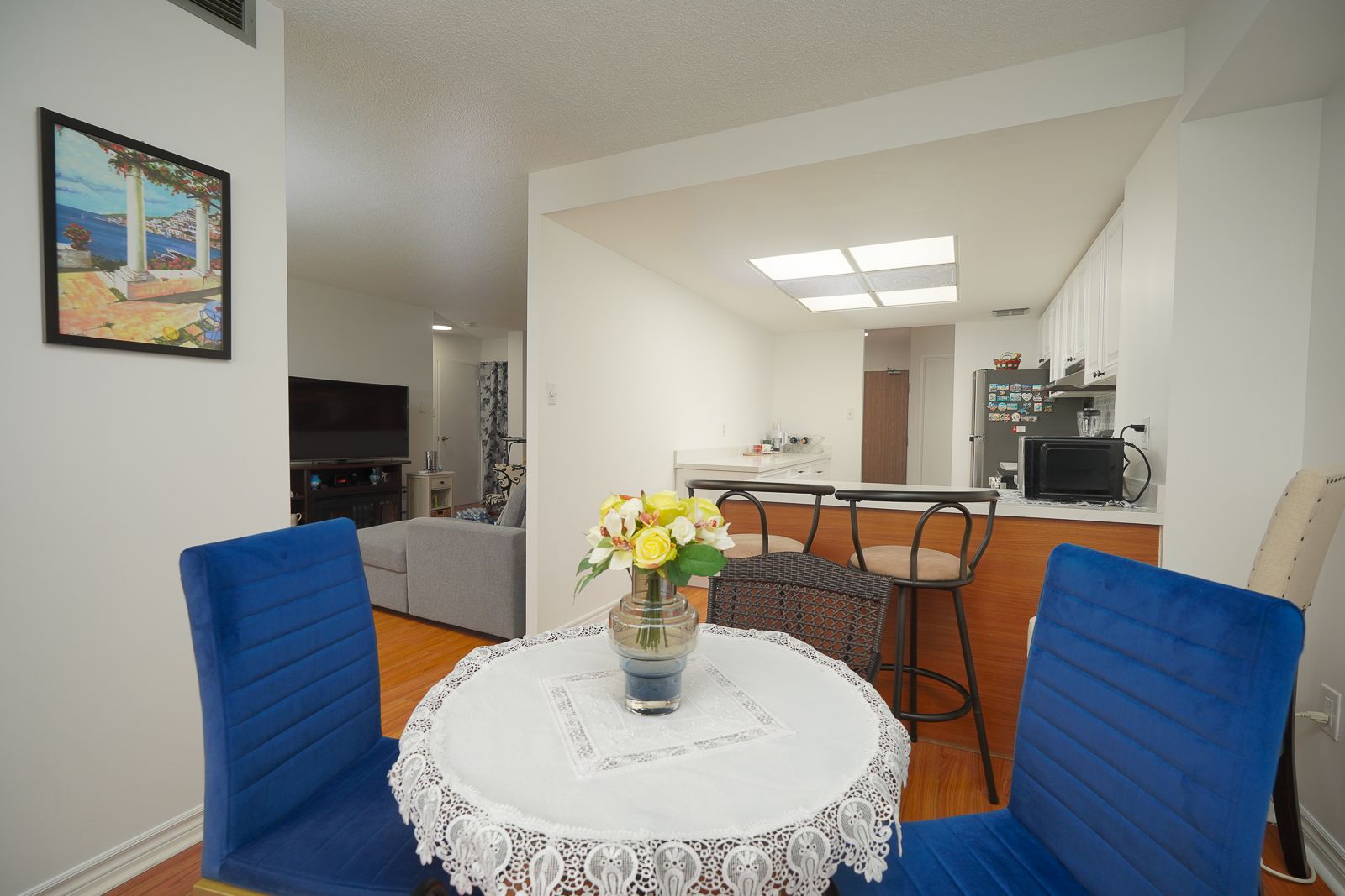 8 lisa st. #2104 - beautifully updated & over sized condo living with 1100 sq. Ft. Of living space (mpac) welcome to this beautifully updated & over sized 1 bedroom condo suite offering exceptional comfort and functionality. This very spacious unit features a 4-piece ensuite bathroom, plus a convenient 2-piece powder room-perfect for guests. Enjoy the added versatility of a bright solarium, ideal for a home office, reading nook, additional living space or added bedroom for guests. The modern updated kitchen boasts a breakfast bar, lots of addition counter space and ample cupboard space, making it both stylish and practical. Additional highlights include: ensuite laundry, ensuite storage area, 1 parking space included. Residents enjoy access to outstanding building amenities, including: fully equipped gym, indoor and outdoor pools, sauna & billiard room. Squash & racquet courts, tennis court. A fantastic opportunity to own a move-in-ready unit in a well-appointed building with resort-style amenities. 24 hours gatehouse with security for added peace of mind.