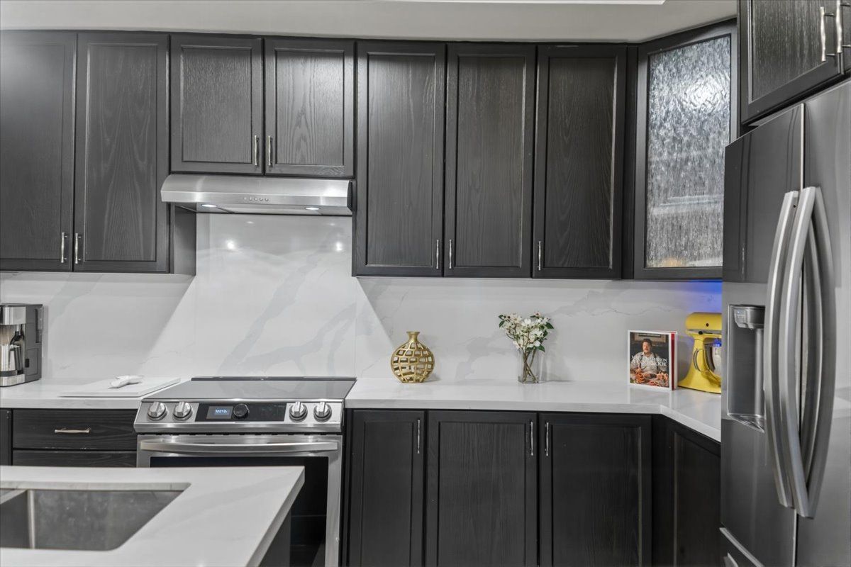 • Family-sized kitchen with stainless steel appliances and breakfast area.