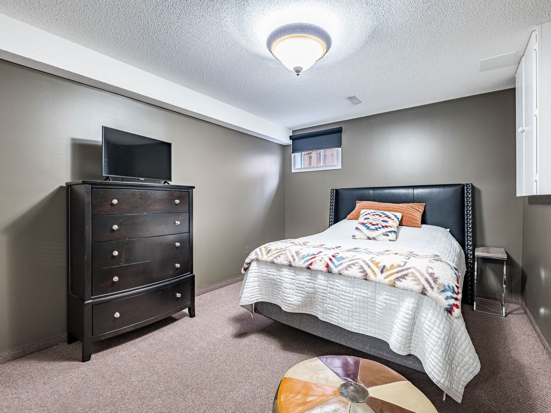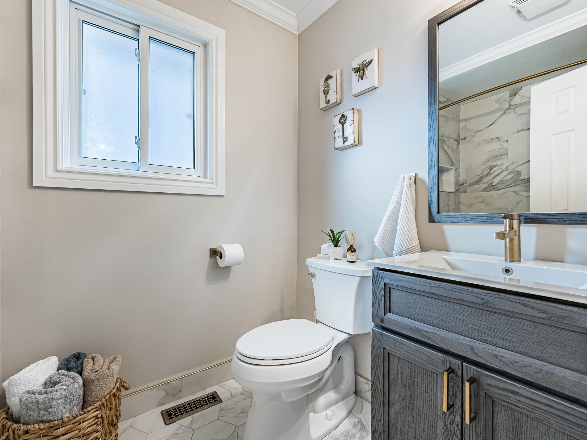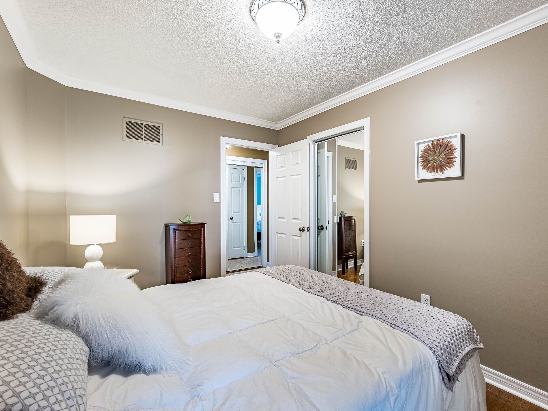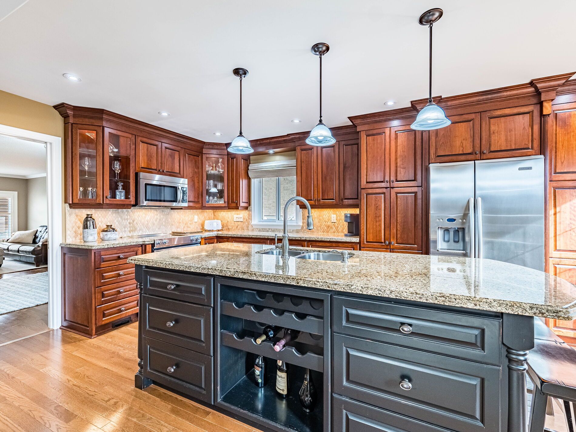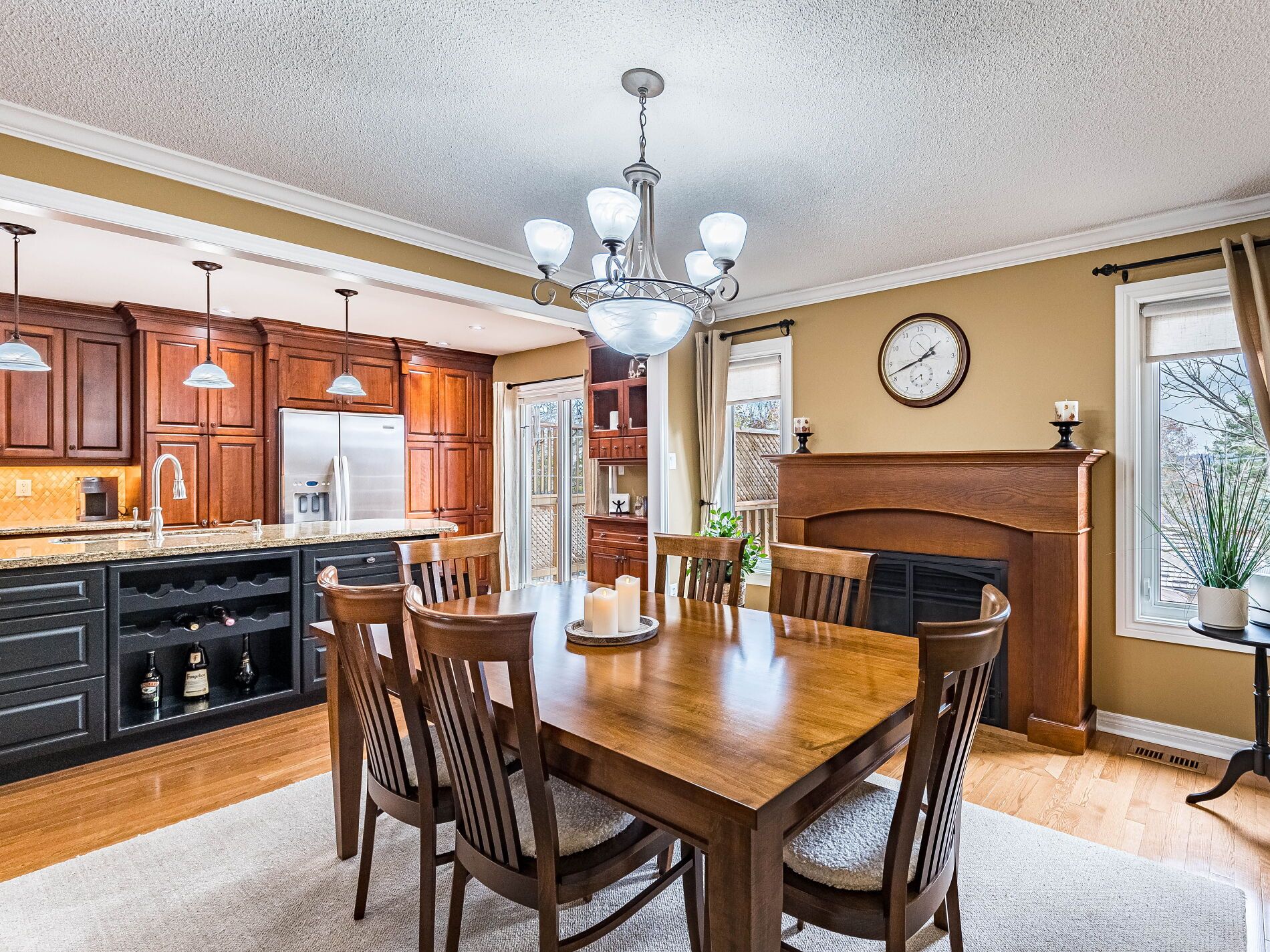 Welcome to 8 macallister court - where pride of ownership meets exceptional value. This impeccably maintained all-brick 3+1 bedroom bungalow offers a bright, open-concept layout on both levels and a long list of premium updates. The modern, fully remodelled kitchen is a standout centerpiece, featuring granite counters, center island, built-in appliances, and updated kitchenaid stove and dishwasher (2024). Main level enhancements include hardwood and porcelain flooring, crown moulding, updated window coverings (2024), most windows replaced, central air & central vac (2018). A skylight in the upper hall adds beautiful natural light. The finished walkout basement is designed for versatility and comfort-featuring a large family room, games area, solid oak wet bar, custom fireplace mantel, gas fireplace, a spacious guest bedroom, office, and renovated 3-pc bath (2024). With a separate - walk -out entrance, it is ideal for an in-law suite. Tv and soundbar behind the bar are included. Outdoor spaces impress with a south-facing upper deck (2023), walkout patio, landscaped yard featuring side masterpiece stone stairs, large powered shed, irrigation system, and convenient power outlet on the back lawn. Family room is currently being used as a dining room. Additional premium updates include: garage insulated, drywalled & epoxy flooring (2024) front porch epoxy (2024) main bath renovation (2024) on-demand water heater (2025) water softener (2024) washer (2023) main floor laundry hookups plus full laundry room in basement. Location is unbeatable-just minutes to highway 400, top-rated schools, beautiful parks and trails, and a great selection of restaurants, shops, and everyday amenities. This exceptional property blends craftsmanship, thoughtful upgrades, and functionality-a true rare find in a coveted court location.