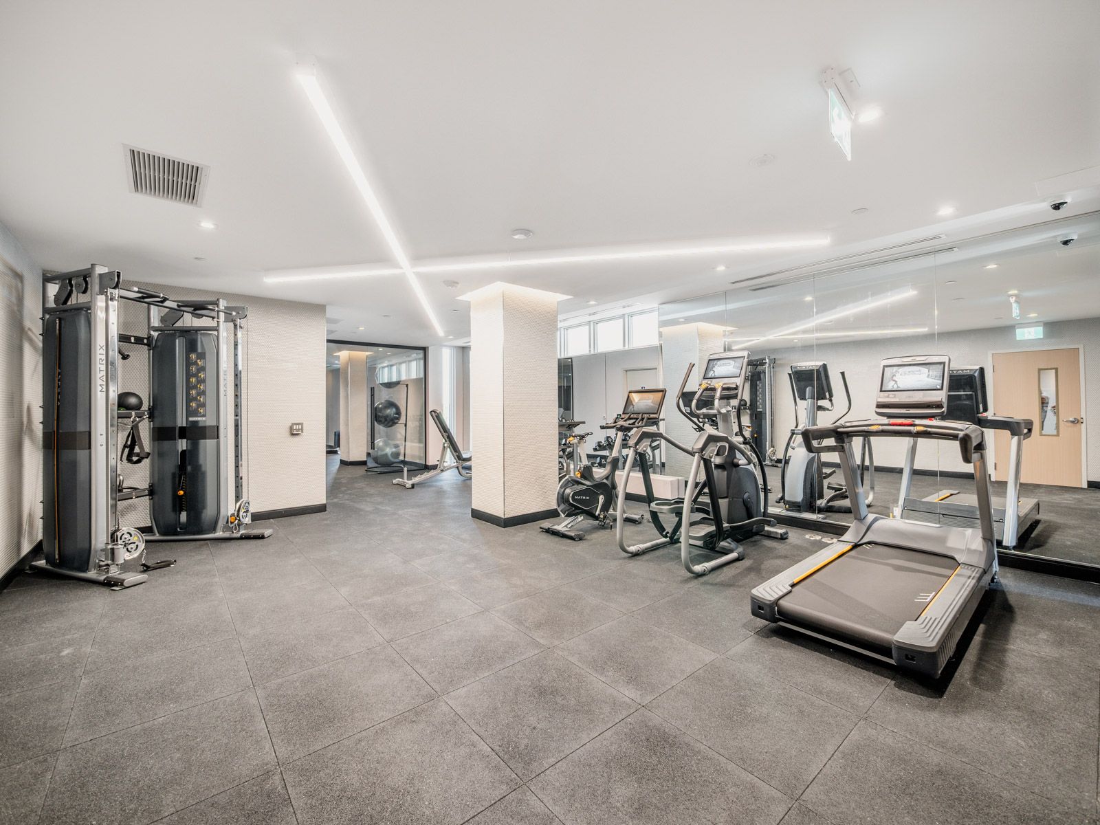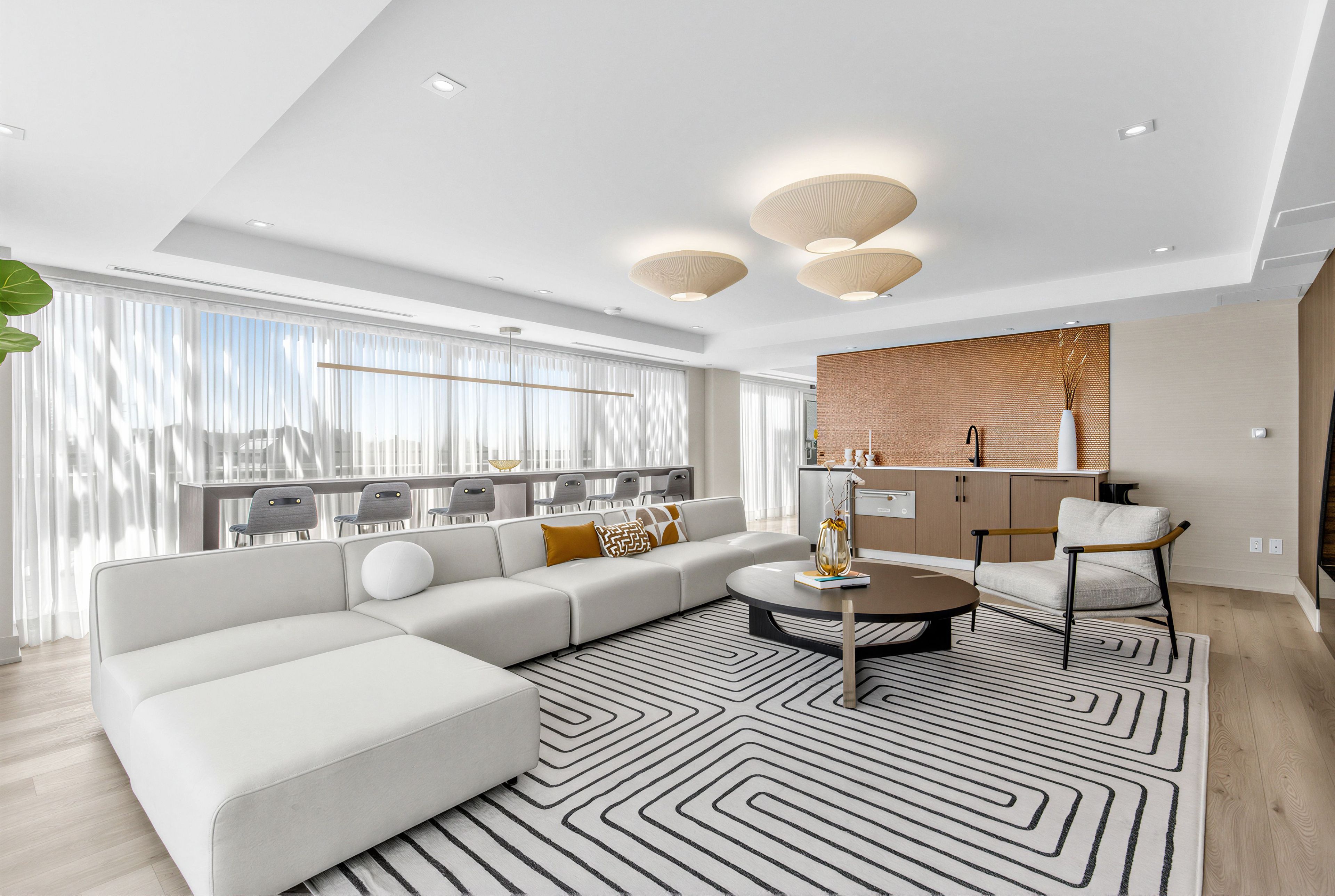 • Top-notch building amenities like a gym, yoga studio, and rooftop lounge.