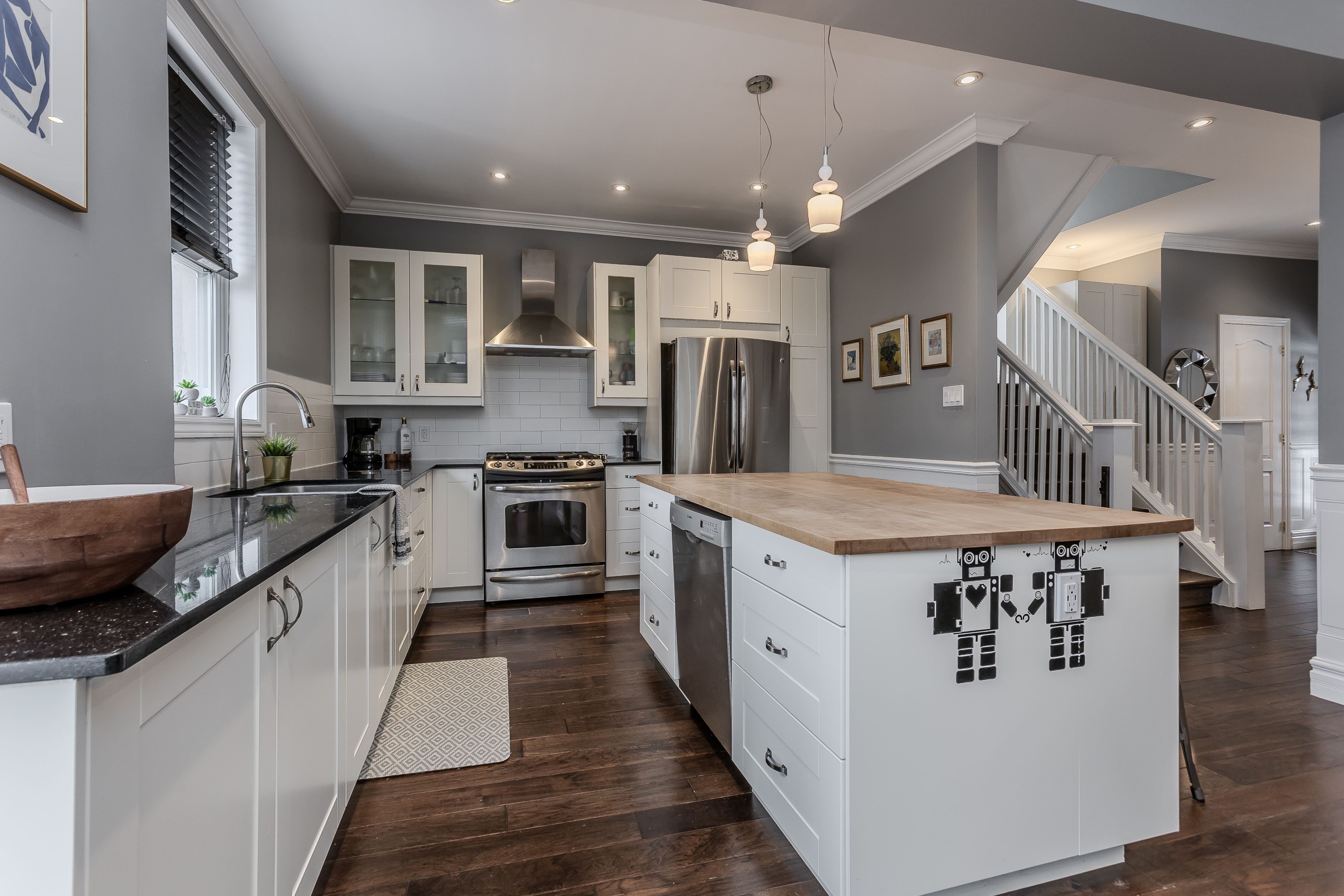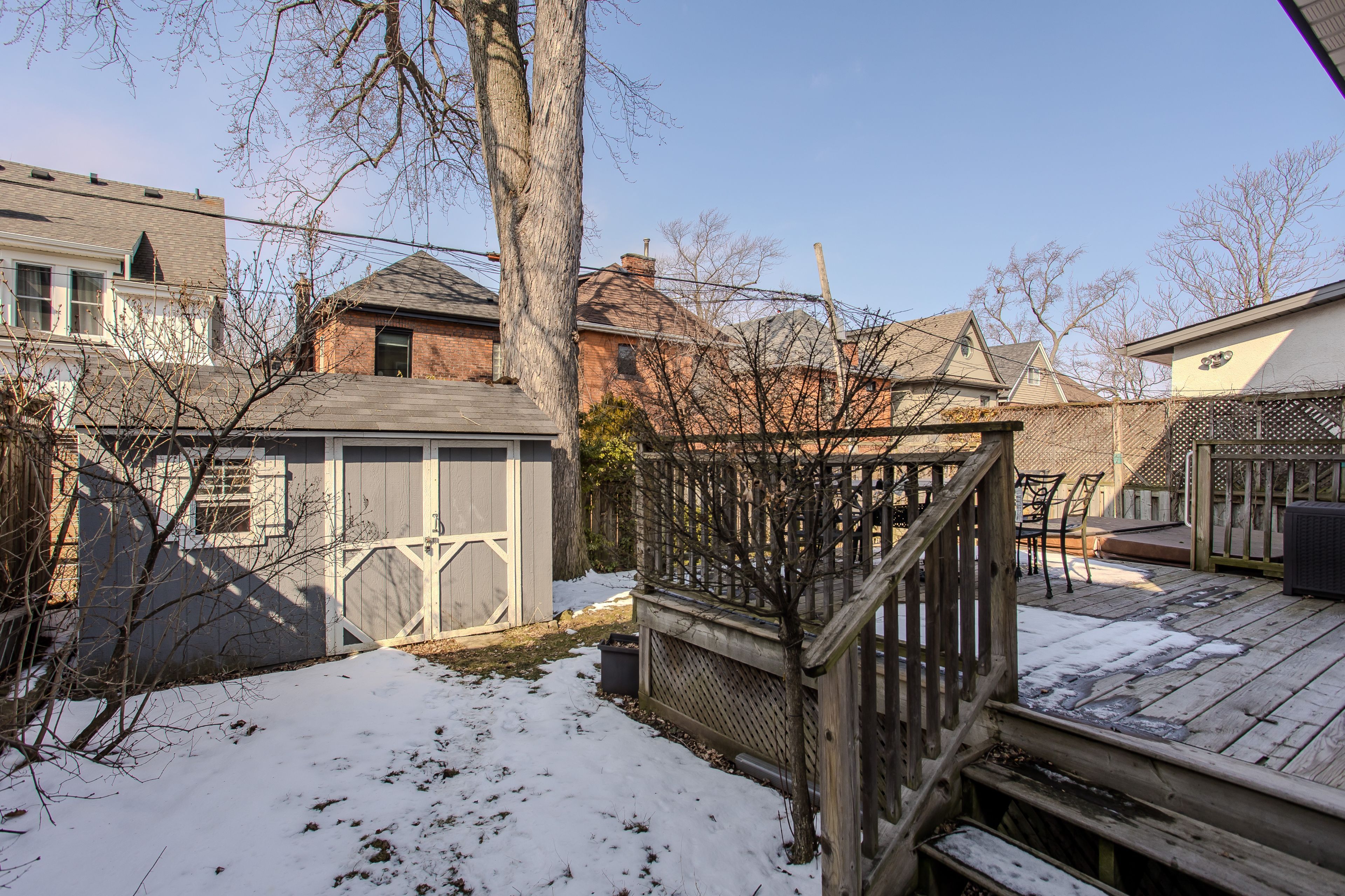 Tucked into a sought-after neighbourhood directly across from a park, this beautiful family home offers the perfect blend of charm, function, and lifestyle. With 2573 sqft of living space and mins to mcmaster university, mohawk college, hillfield strathallan college, and miles of trails including the radial and rail trail, adventures are right at your doorstep. Enjoy quick access to the dundurn stairs, the 403/lincoln, and spend evenings strolling to locke street's local shops, cafés, and restaurants. Everyday amenities are all within easy reach. Exceptional curb appeal welcomes you home with a covered front porch, manicured gardens, a mature peach tree, and a long driveway. Step inside to hardwood floors throughout the main level, complemented by wainscoting and crown moulding that add timeless character. The inviting living room features a stone surround media wall with fireplace rough-in for aesthetic appeal, creating a warm focal point for family movie nights. The dining area offers a bright bay window and walkout to the back deck, seamlessly connecting indoor and outdoor living. The kitchen is designed for peak everyday living, with a butcher block island, granite countertops, subway tile backsplash, ss appliances, and range hood. A convenient 2pc powder room completes the main floor. Upstairs, hardwood flooring continues through 3 well-sized bedrooms and a spa-like 5pc bathroom featuring dual sinks, a freestanding tub & glass shower. The third-floor loft-style primary retreat is a true standout, offering expansive space, hardwood floors, walk-in closet and a private 5-piece ensuite with dual sinks & soaker tub. The fully finished lower level adds versatile living space with a rec room, laminate flooring, laundry, and walk-up access to the backyard. Outside, enjoy a fully fenced yard with a wooden deck, hot tub, lilac tree, mature silver maple, shed, and plenty of green space for kids & pets to play. This is a home where family memories are waiting to be made.