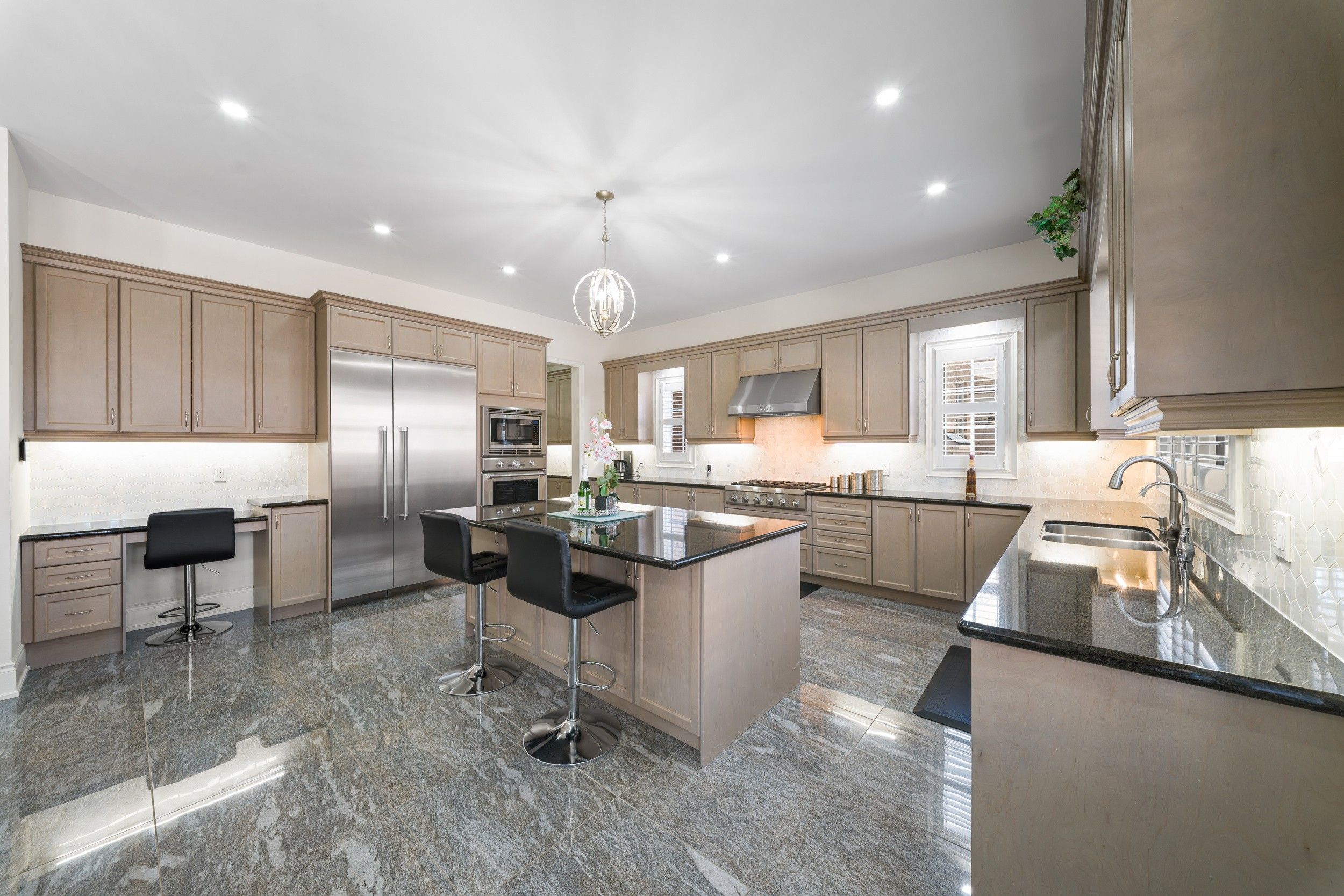 • Modern kitchen with granite counters and top-of-the-line appliances.
