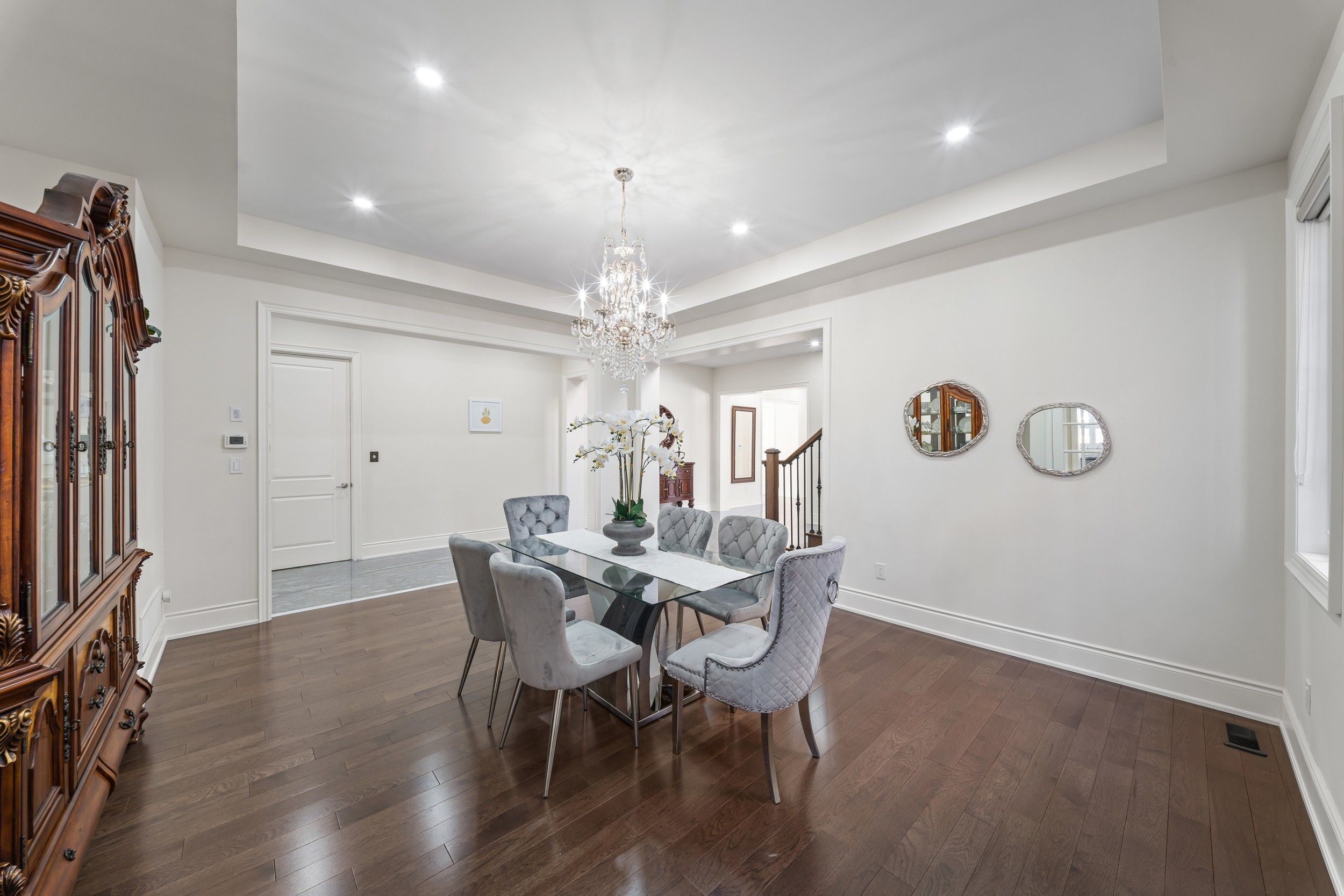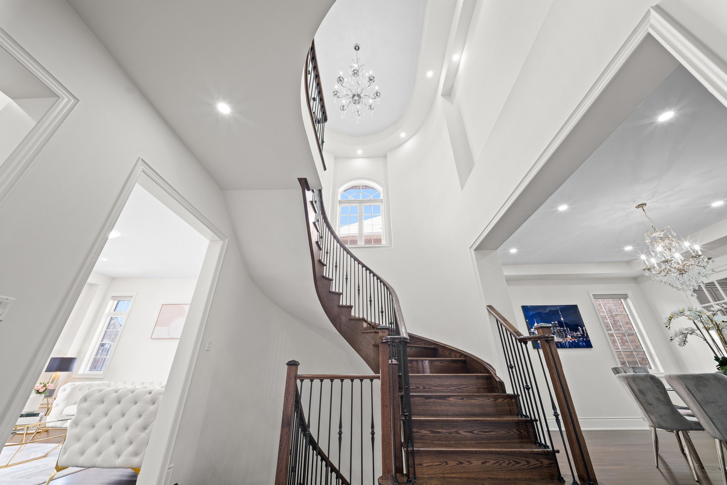 6105sq ft as per floor plan!! Welcome to this incredibly beautiful home featuring a 4-car garage, built on 81 ft wide lot. Main floor features an elegant & grand layout with separate family room, sep living & sep dining room. Spacious den with french doors ideal for a home office. Upgraded hardwood & porcelain tiles on the main floor. Pot lights inside & outside. Two powder rooms on the main floor with quartz countertop. Fully upgraded modern kitchen showcases granite countertops, stainless steel thermador appliances. Second floor offers 5 spacious bedrooms each with walk-in closets & 5 full washrooms. A rare opportunity to own a home that perfectly blends space, elegance & functionality. Entirely upgraded home with elevator opening to all 4 levels(basement, garage, main floor & second floor). Smooth ceiling on the main floor. Separate line for filtered water. Built-in speakers on main floor. Sprinkler system, covered loggia, bbq gas line outside & 2 humidifiers. Two laundries (on the main & second floor). Sep entrance to unfinished basement..