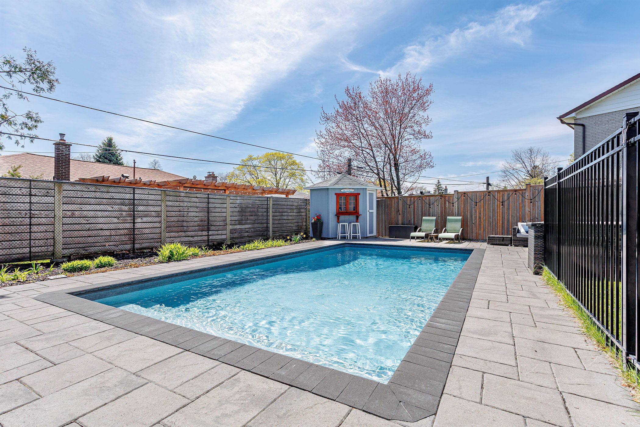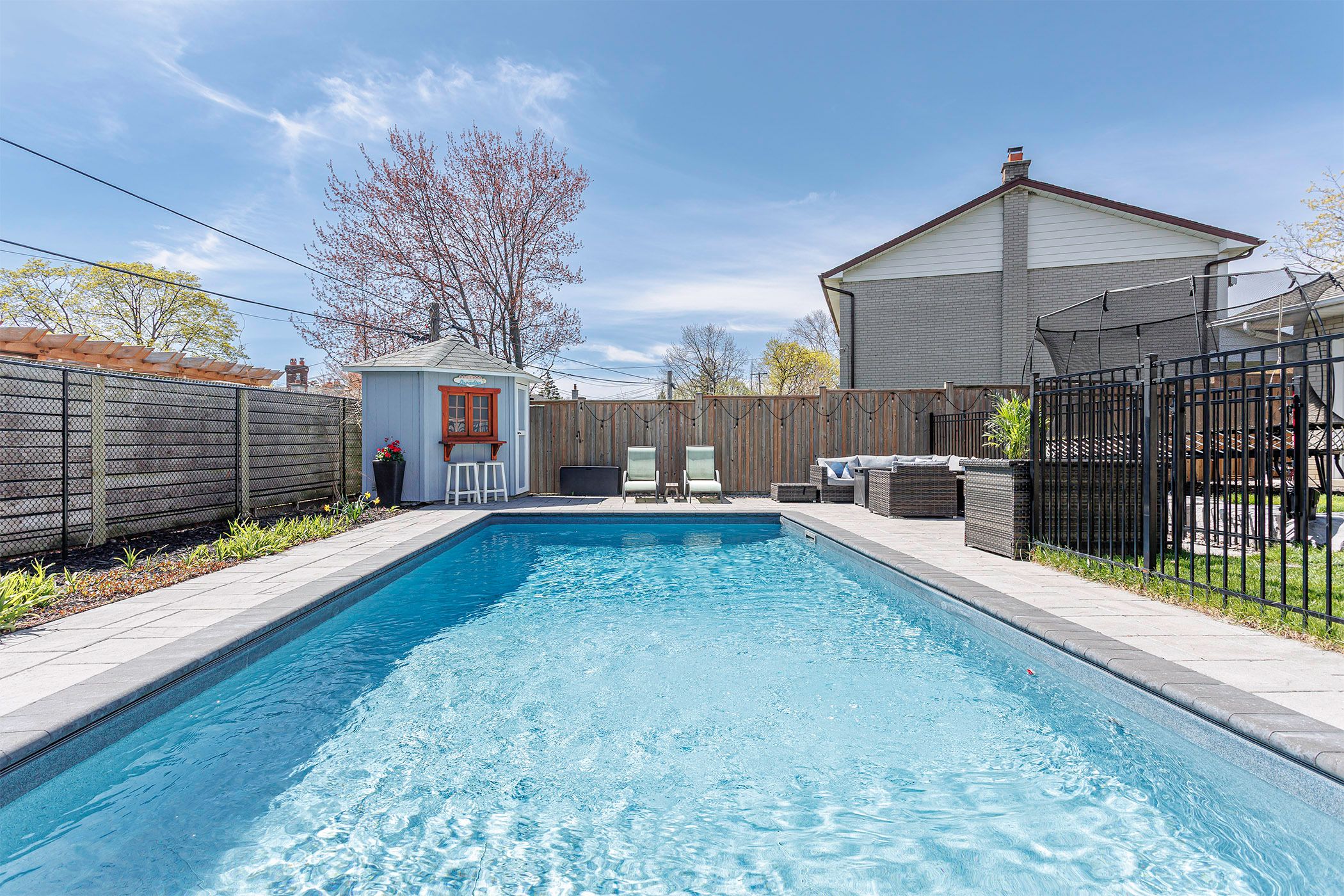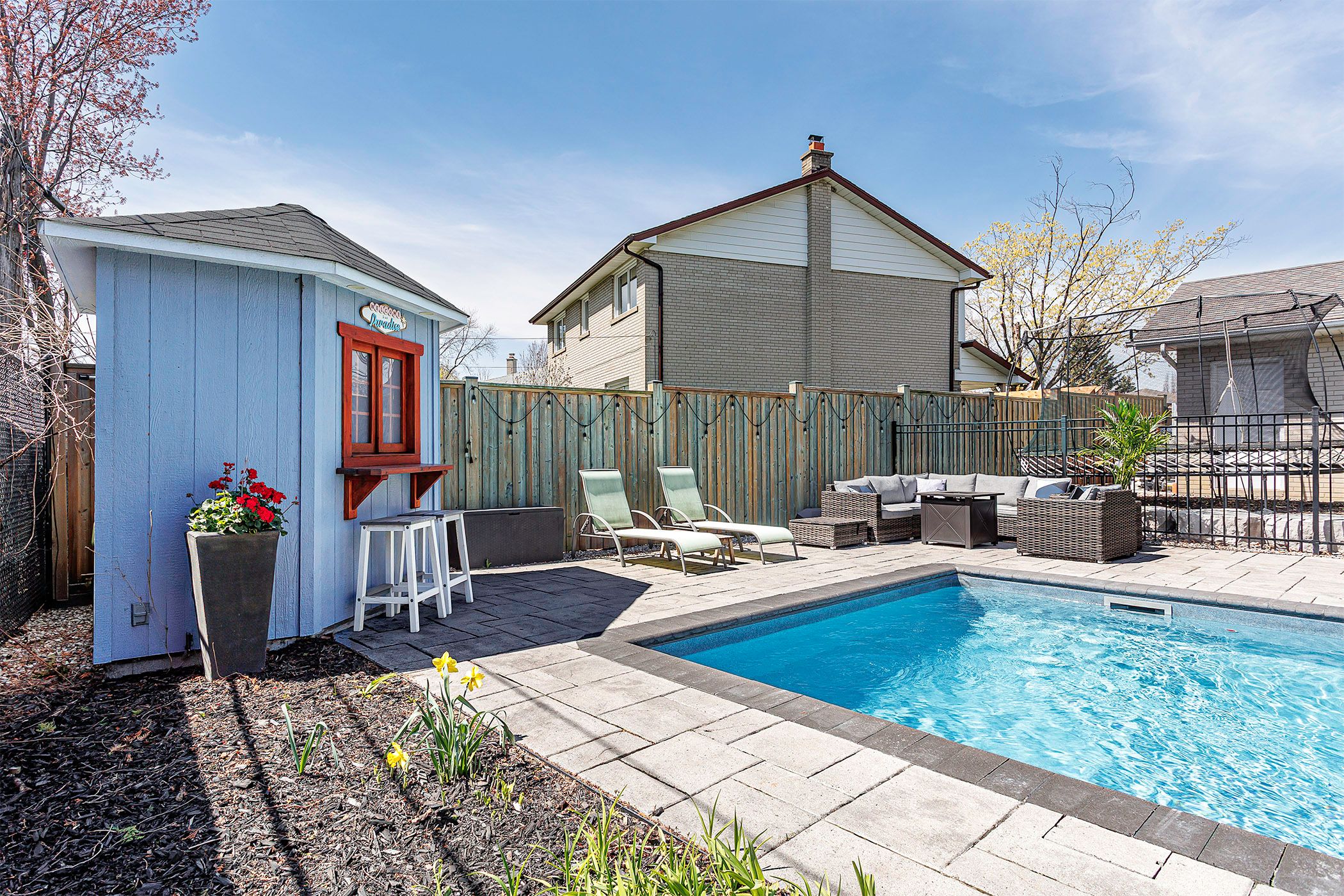 The quintessential family home: 8 markwood crescent is the once in a lifetime opportunity you have been waiting for. Stepping through the front door welcomes you into an elegant and charming main living space. A luxurious gas fireplace and brand new european water resistant wood flooring provide a light, soft and relaxing atmosphere. The large windows frame your view of the lush green grass and mature trees of markwood crescent, transporting you back to simpler times as children ride their bikes and play together on the street after school. Your dining room is equipped with built-in shelving, and a walk out to your own backyard oasis. Your kitchen is bathed in sunlight by a wall of large windows overlooking your patio and pool. The bay window perfectly pairs with your kitchen island for quick breakfasts or afternoon coffees with your closest friend. Stainless steel appliances and clean white cabinetry set the vibe of a modern countryside kitchen. Upstairs you have 4 spacious bedrooms with built-in closets and large windows. The basement is finished with its own washroom and huge rec space for movie nights or relaxing after a long work day. Speaking of work, your dedicated office area is steps away and is surrounded by built in storage, under the staircase and in the wall. At the top of the stairs is one of two back yard walk-outs. Thanks to the irregular shape of the lot that widens at the back fence line, the yard has it all. The focal point is your luxurious heated salt water pool, surrounded by stone patio. Your garden cabana is fully wired and is a great storage area, change room and the perfect spot for a mini-fridge. Markland wood is a very special place to live and 8 markwood crescent is right in the heart of it. It's a neighbourhood with a true community feel. Steps to parks, trails and a quick drive to grocery stores and shops. Many highly rated schools and activities, centennial park, the arena, the olympium, markland golf club, and so much more.