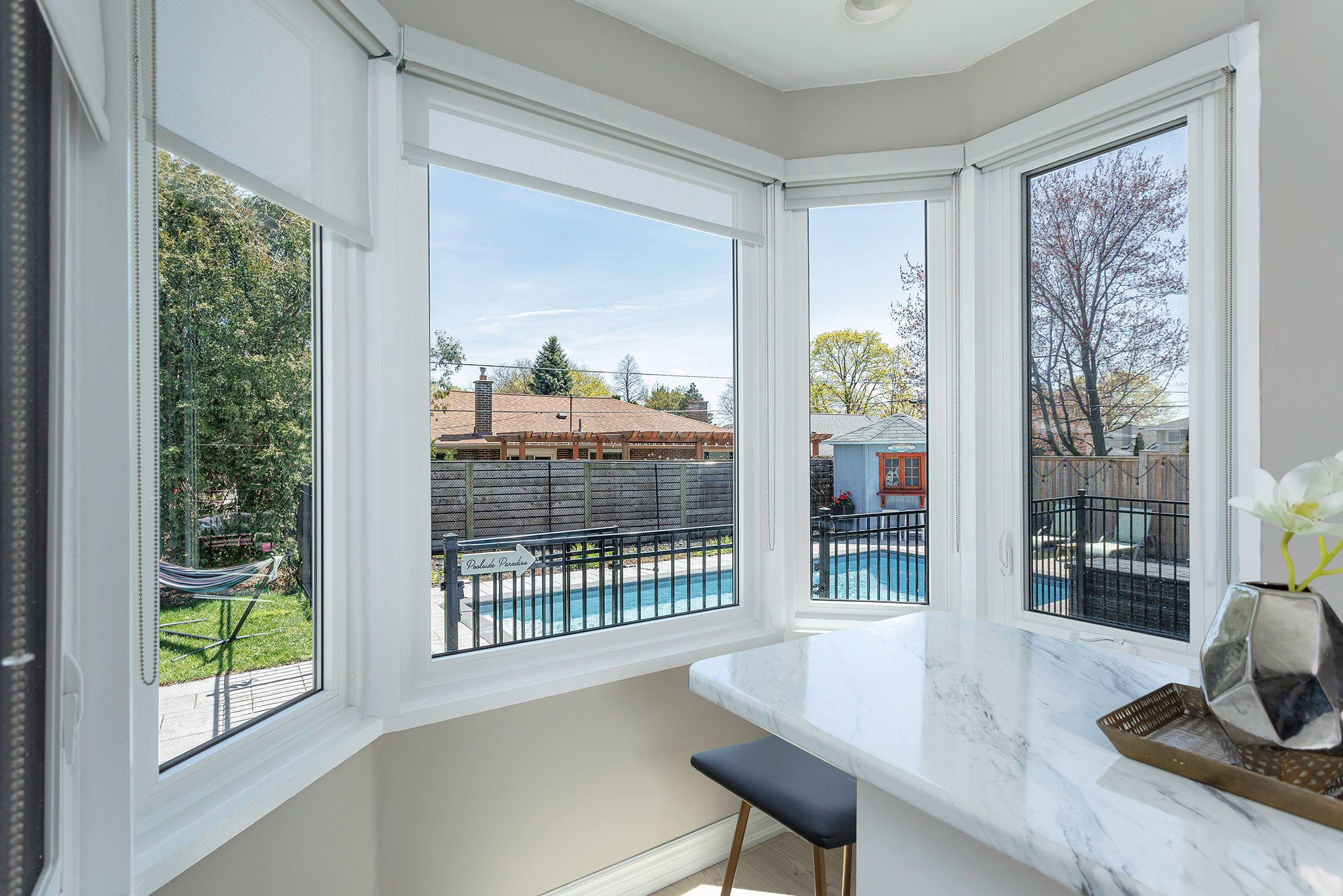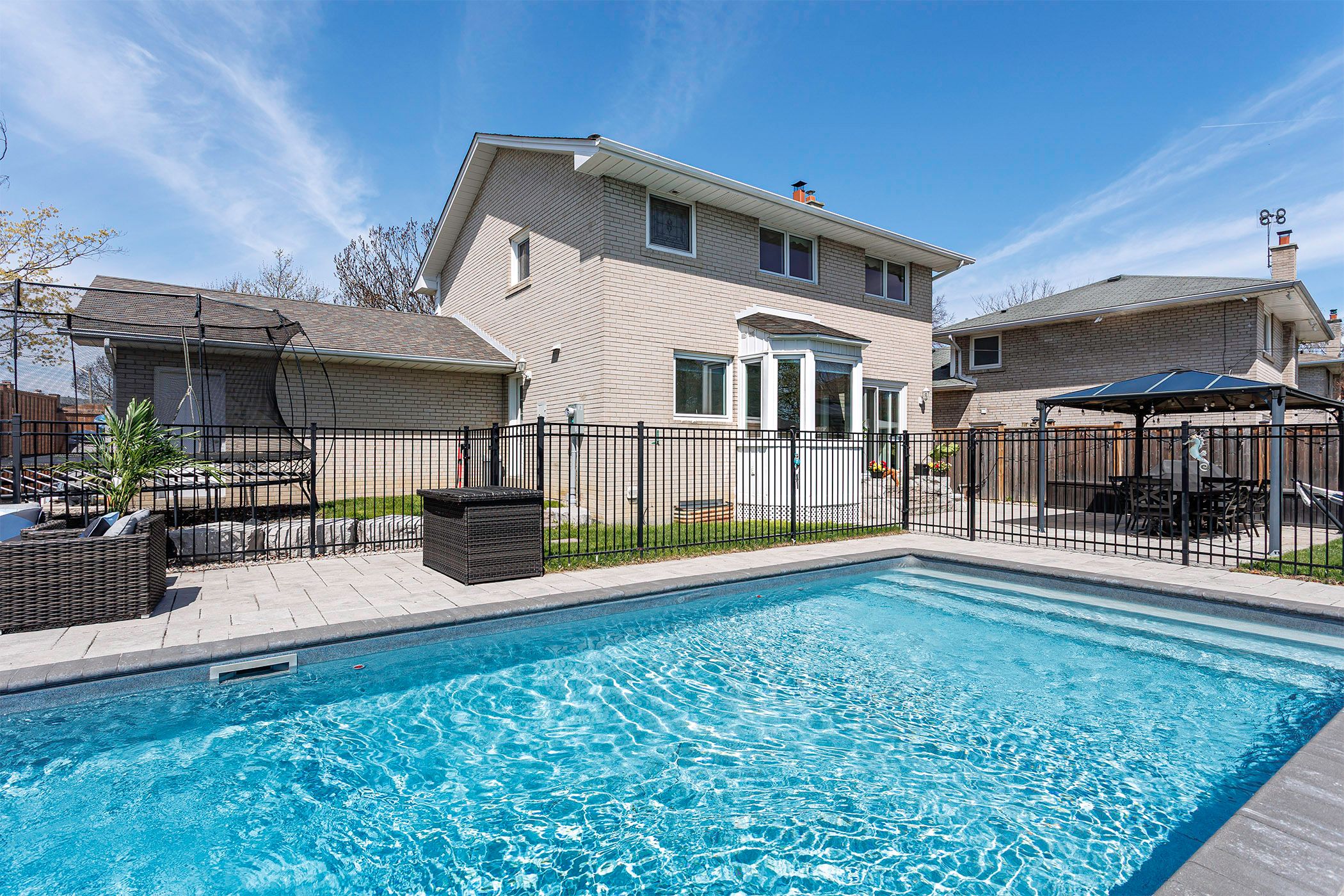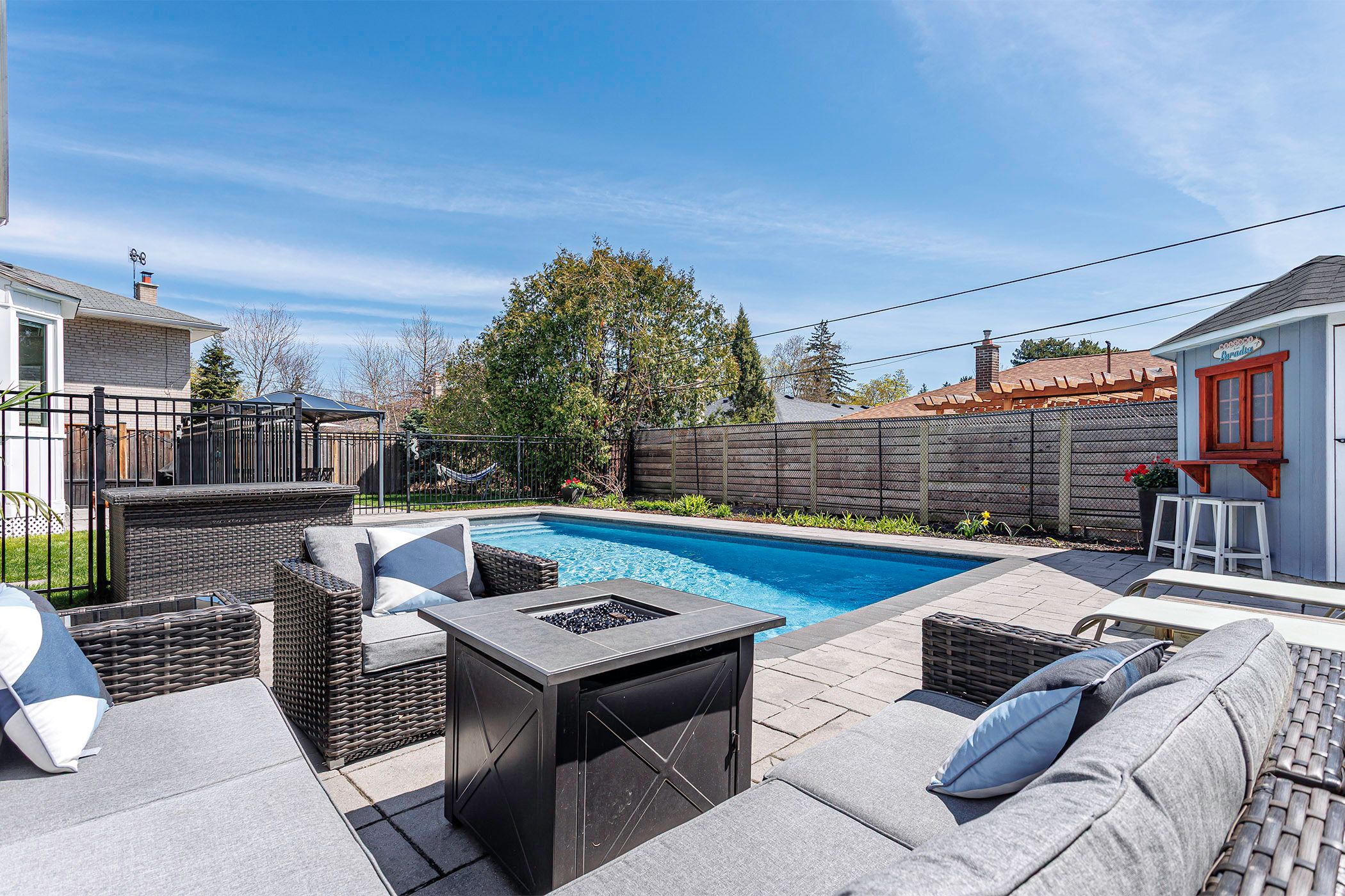 The quintessential family home: 8 markwood crescent is the once in a lifetime opportunity you have been waiting for. Stepping through the front door welcomes you into an elegant and charming main living space. A luxurious gas fireplace and brand new european water resistant wood flooring provide a light, soft and relaxing atmosphere. The large windows frame your view of the lush green grass and mature trees of markwood crescent, transporting you back to simpler times as children ride their bikes and play together on the street after school. Your dining room is equipped with built-in shelving, and a walk out to your own backyard oasis. Your kitchen is bathed in sunlight by a wall of large windows overlooking your patio and pool. The bay window perfectly pairs with your kitchen island for quick breakfasts or afternoon coffees with your closest friend. Stainless steel appliances and clean white cabinetry set the vibe of a modern countryside kitchen. Upstairs you have 4 spacious bedrooms with built-in closets and large windows. The basement is finished with its own washroom and huge rec space for movie nights or relaxing after a long work day. Speaking of work, your dedicated office area is steps away and is surrounded by built in storage, under the staircase and in the wall. At the top of the stairs is one of two back yard walk-outs. Thanks to the irregular shape of the lot that widens at the back fence line, the yard has it all. The focal point is your luxurious heated salt water pool, surrounded by stone patio. Your garden cabana is fully wired and is a great storage area, change room and the perfect spot for a mini-fridge. Markland wood is a very special place to live and 8 markwood crescent is right in the heart of it. It's a neighbourhood with a true community feel. Steps to parks, trails and a quick drive to grocery stores and shops. Many highly rated schools and activities, centennial park, the arena, the olympium, markland golf club, and so much more.