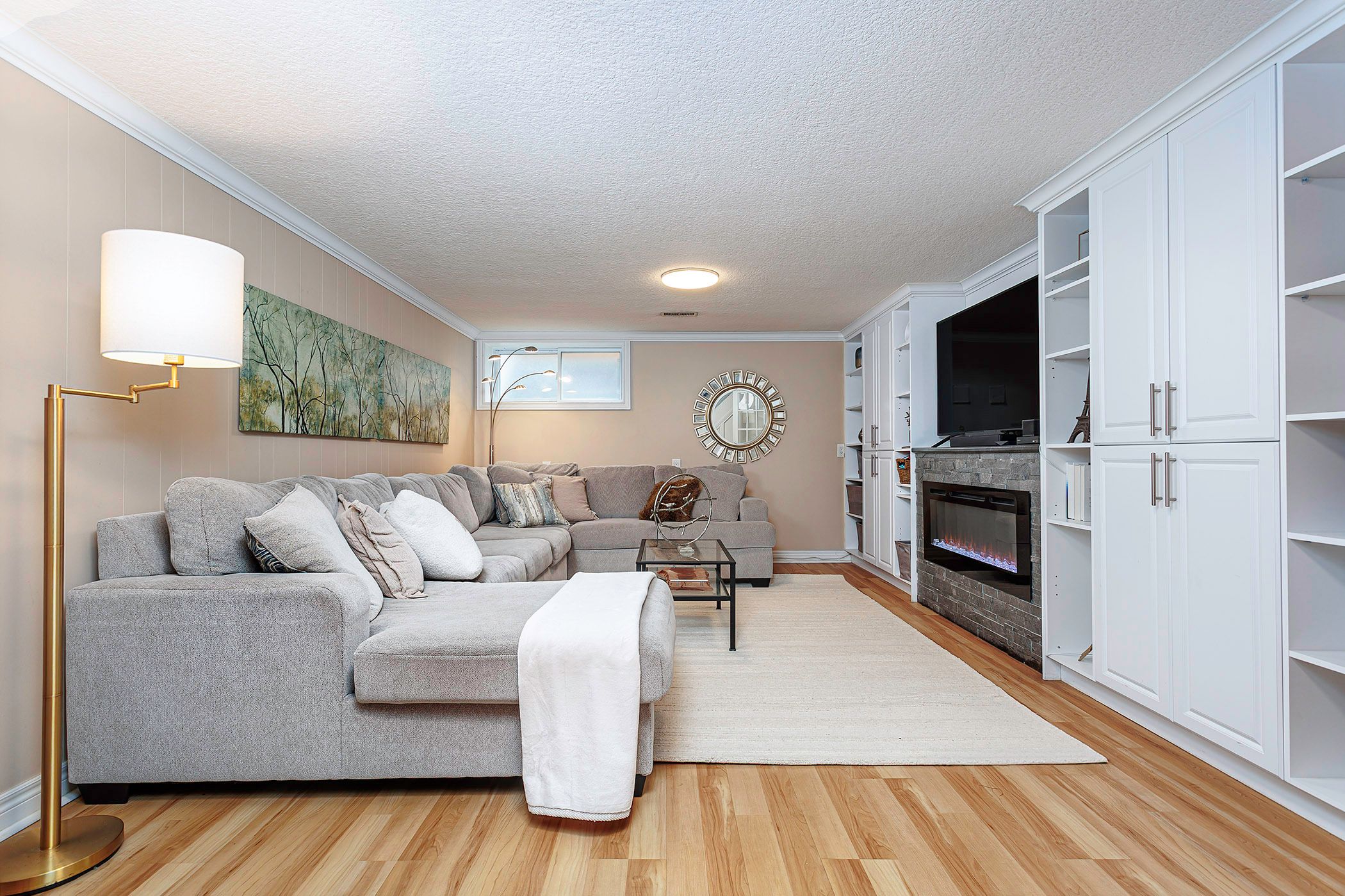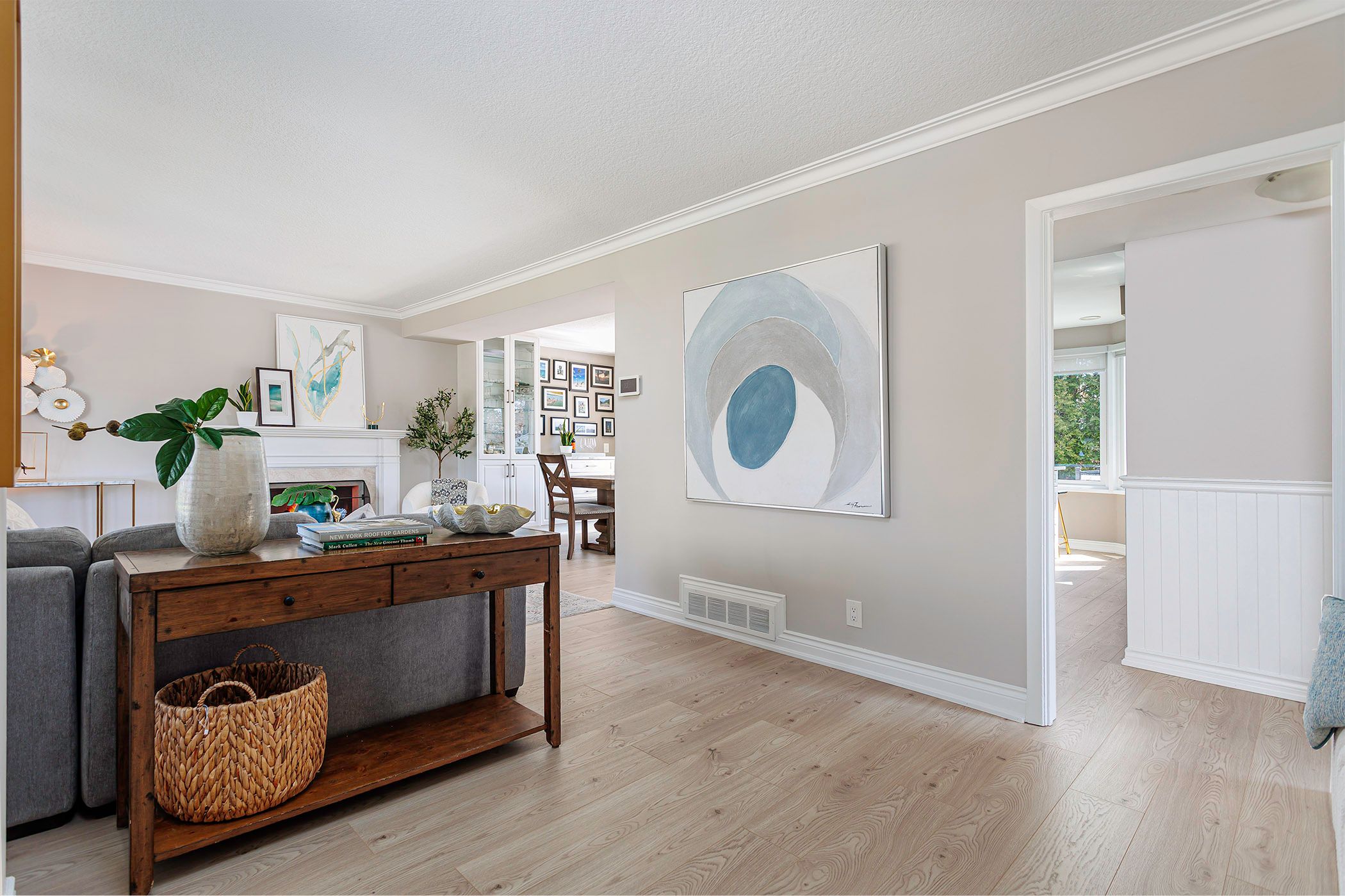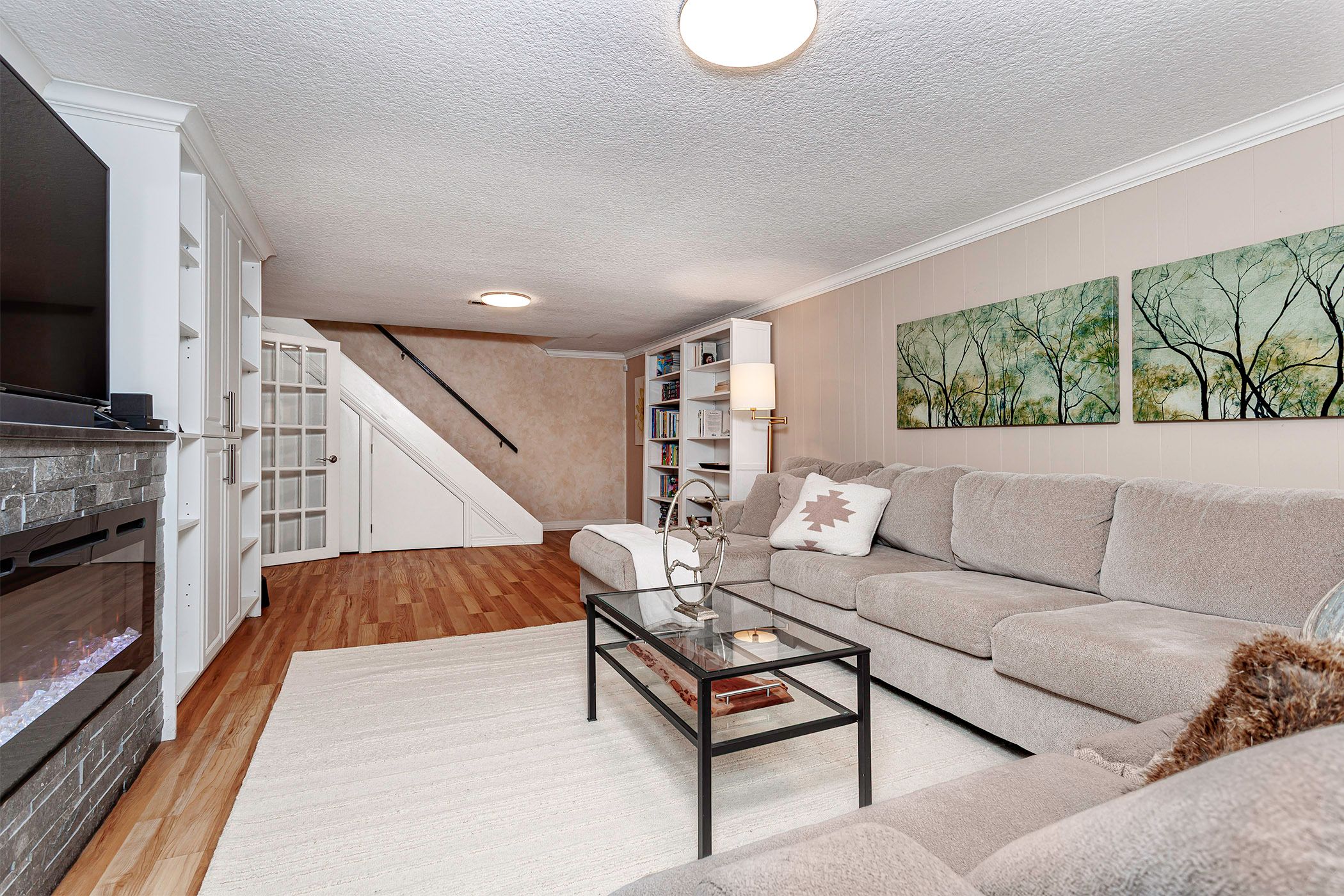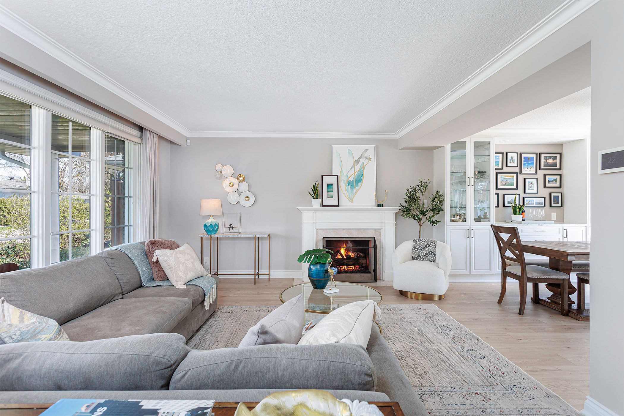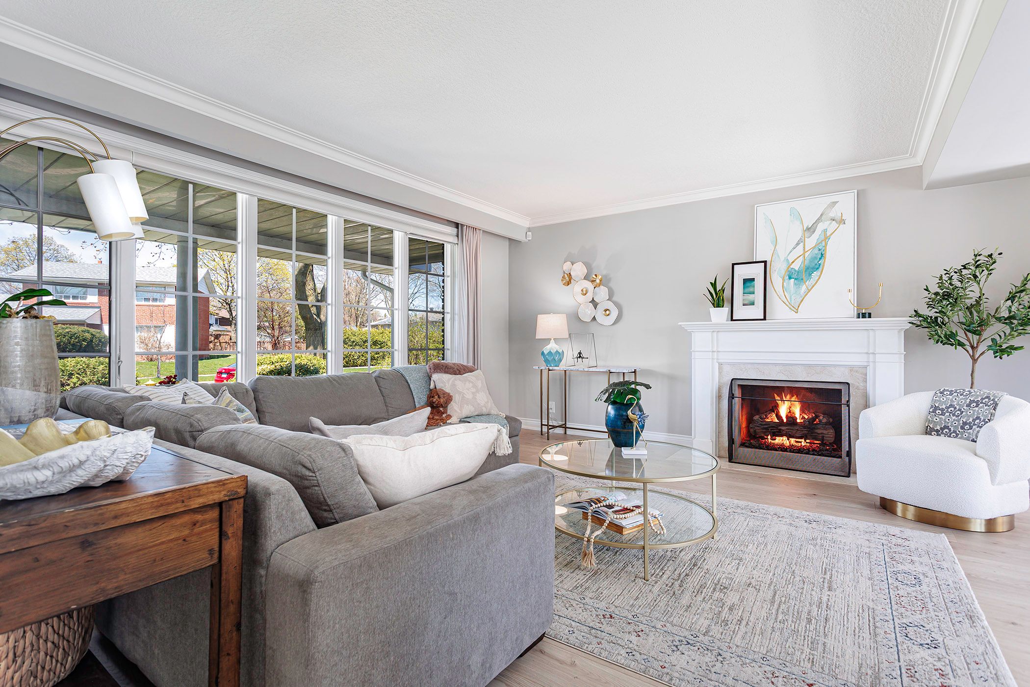 • Elegant main living space with a cozy gas fireplace and new flooring.