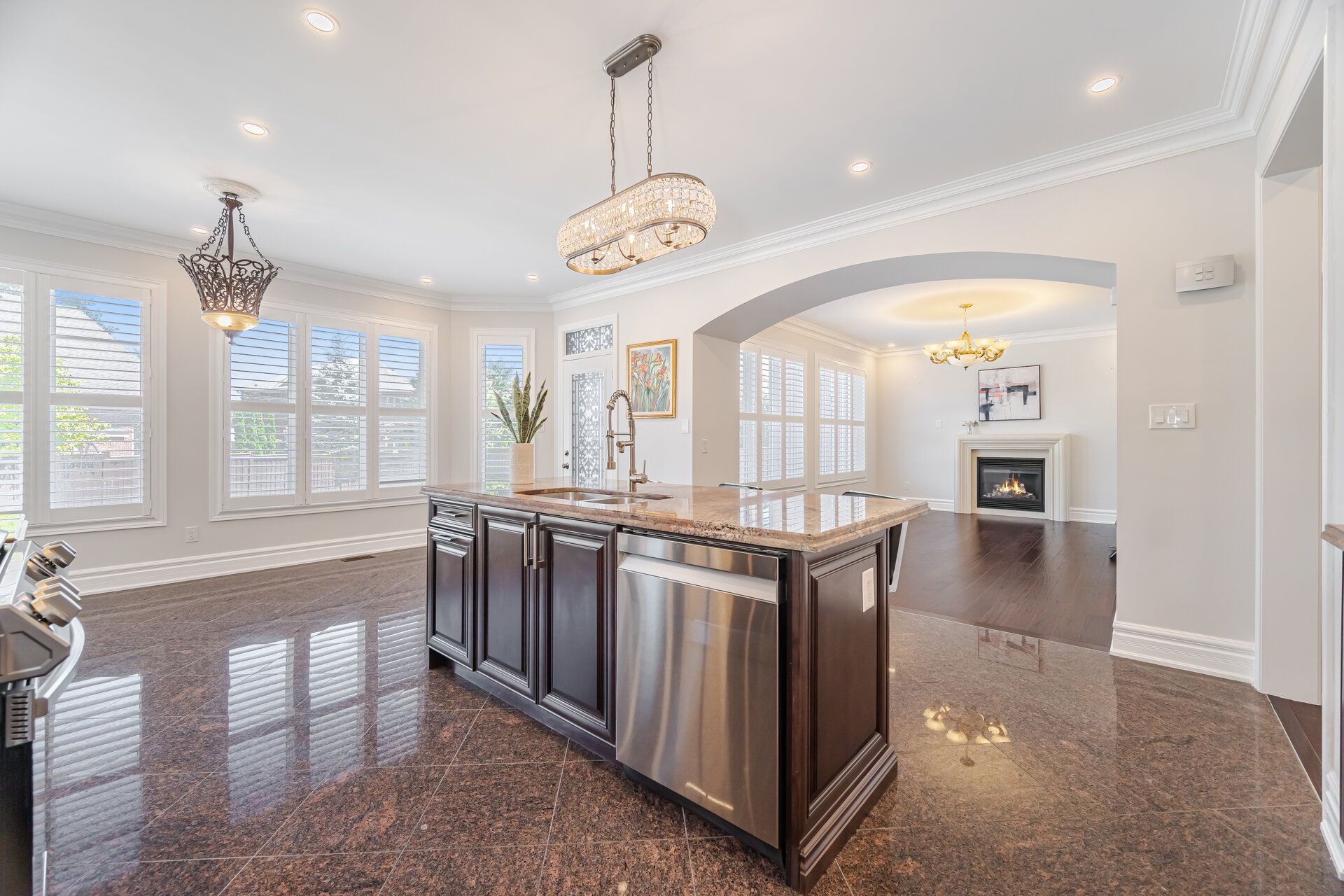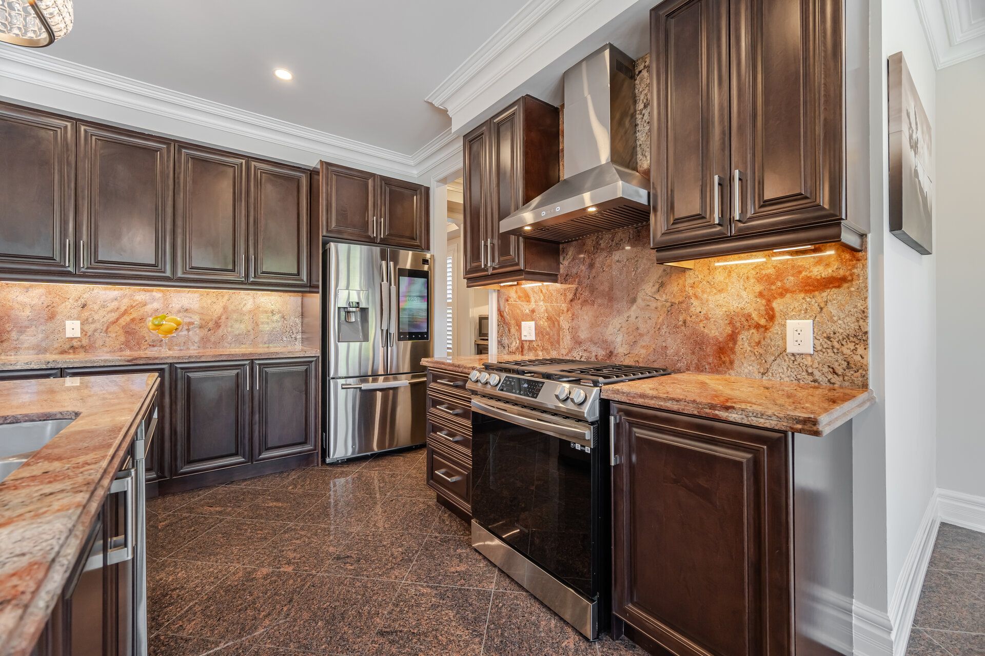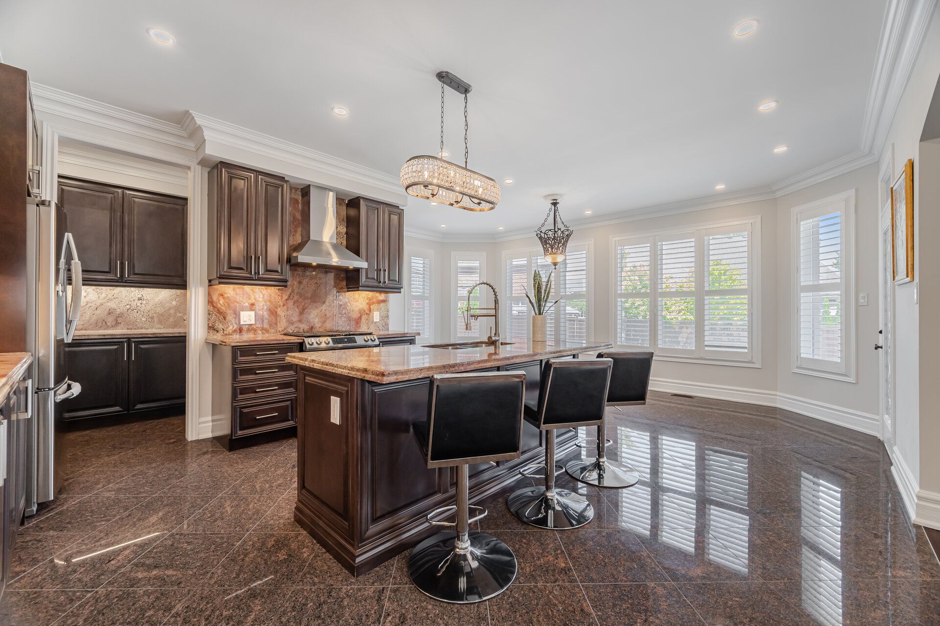 • Gourmet kitchen featuring a large island and top-notch stainless-steel appliances.