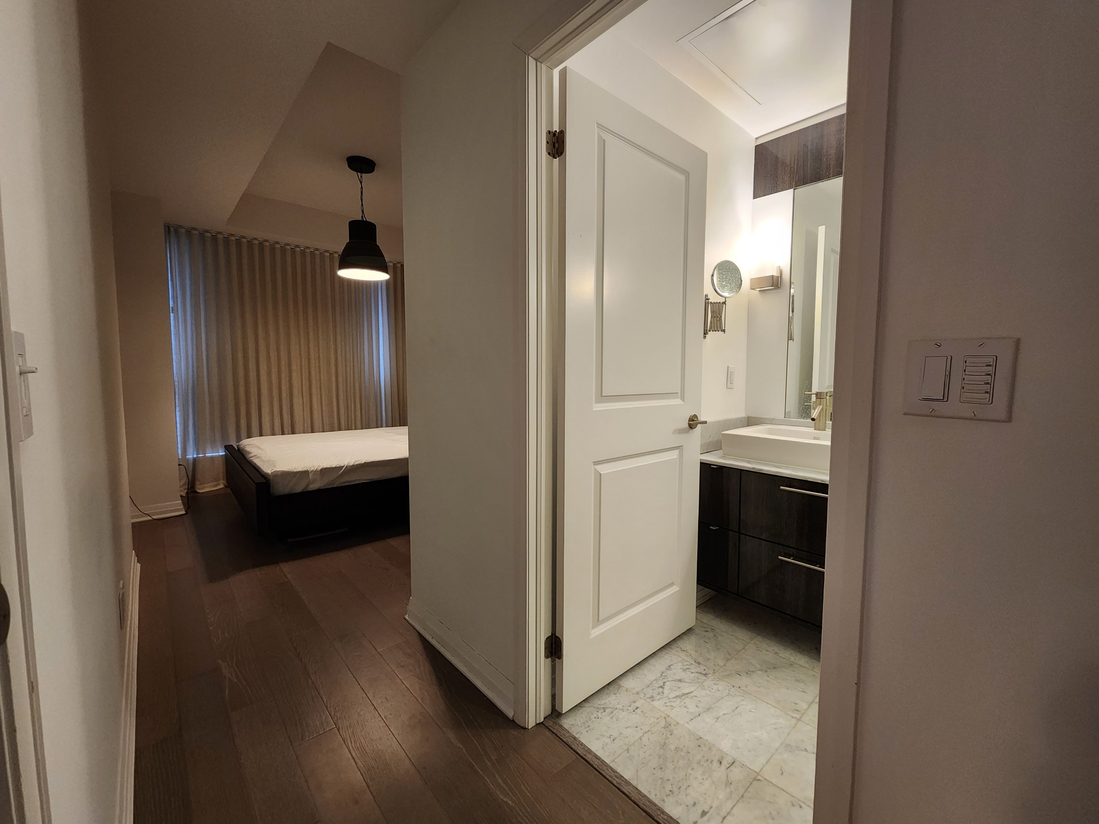 **fully furnished** welcome to the mercer! Executive 1 br suite with an oversized den ideal for office or 2nd bedroom use. Large sun-filled bedroom with private ensuite. Modern design throughout with large kitchen island bar, s/s miele appliance, open concept living space, and two upgraded full bathrooms. Located in the heart of entertainment districts and steps to subway, dining & shops, theatre, rogers centre. Move-in ready!