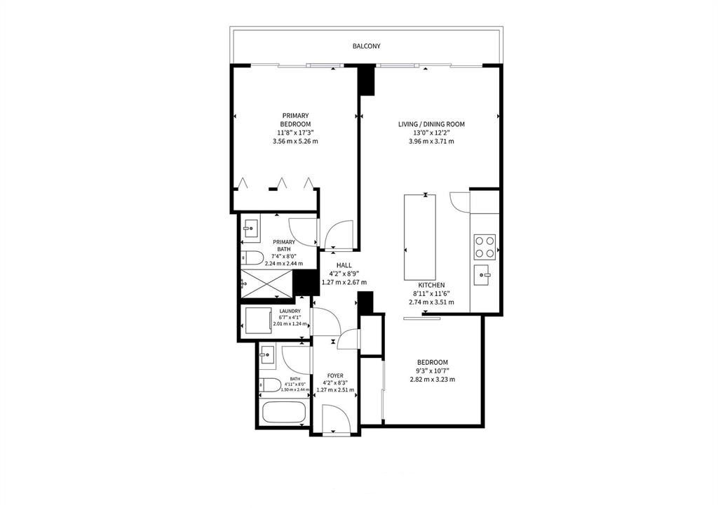 • Rooftop-style balcony provides accessible outdoor space with open skies.