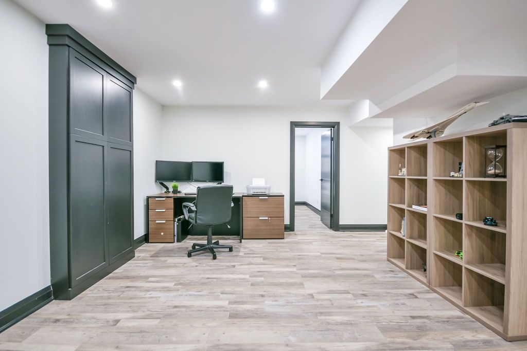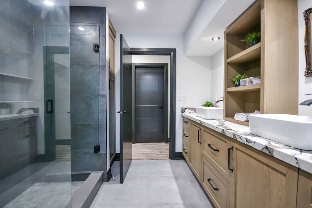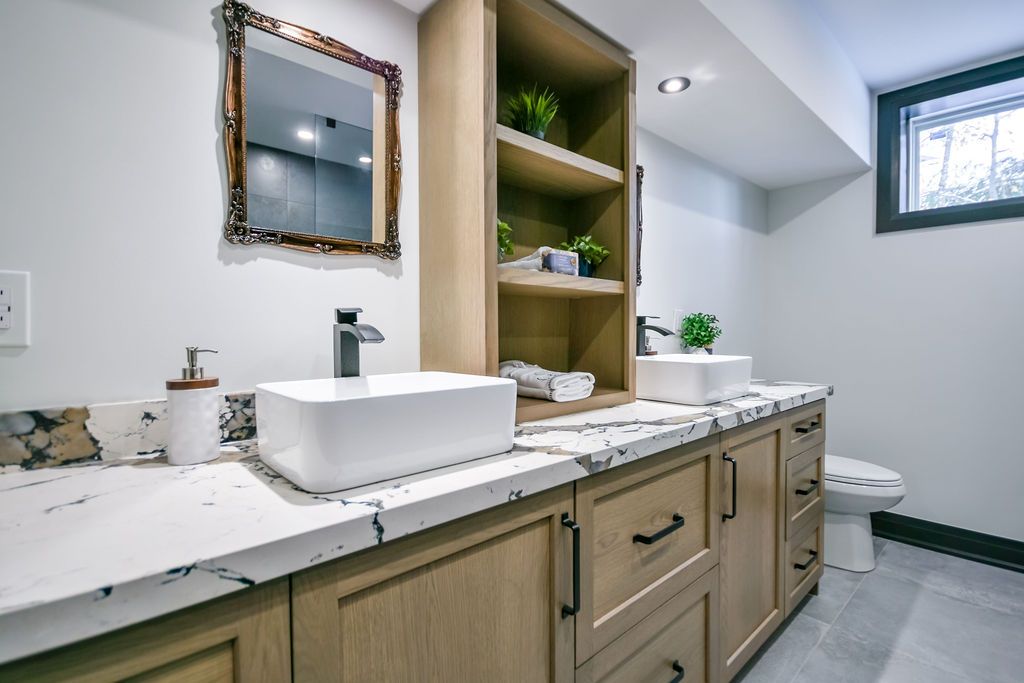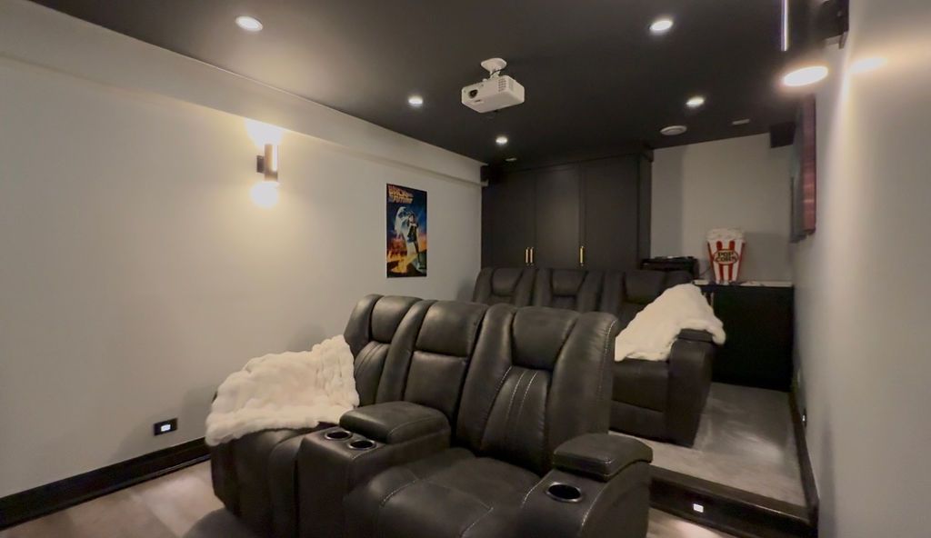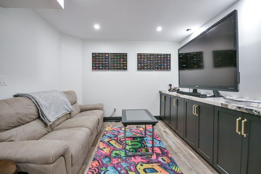 • Finished lower level with home theatre and entertainment spaces.