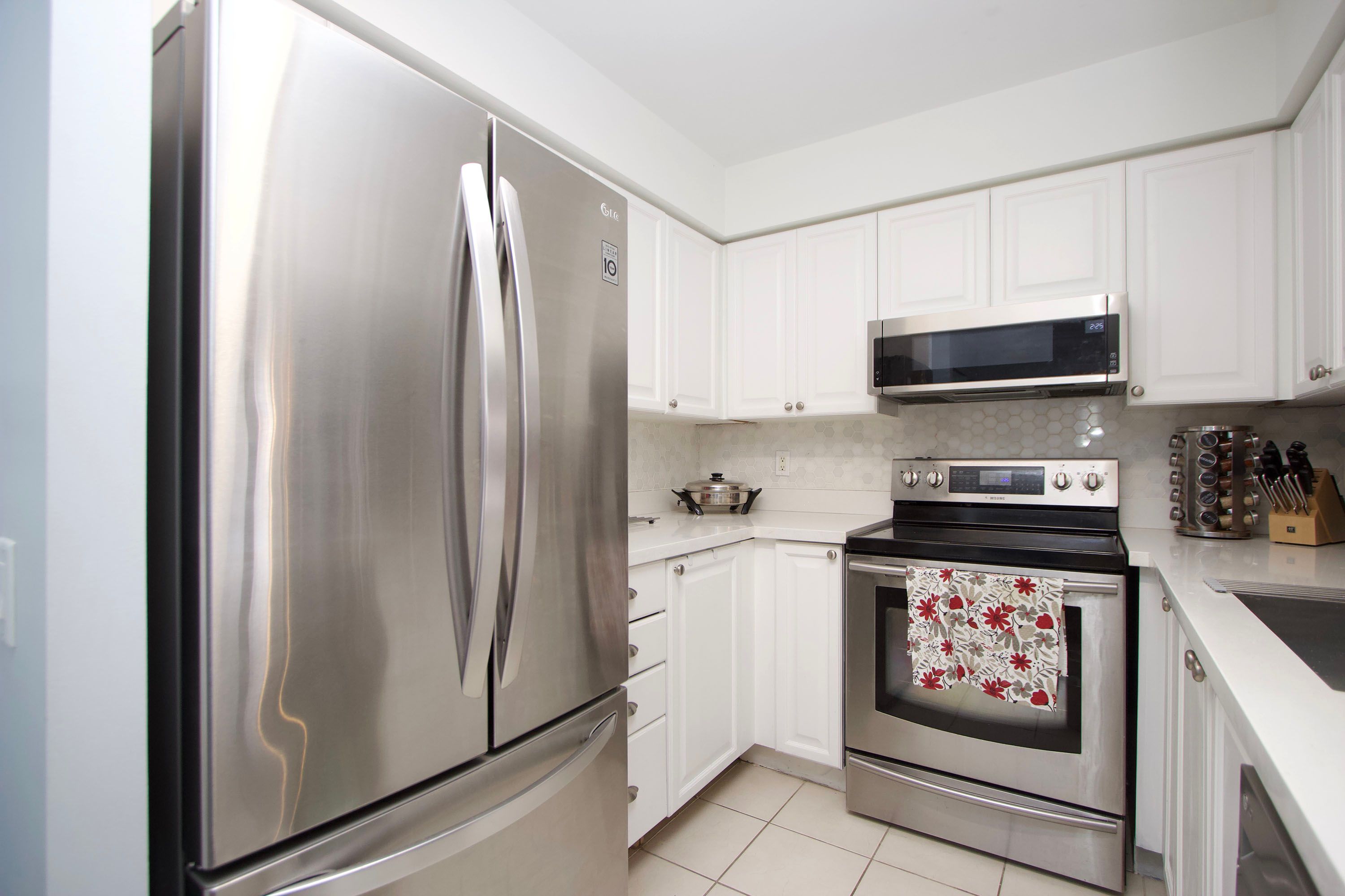 • Updated kitchen with quartz countertops and stainless steel appliances.