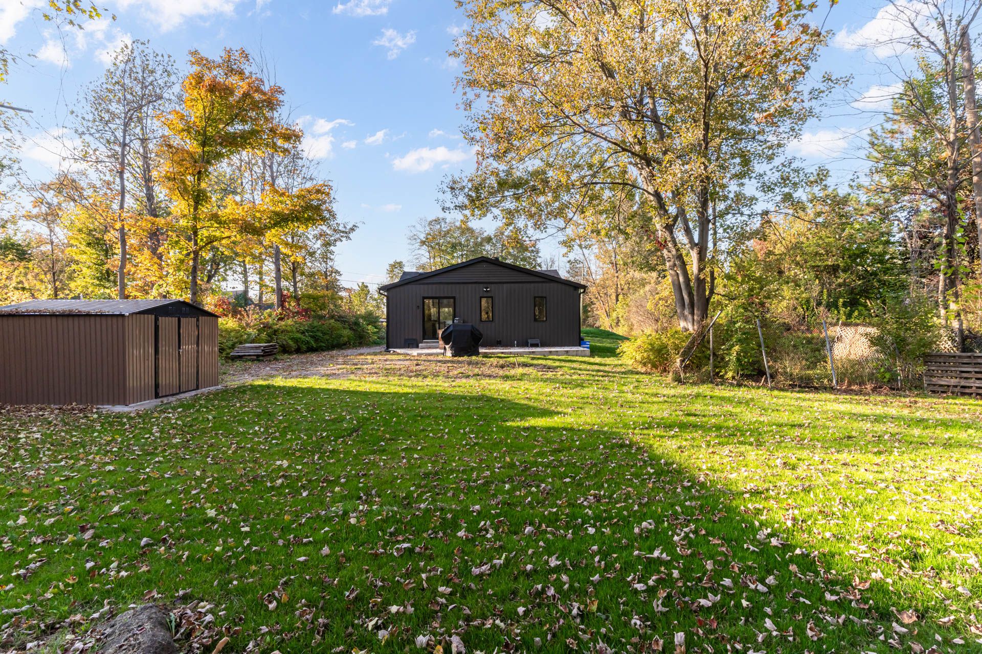 Discover this stylishly renovated country bungalow, privately set back from the road on a scenic 100 x 200 ft property with room to park 8+ vehicles. An ideal choice as a cozy first home, those looking to downsize, or anyone seeking the opportunity to expand or build, this home highlights a newly designed kitchen complete with stunning counters and sleek stainless steel appliances. The bright and airy open-concept living and dining space has been completely refreshed, complemented by a stylish 4-piece bath, two generously sized bedrooms, and the practicality of main-floor laundry and utility room. This turnkey residence boasts an impressive list of recent improvements: brand-new electrical (2024), plumbing, spray foam insulation, flooring (2024), roof (2024), septic system (2024), updated windows and patio door (2025),attic insulation (2025), regraded and reseeded lawn (2025), uv system (2025), fencing (2025), and a new shed (2025). Enjoy the charm of outdoor living on the 19' x 8' front porch or the expansive 24' x 11' back deck. With every detail thoughtfully upgraded, this home is ready for you to move in and enjoy. Don't wait-this gem won't last!