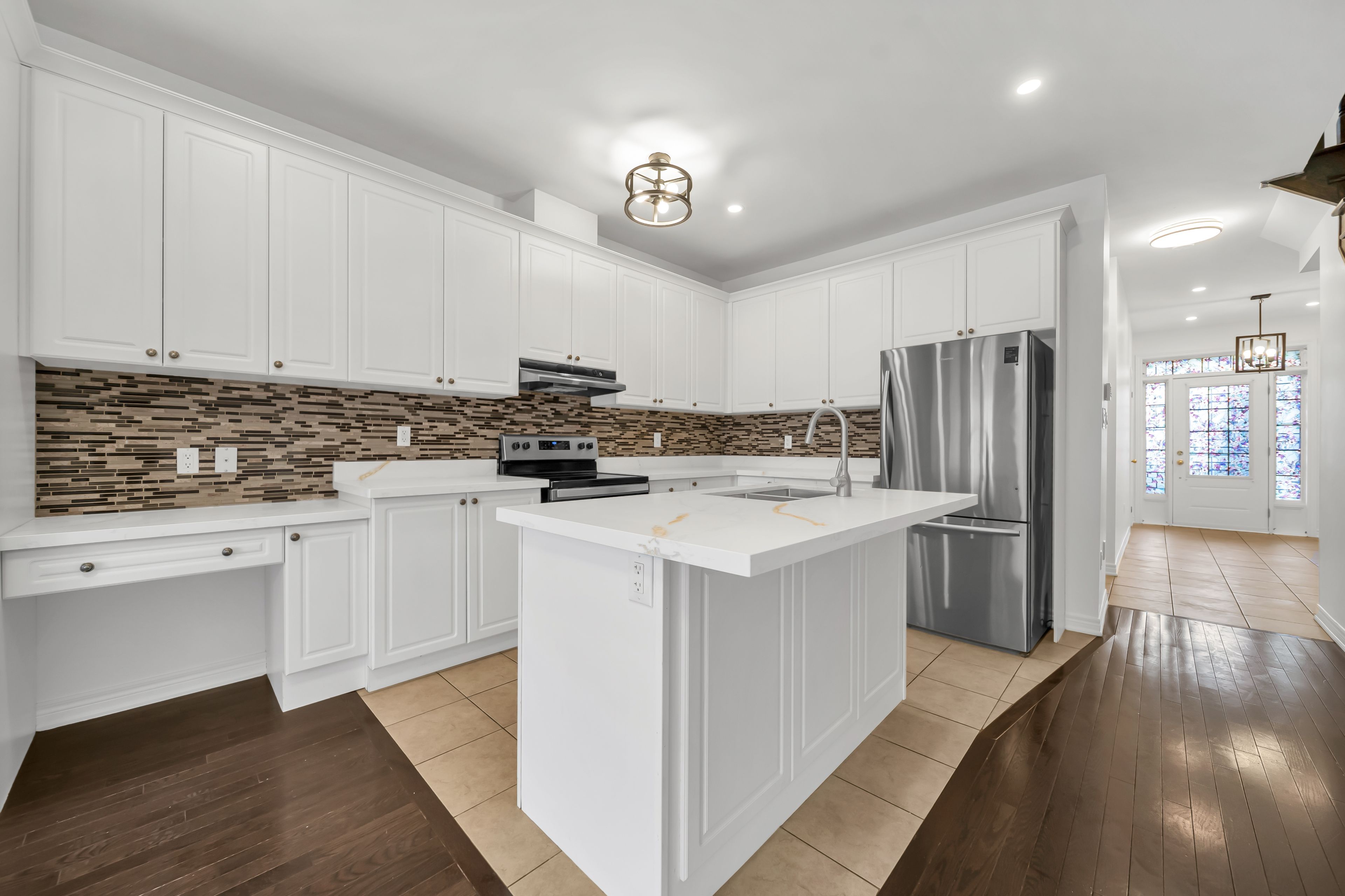 • Beautiful kitchen featuring quartz countertops and stainless steel appliances.