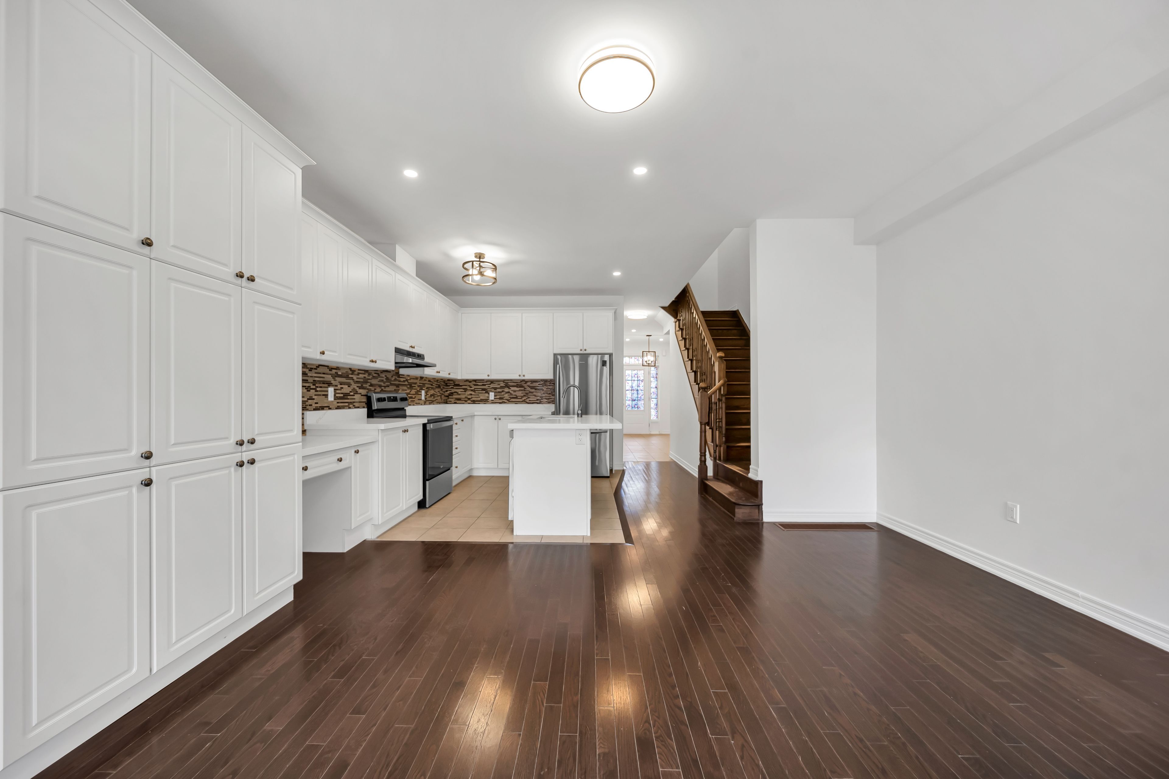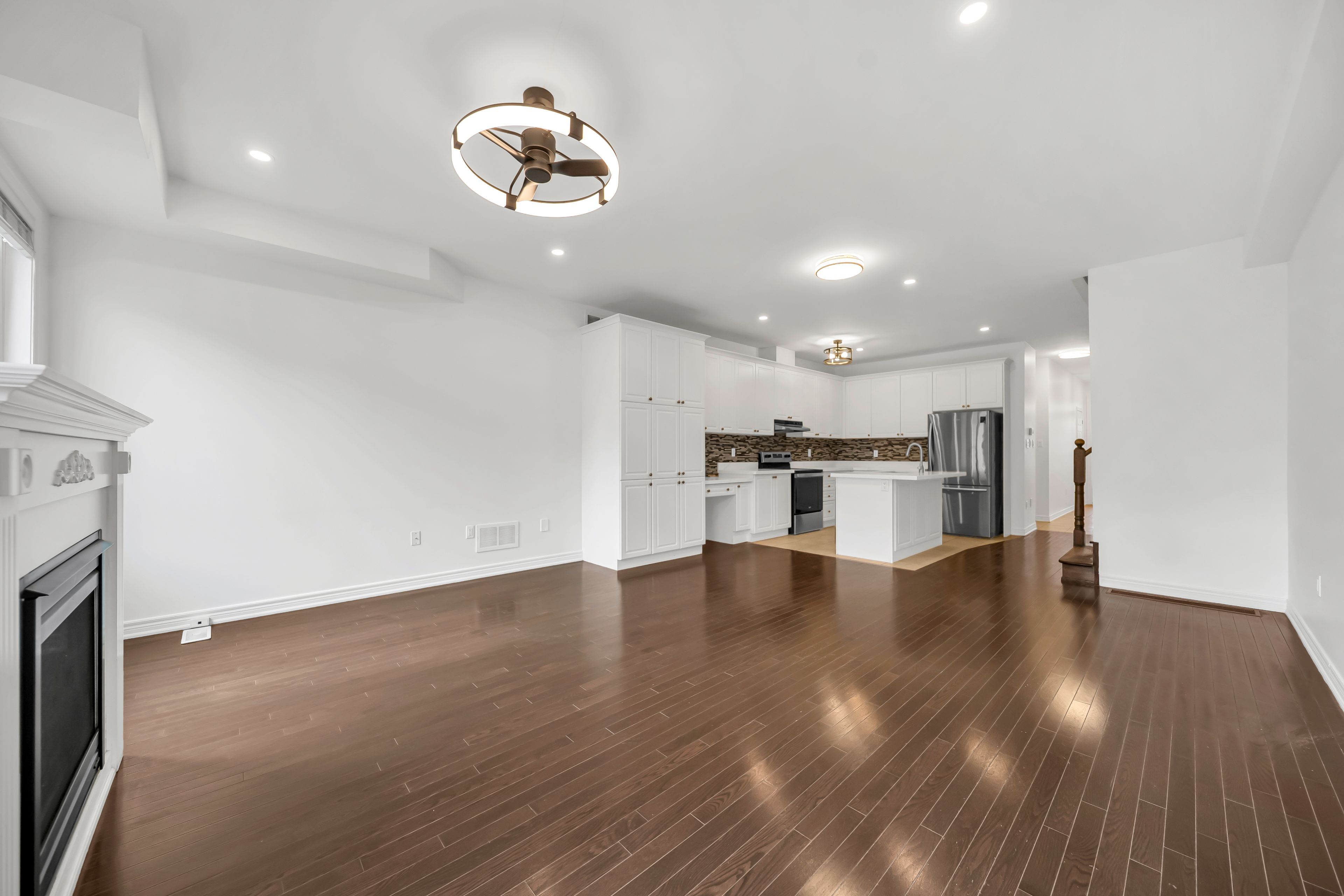 • Open concept design with 9' ceilings and hardwood throughout.