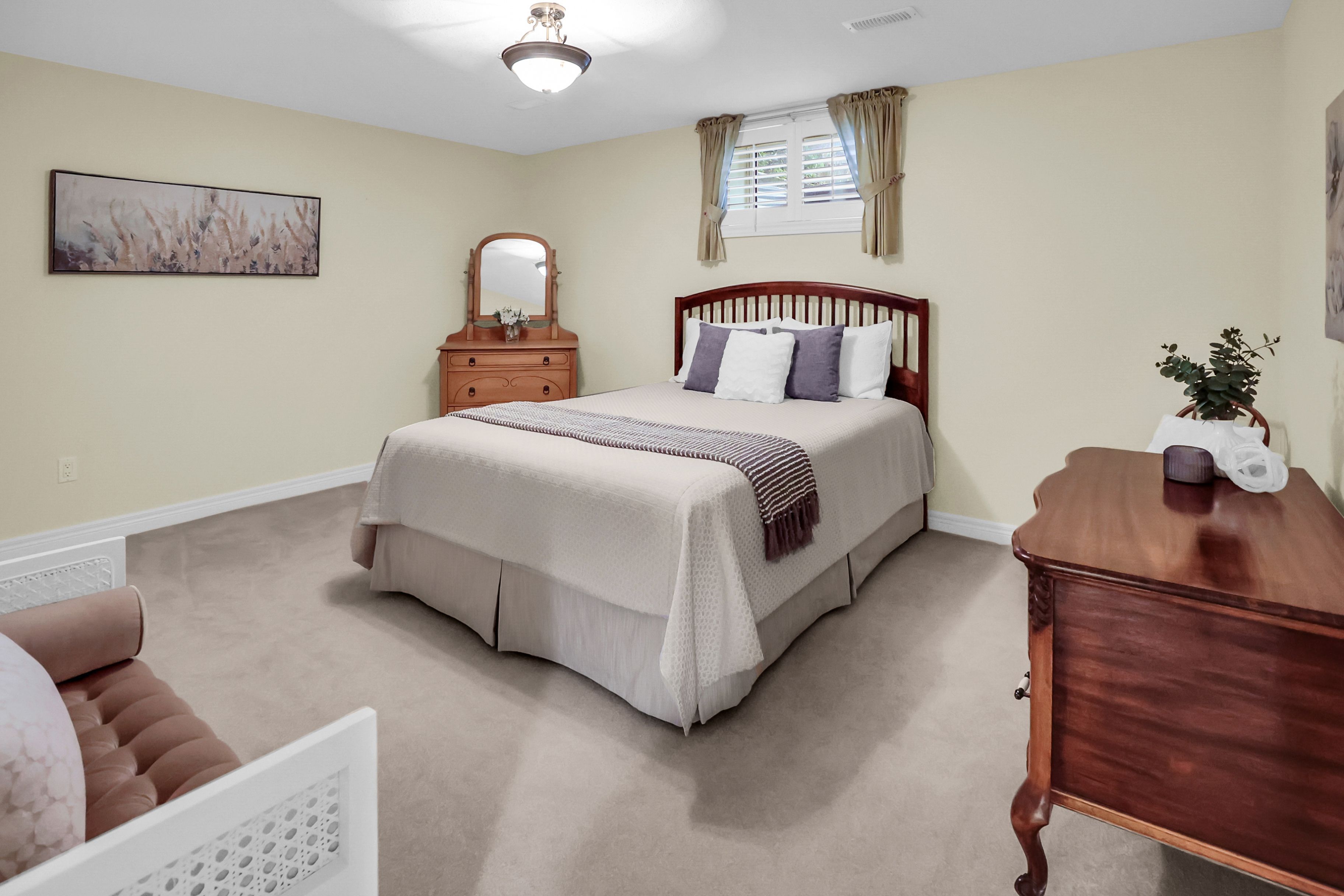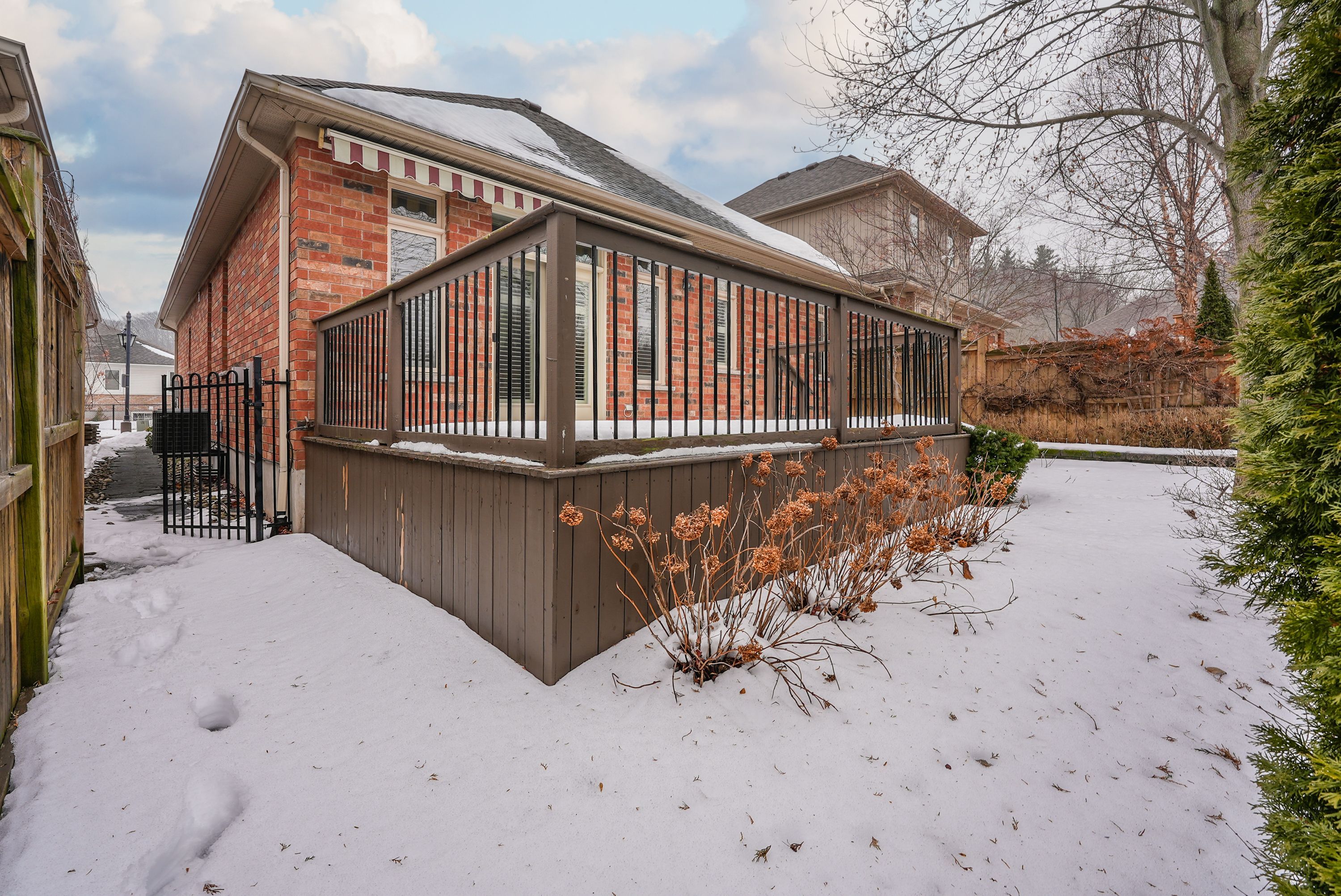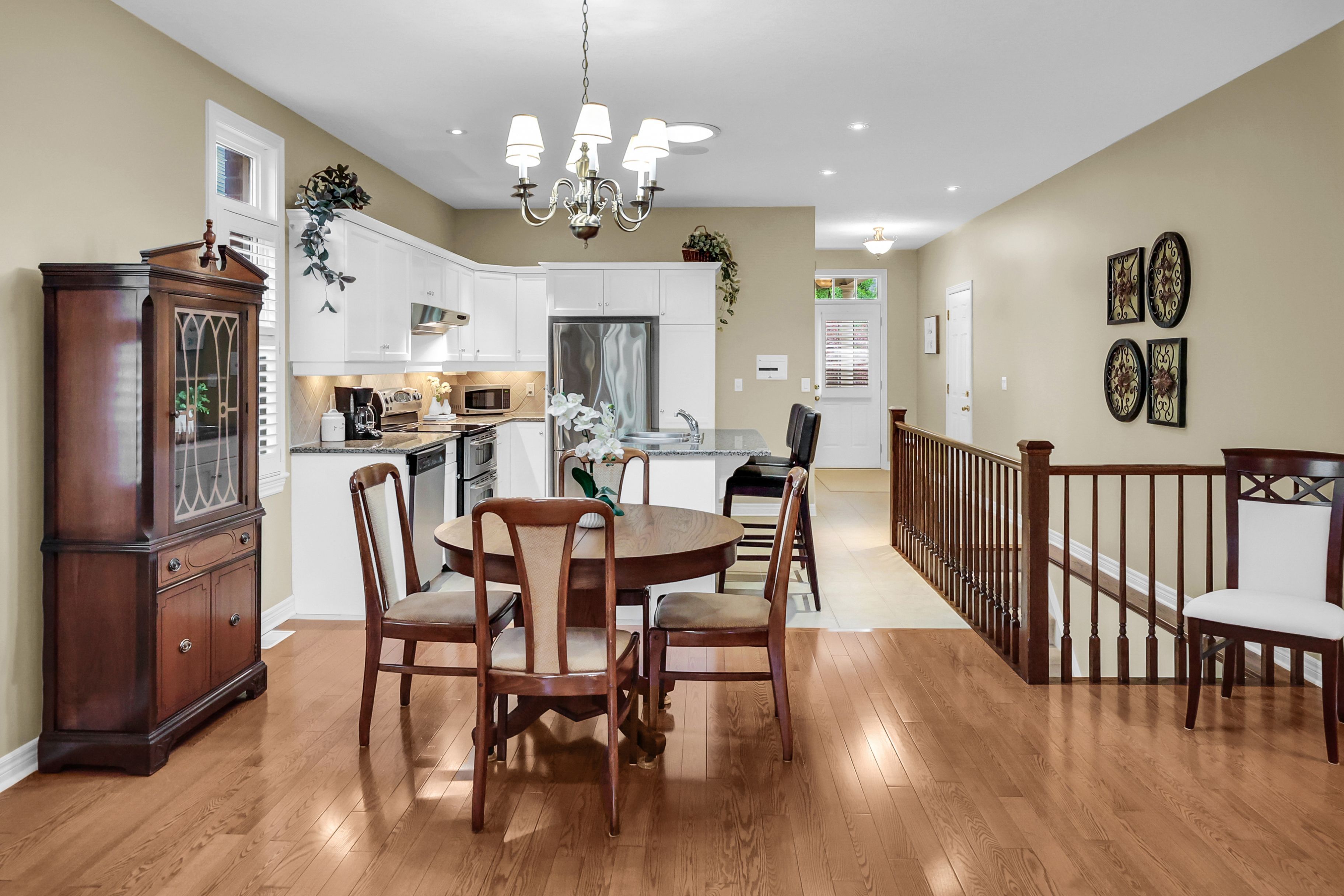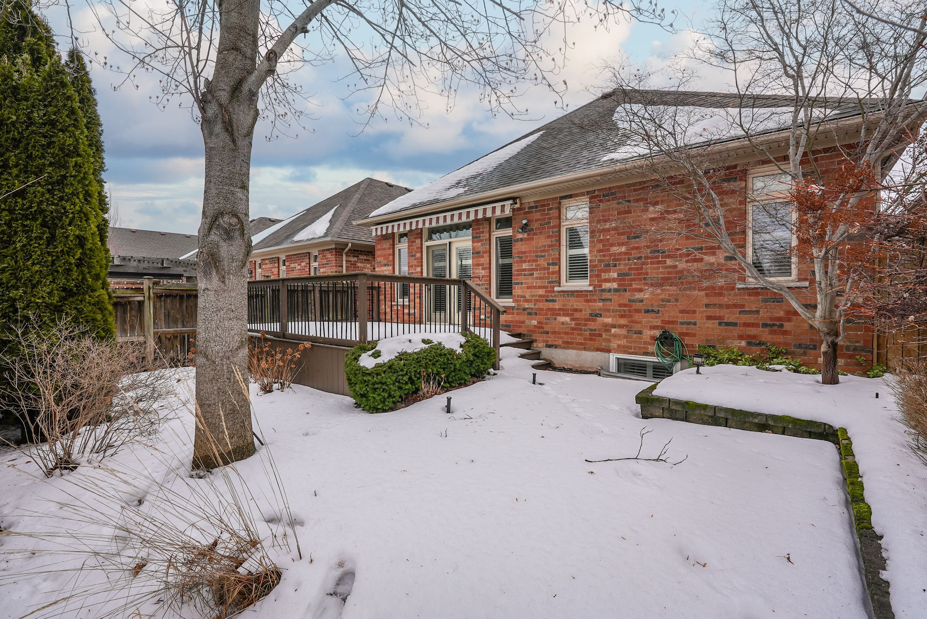 Elegant bungalow living... Beautifully finished bungalow on a private court at 4-8 muscat drive offers refined main-floor living in one of grimsby's most desirable communities. This 2+1 bedroom, 3 bathroom home blends modern comfort with thoughtful design and functionality. Step inside to a bright, welcoming foyer with ceramic flooring and transom window, opening into a stunning open-concept layout with soaring 10' ceilings, california shutters, and hardwood flooring throughout the main living space. The upgraded kitchen showcases granite counters, stylish backsplash, centre island, high-end stainless-steel appliances, and transom-topped windows that fill the space with natural light. The adjacent living room is warm and inviting with pot lights, a cozy gas fireplace, and garden doors leading to your private outdoor retreat. Enjoy summer evenings beneath the retractable electric awning on the deck, or relax in the fenced yard with patio, flagstone walkway, mature trees, and a built-in sprinkler system for effortless maintenance. The spacious primary bedroom features a walk-in closet and 4-pc ensuite, while the second bedroom offers plush carpeting and flexibility for guests or a home office, complemented by a second 3-pc bath. Convenient main-floor laundry enhances the practical layout. The fully finished lower level continues the home's appeal with quality wood banisters, a large recreation room, third bedroom with double closet, and an additional 4-pc bath - ideal for extended family or entertaining. Additional highlights include a newer roof (2020), interlock double driveway, covered porch, and attached garage with inside entry and new gdo. Set in a peaceful, well-maintained location close to parks, amenities, grimsby's charming downtown, and wine country, with quick access to the hospital, schools, shopping, and the qew. Stylish, low-maintenance living in an exceptional court setting. Click on multimedia for virtual tour, drone photos, floor plans & more.