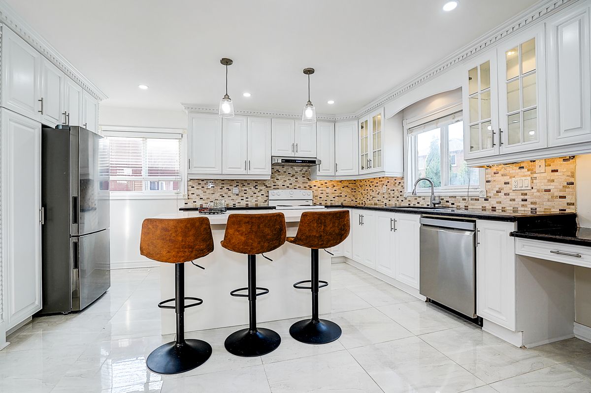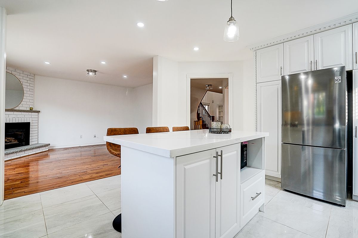 • Stylish open-concept kitchen with granite countertops and a center island.