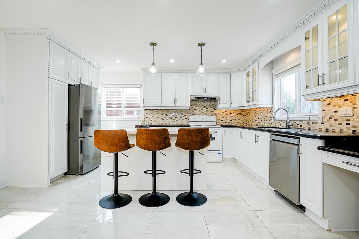 • Finished basement with a rec room, wet bar, and second kitchen.