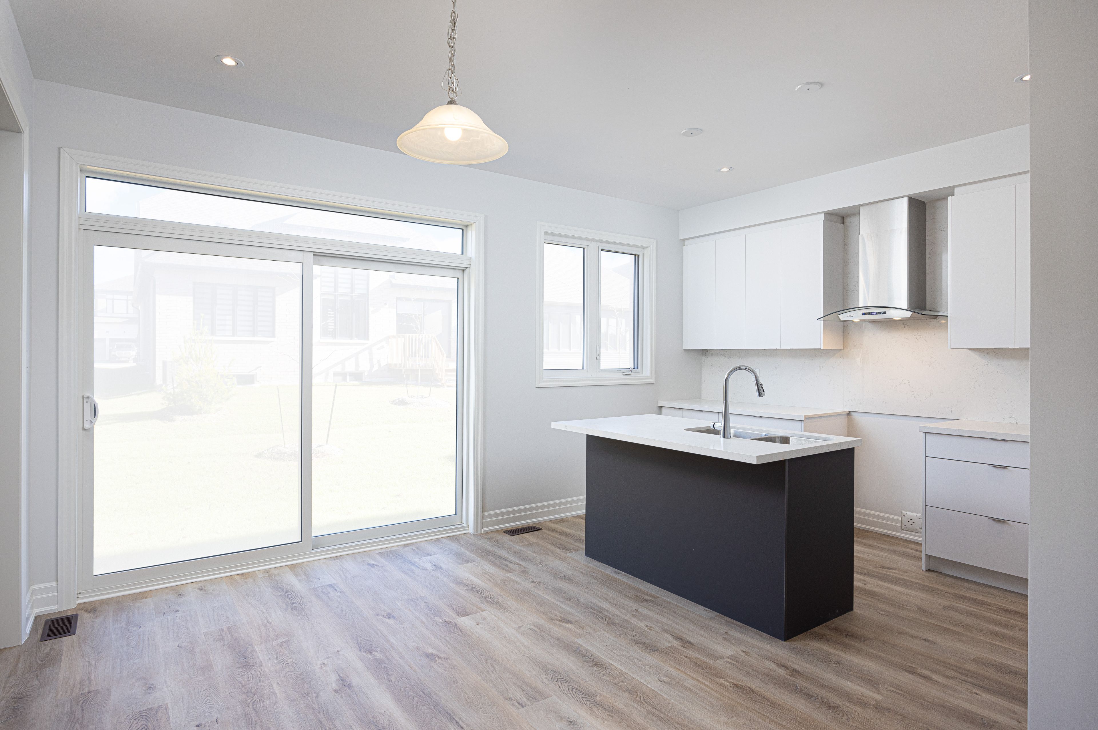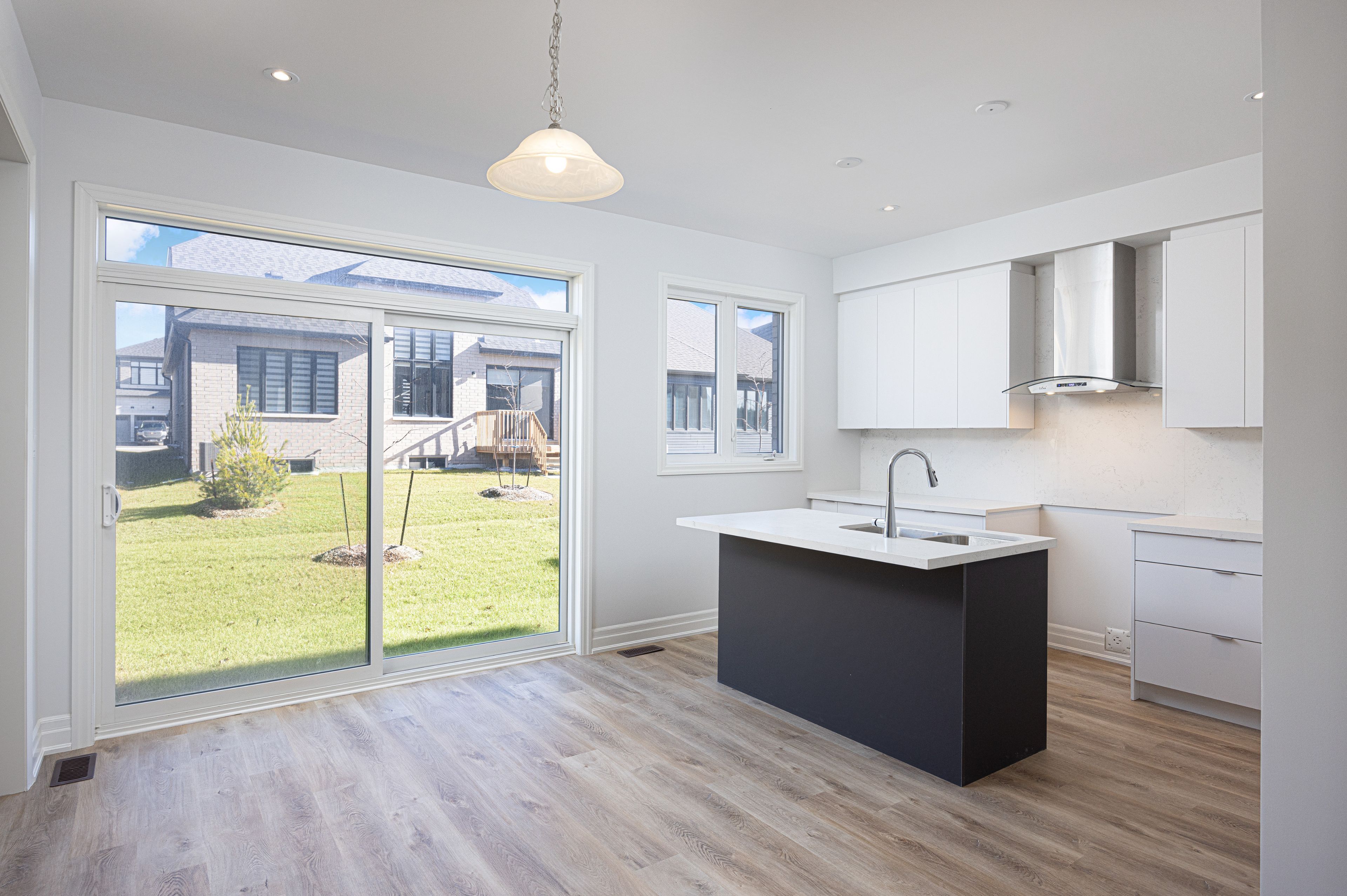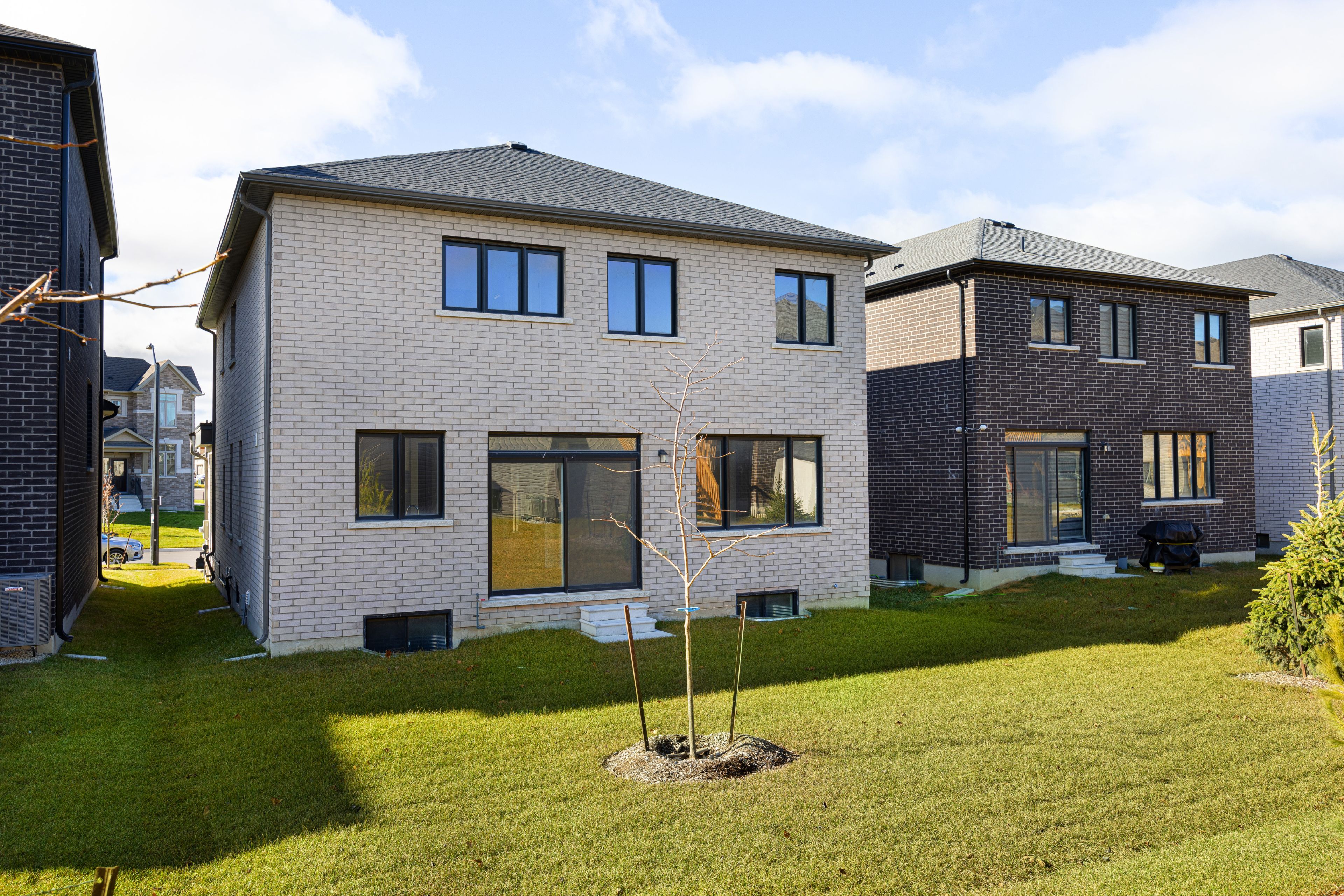 Welcome to river's edge-where modern design meets everyday comfort. This stunning 2-storey brick and stone home offers 2,715 sq. Ft. Of beautifully finished living space with 4 bedrooms and 3. 5 baths. From the dramatic stone entrance and spacious sun-filled foyer, luxury vinyl plank flooring in a stylish light tone, oak staircase, smooth ceilings throughout, and sleek matte black door hardware, every detail is thoughtfully designed. The chef-inspired kitchen features quartz countertops and backsplash and upgraded cabinetry, positioned next to the dining room. An impressive 8-ft sliding door floods the space with natural light and provides seamless backyard access. The open-concept living and great room create an inviting main living area, highlighted by a sleek linear fireplace with custom tile surround. The living room offers flexibility as a playroom or home office. A large laundry/mudroom with upper cabinetry and mosaic tiled floors adds convenience and style. Upstairs, enjoy four generous bedrooms, a reading nook, and spa-like en-suites, all with quartz counters, including a luxurious primary retreat with free-standing tub and glass shower. Additional conveniences include garage door openers, central air conditioning, pot lights inside and out, and a side entrance to the unfinished basement with enlarged windows and bathroom rough-in, offering excellent potential for future finishing. Electrical rough-ins for a security system and ev charger add extra convenience. Perfectly situated just minutes to the beach and close to walking trails, this home blends style, functionality, and location. Quick closing available-just move in and enjoy!
