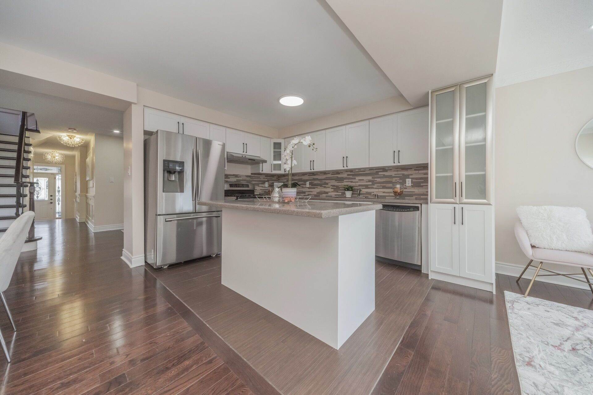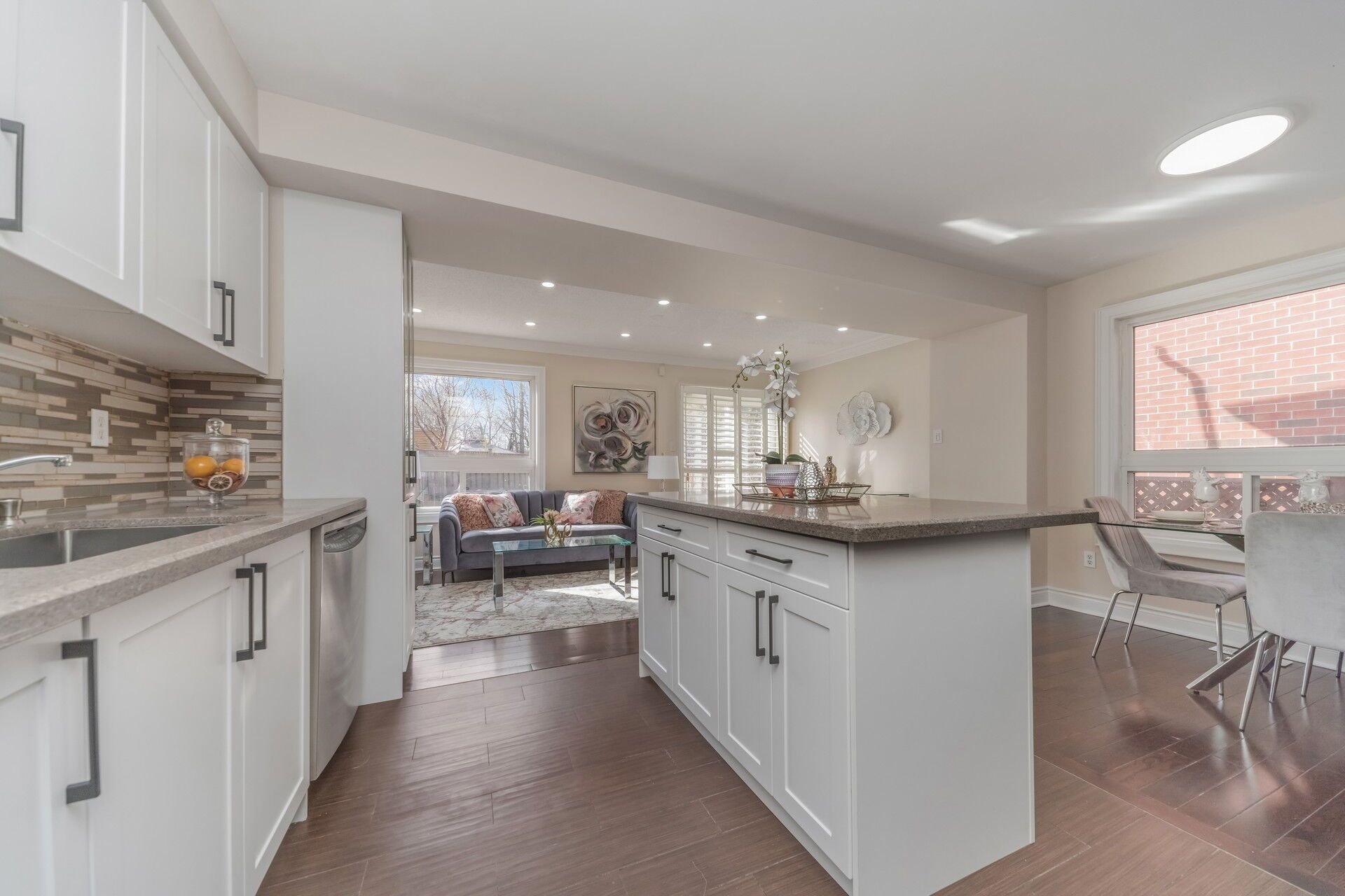 Legal basement! Spacious 4 bedroom semi-detached home located on a quiet court. $$$ spent on recent upgrades. Welcoming front entry with covered porch & main door featuring beveled glass door inserts. Huge driveway offers extra parking. Features a new family size kitchen with granite countertops, stylish backsplash, extended pantry, gas stove, stainless steel appliances. Elegant raised panel wainscoting, pot lights, updated light fixtures, iron pickets & glazed staircase add to the home's charm. Bright family room overlooks ravine-like backyard. Large primary bedroom offers 5 pc ensuite with glass shower & w/i closet. Washrooms feature quartz countertops. Separate laundry room. All three additional bedrooms are spaciously sized with windows and closets. No carpet throughout the home. Seperate lundry. Legal finished basement with separate entrance offers excellent income potential or perfect space for extended family. Close to parks, schools, transit, shopping plazas & all essential amenities. A perfect family home in a prime location!