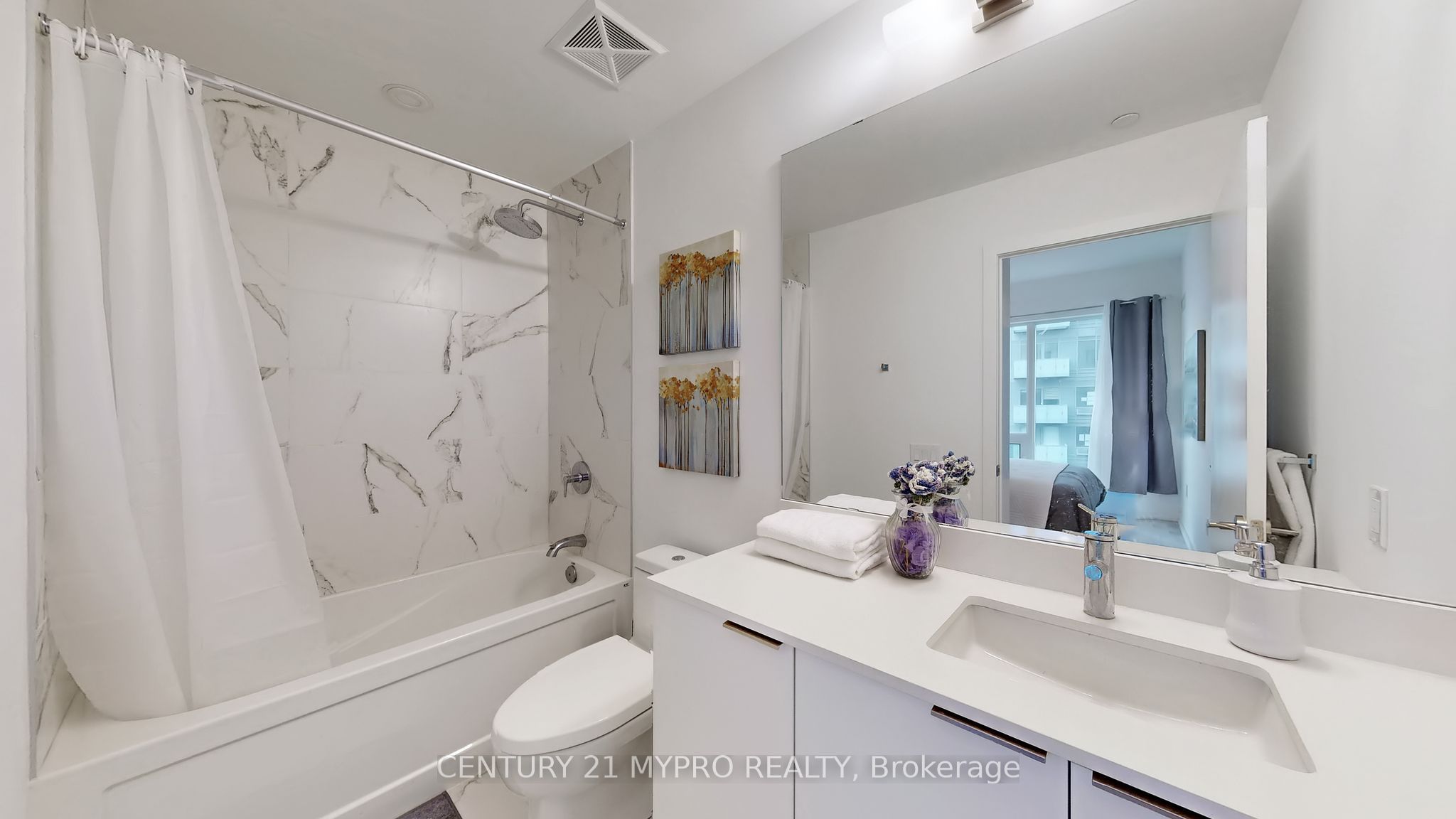 Discover luxury and elegance at suite s803, 8 olympic garden. This impeccably designed residence features a spacious 1+ den bedroom (spacious den can be used as 2nd bedroom), 2 full bathroom layout with impressive 10-foot ceilings, creating an expansive and inviting atmosphere. Enjoy a modern kitchen with high-end appliances and ample storage. The bedroom offers a serene retreat with large windows. Located in a prime area, this suite provides convenient access to vibrant amenities and dining options, offering the ultimate urban living experience. H-mart flagship store will open soon on the first floor.