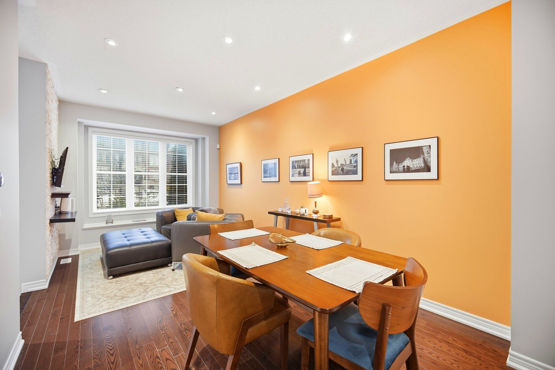 Welcome to this stunning freehold townhouse offering just over 2,200 sq. Ft. Of beautifully upgraded living space in an unbeatable location. Featuring hardwood floors throughout and pot lights across the entire home, this property blends elegance with everyday functionality. The impressively designed kitchen showcases upgraded cabinetry with under-cabinet lighting, quartz countertops, and high-end stainless-steel appliances. The main floor boasts 9-foot ceilings, elegant iron pickets along the staircase. The open-concept layout flows seamlessly to the second level, highlighted by a dramatic family room that is open to the top floor and features soaring ceilings (approximately 24 ft.) with spectacular floor-to-ceiling windows, a cozy gas fireplace, and a walkout to a private deck - a truly breathtaking space filled with natural light. The second floor also features a spacious primary bedroom with a 4-piece ensuite and large walk-in closet. The second floor also has the convenience of a spacious laundry room. 2 spacious bedrooms, one with a walk-in closet, and a 4-pc washroom grace the third floor. The professionally finished basement provides additional living space complete with a 3-piece washroom - ideal for a recreation area, guest suite, or home office. Professionally landscaped front and back, the home also offers an attached garage with interior access and a side door entry, plus an additional parking space for a total of 4+1 parking spots. Ideally located just steps to schools, vaughan mills, restaurants, and only minutes to highway 400, this home offers exceptional space, style, and accessibility.