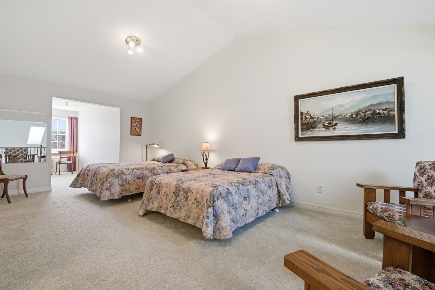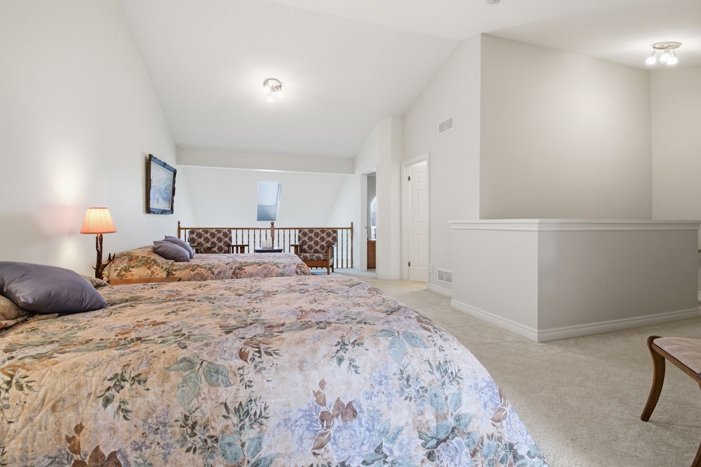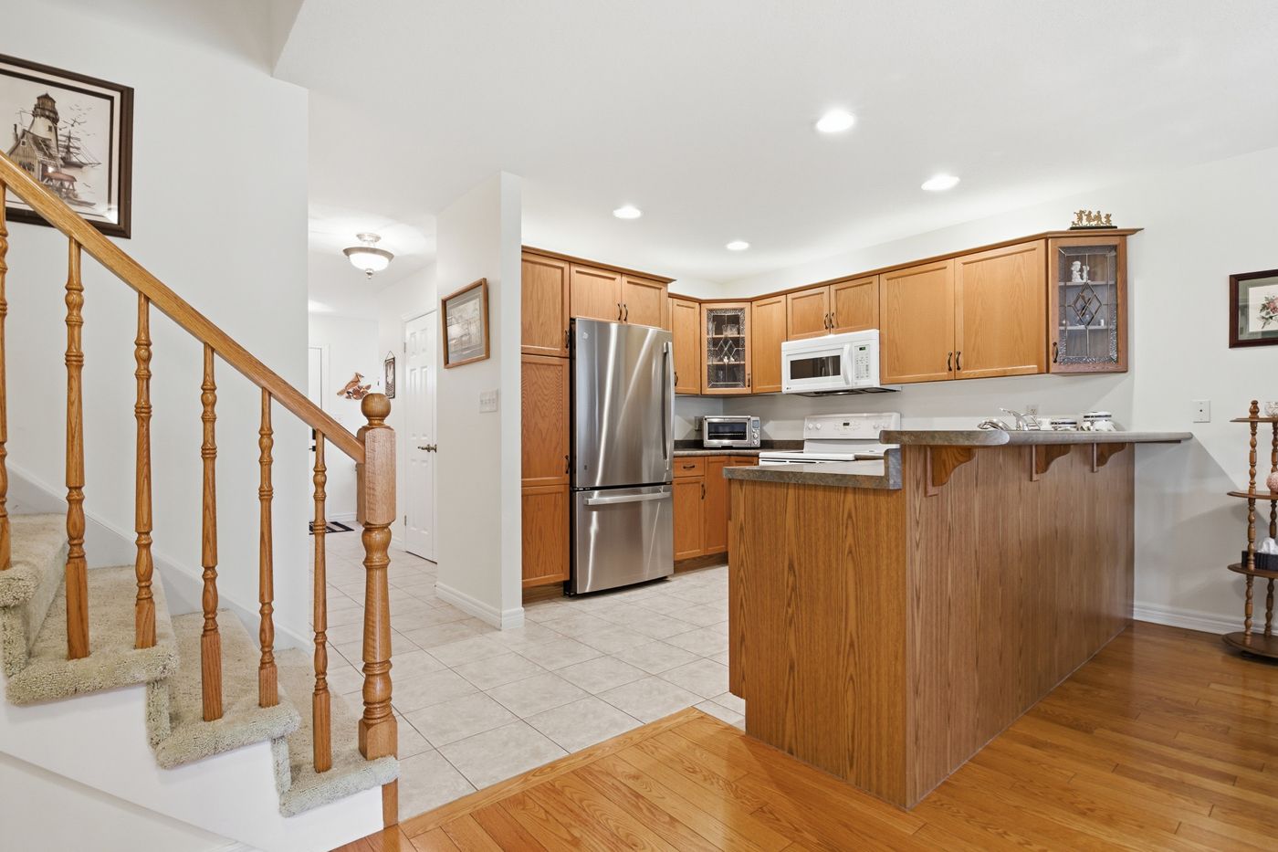 Welcome to 8 portal drive, a well-maintained bungaloft in the desirable portal village community, backing directly onto maple park and walking paths. Built in 2003 and proudly owned by the original owner since day one, this home has been thoughtfully cared for and offers a fantastic opportunity for low-maintenance living in a quiet, established neighbourhood. The main floor features a functional layout with a spacious primary bedroom, full bathroom, and convenient main floor laundry. The open-concept living and dining area provides plenty of natural light with vaulted ceilings and direct access to the back deck, where you can enjoy peaceful views of the park with no rear neighbours. Upstairs, the loft offers additional living space, perfect for guests or visiting family, along with a second bedroom and bathroom. A full unfinished basement provides a blank canvas for future development, whether you're looking to expand your living space or create a customized area to suit your needs. Recent updates include a furnace (2018) and a newer roof, offering added peace of mind. Additional features include an attached single-car garage and private driveway parking. Located in a sought-after neighbourhood known for its quiet streets and strong sense of community, this home is ideal for those looking to downsize, retire, or enjoy a more relaxed pace of living while staying close to local amenities.