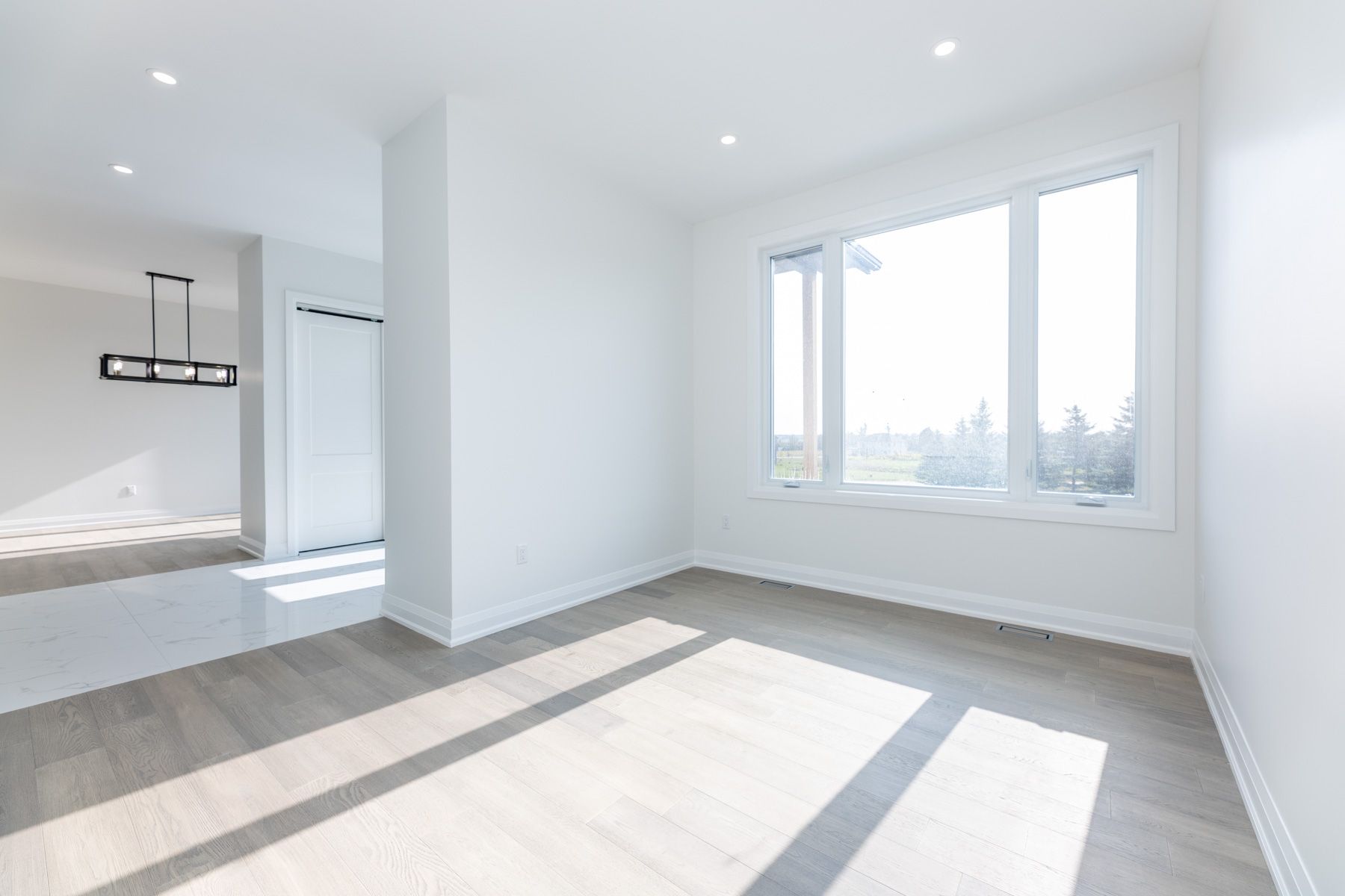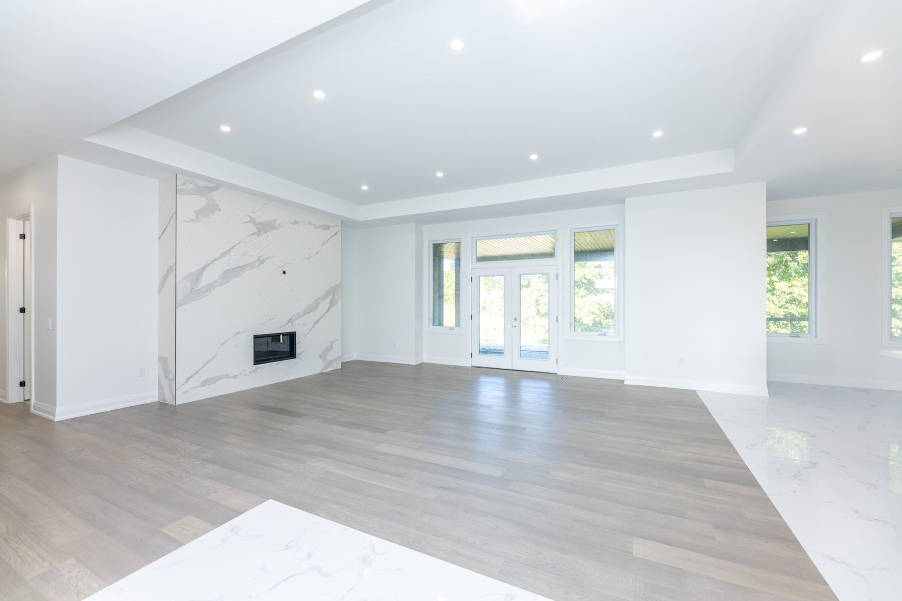 • Open concept layout and large family room with a fireplace.