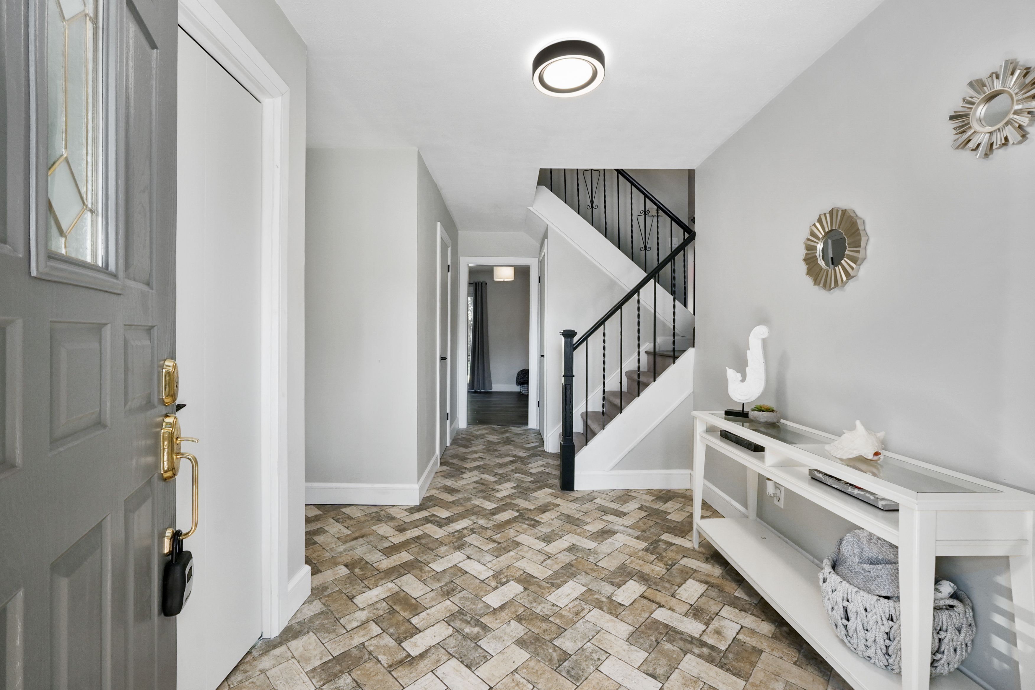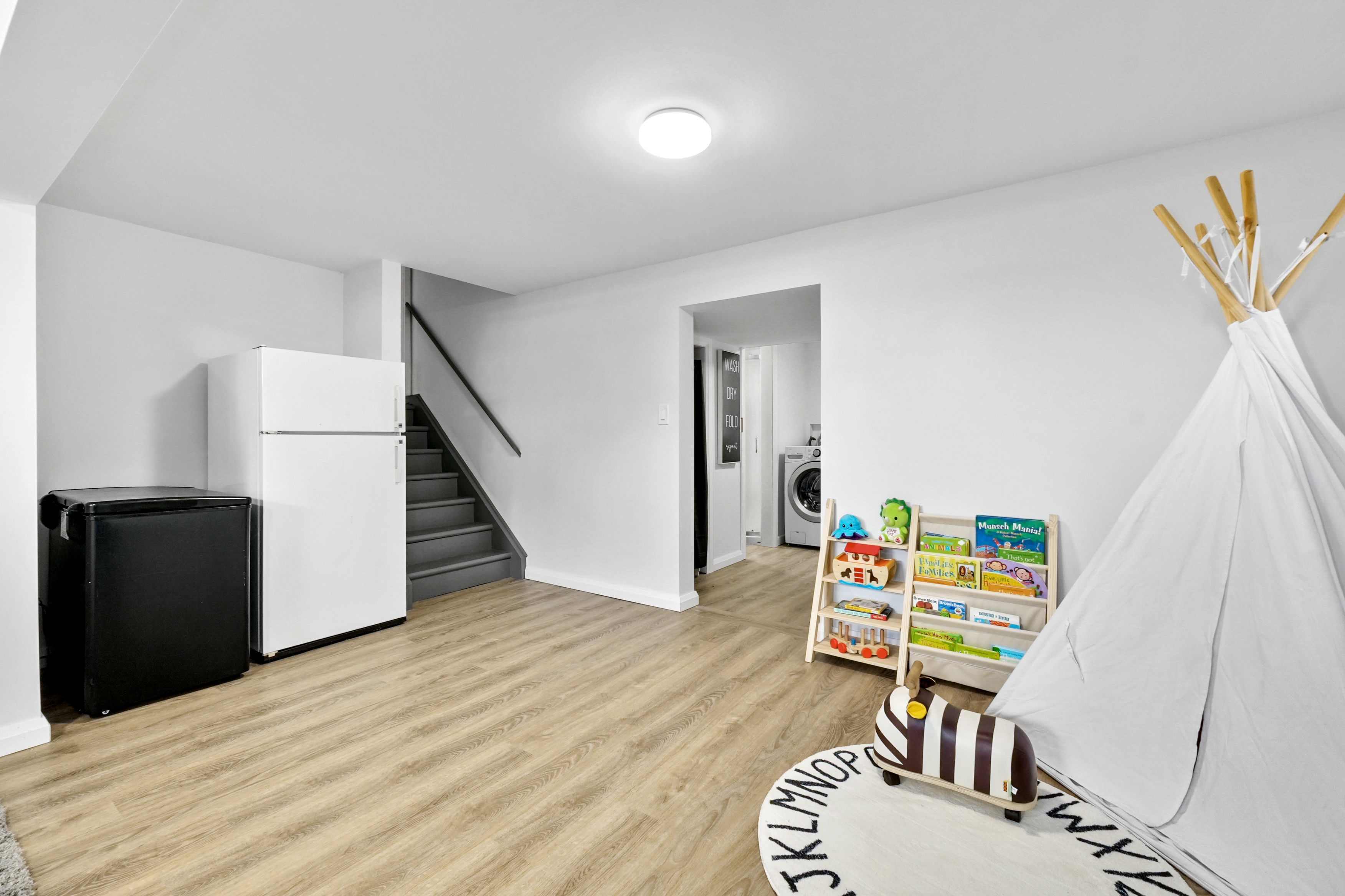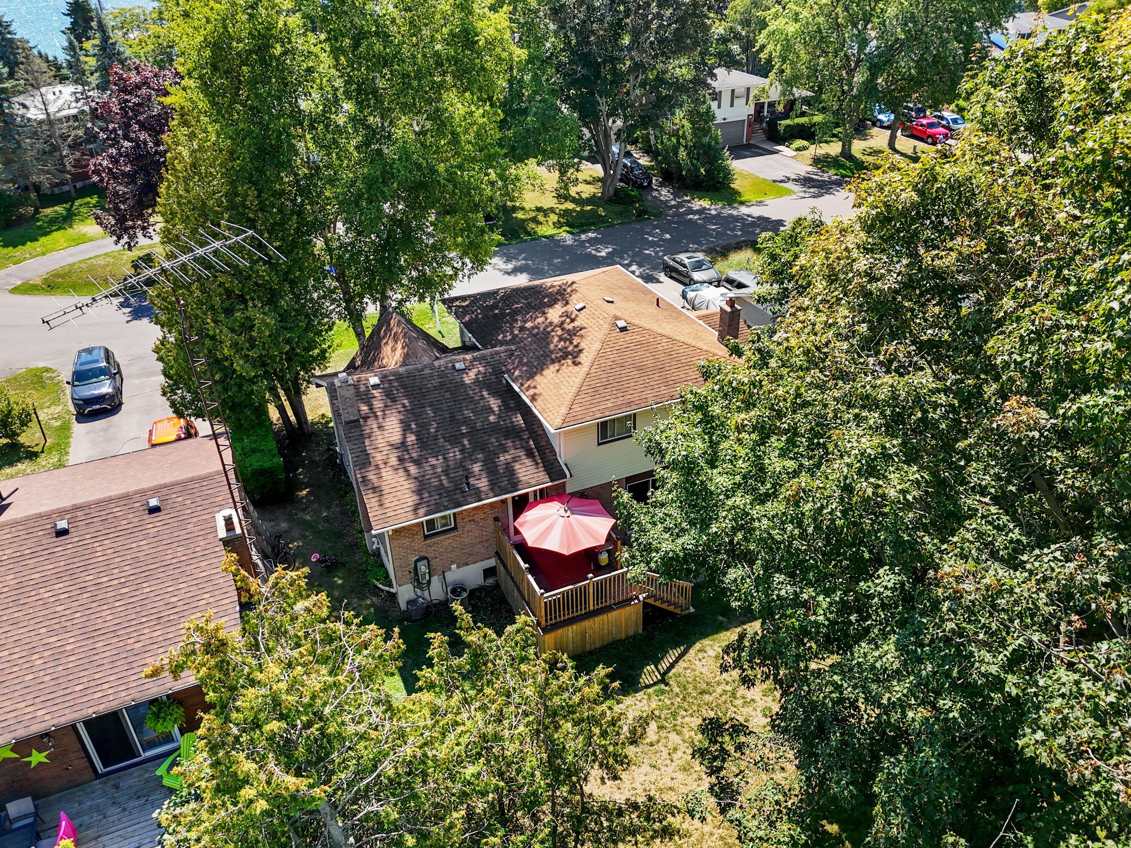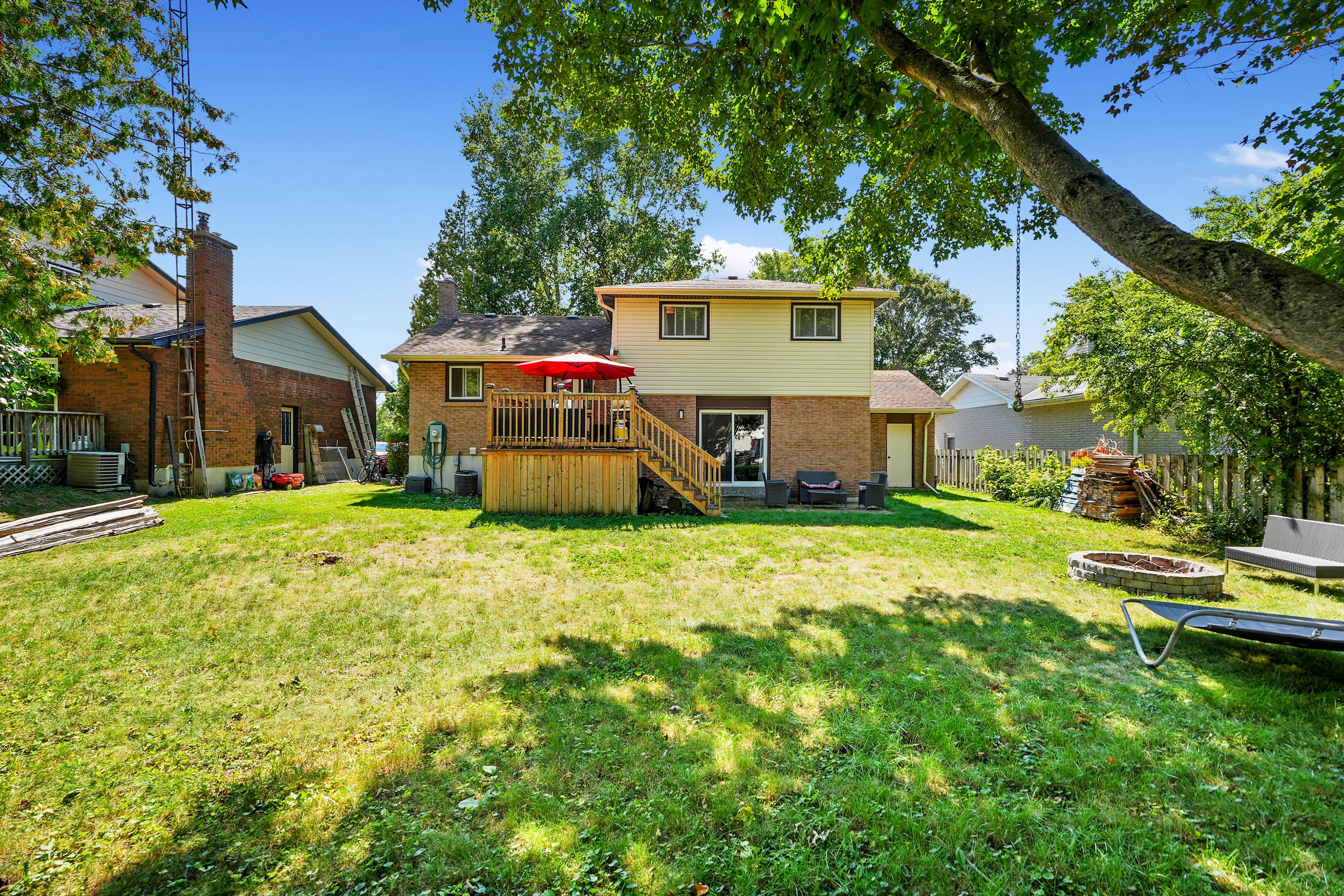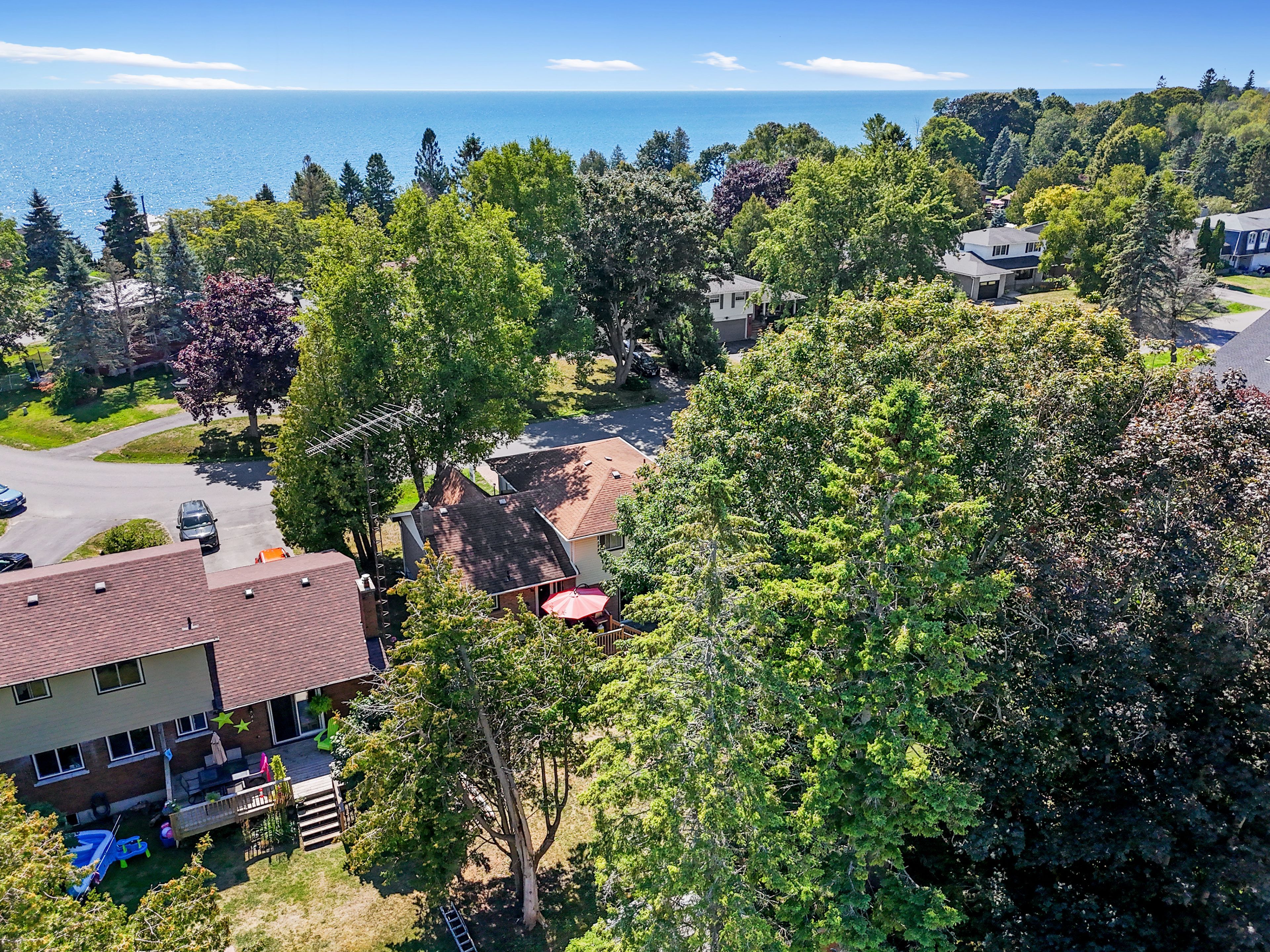 Situated on a quiet street in cobourg's highly desirable west pebble beach neighbourhood, this 4-bedroom family home combines space, comfort, and lifestyle, just steps from lake ontario. The spacious entry hall offers a large closet, guest bathroom, and direct access to the family room featuring a cozy fireplace and walkout to the patio. The open principal living space includes a sunlit living room with a large front window and carpet-free layout, creating a warm and functional flow. The kitchen is designed for both everyday living and entertaining, showcasing an island breakfast bar with contemporary pendant lighting, matching appliances with a sleek hood vent, tile backsplash, undermount sink, and a dining area with a walkout that extends gatherings outdoors. Upstairs, four well-appointed bedrooms and a modern full bathroom provide comfort for the entire family. The lower level adds versatility with a rec room, games or play area, a laundry room, an additional bathroom, and ample storage space. Step outside to enjoy an elevated deck off the kitchen, ideal for bbqs and al fresco dining, plus a ground-level patio from the family room for evening relaxation. Mature trees, green space, and a fire pit area complete the outdoor retreat. Located just moments from downtown cobourg and the shores of lake ontario, this property offers both a lifestyle and convenience. Don't miss the opportunity to make this home yours.