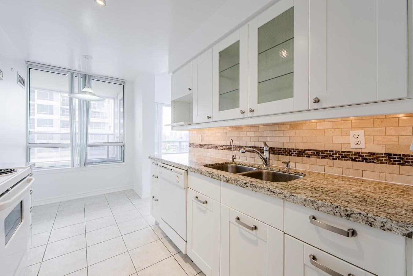 • Modern eat-in kitchen with granite counters and fresh upgrades.