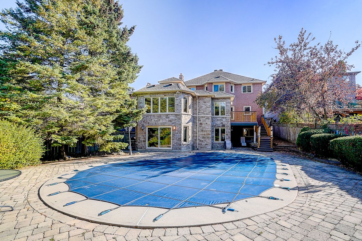 Nestled on one of the most prestigious and quiet cul-de-sacs in thornlea estates, this custom-built executive detached home offers a rare blend of space, comfort, and natural beauty, backing onto a breathtaking ravine with a beautiful saltwater pool and complete privacy. Designed for both elegance and functionality, the residence features an elevator to all levels, ensuring effortless accessibility throughout. The main level includes spacious living and dining rooms, while the large family room, with its abundance of windows and skylights, fills the home with natural light and offers panoramic ravine views, creating a warm and inviting setting for everyday living. A convenient main-floor primary bedroom with ensuite bath provides comfort and flexibility, ideal for multigenerational families or those seeking single-level living. The family-sized kitchen includes a bright breakfast area with a walkout to the deck overlooking the private, tree-lined ravine lot, offering beautiful natural scenery and a peaceful backdrop for daily life. Upstairs, the second-floor primary suite features a 5-pieceensuite, expansive closets, and serene ravine views, accompanied by three additional spacious bedrooms perfect for family and guests. The finished walkout basement expands the living space with a large family room, recreation area, guest suite, and office, with direct access to the landscaped backyard featuring a saltwater pool. Thoughtfully designed with every comfort in mind, this home also includes a ground-floor laundry/mudroom with side entry, dual furnaces and air conditioners, and no sidewalks for extra driveway space. Ideally located near top-ranked schools including bayview glen ps, thornlea ss, and st. Robert chs (ib program), and just minutes to highways 404, 407, and 7, parks, community centers, and shopping, this remarkable home combines the peaceful charm of nature with exceptional convenience and tremendous potential for both families and investors.