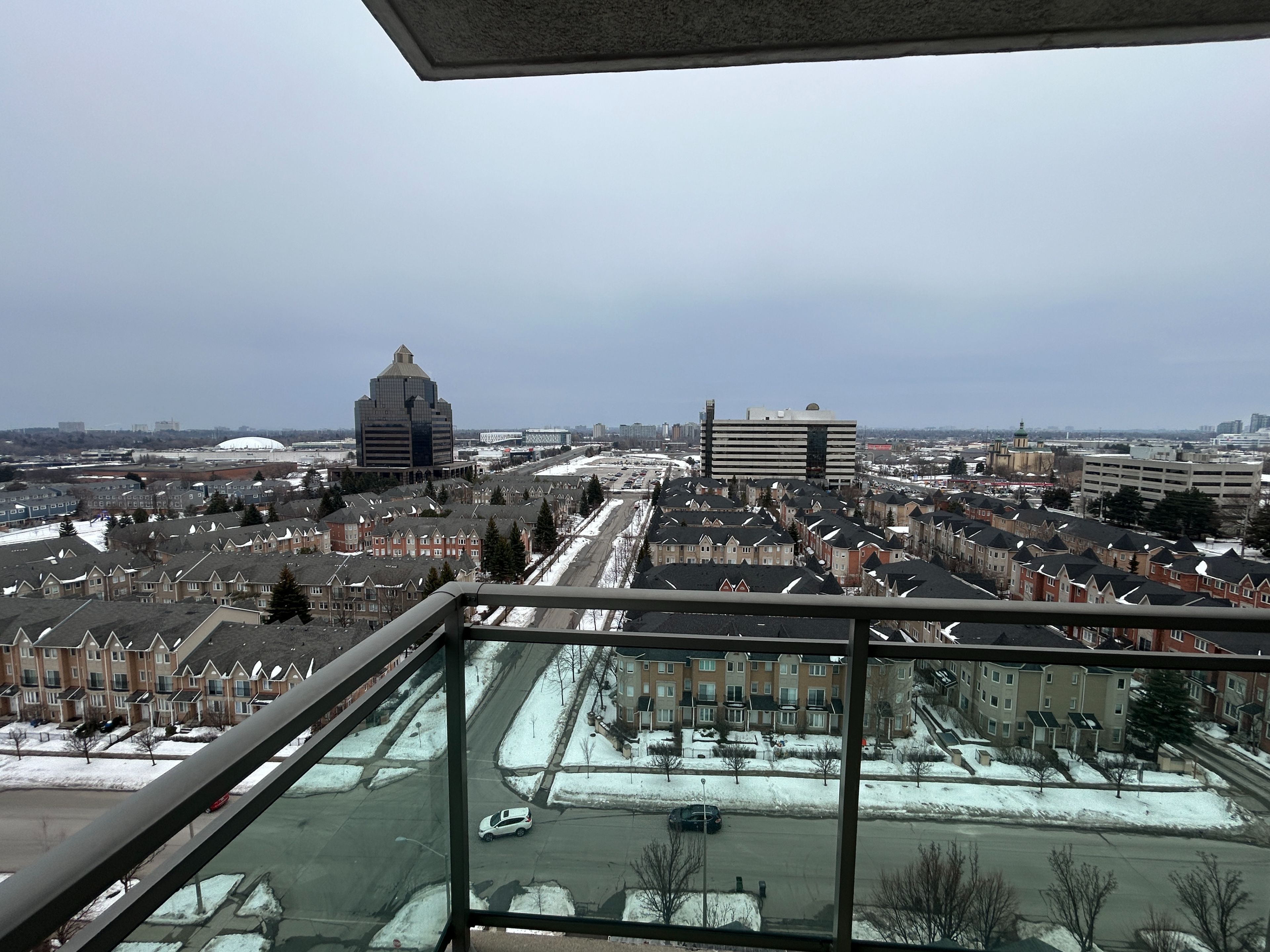 Be pleasantly surprised by this bright and spacious 850 sq. Ft. Corner suite in the highly desirable markham place community-offering added buyer confidence with a unique conditional seller offset to potential condo fee increases. This thoughtfully designed split-bedroom layout provides excellent privacy and comfort, with abundant natural light from floor to ceiling east and oversized south-facing windows. A rare offering, the suite features two full 4-piece bathrooms and four generous closets for exceptional storage. Recent updates-including new laminate flooring, fresh paint throughout, electronic thermostats, and a new kitchen faucet-create a clean, move-in-ready space ideal for low-maintenance condo living. Lovingly maintained and obviously lightly lived in, shows like new! The open-concept kitchen is equipped with granite countertops, a breakfast bar, and four matching appliances-perfect for everyday living and staying connected with family or guests while overlooking the bright living area and expansive views. Enjoy the outdoors from your ~75 sq. Ft. Corner balcony with glass railings, offering sweeping city views to the east, south, and west-ideal for morning coffee or evening relaxation. Residents of markham place benefit from a full range of amenities, including a fitness centre, party room, games room, media room, and visitor suite. Conveniently located just minutes to highway 401, this inviting suite offers the perfect blend of comfort, functionality, and location. Be sure to explore the media link for the video tour and enjoy the extensive photo gallery.