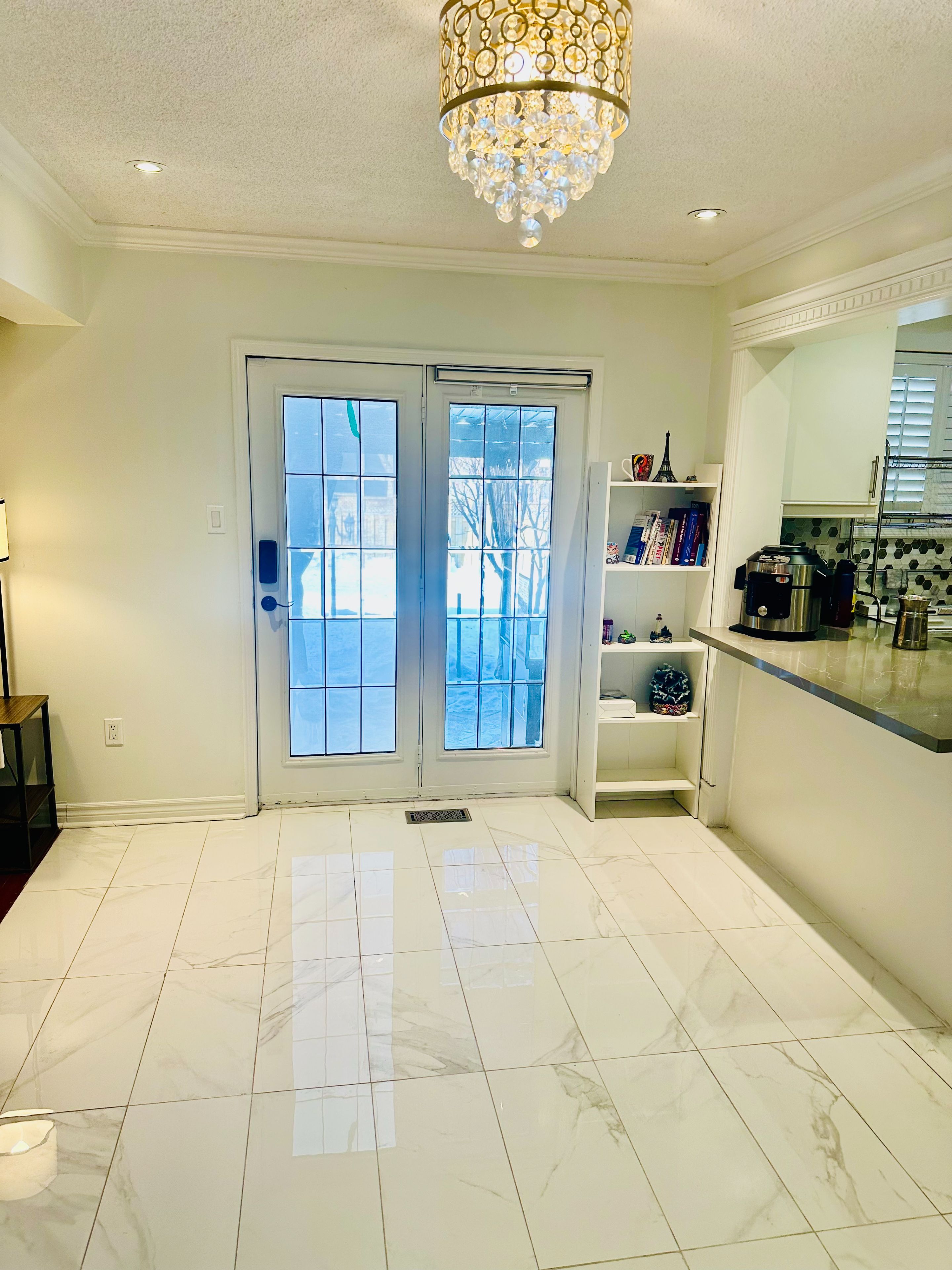 • Renovated eat-in kitchen with stainless steel appliances and backyard access.