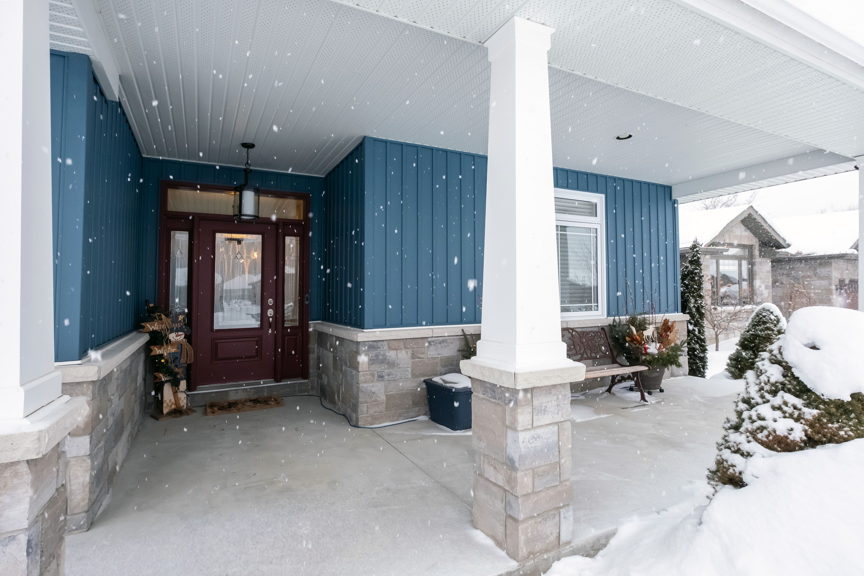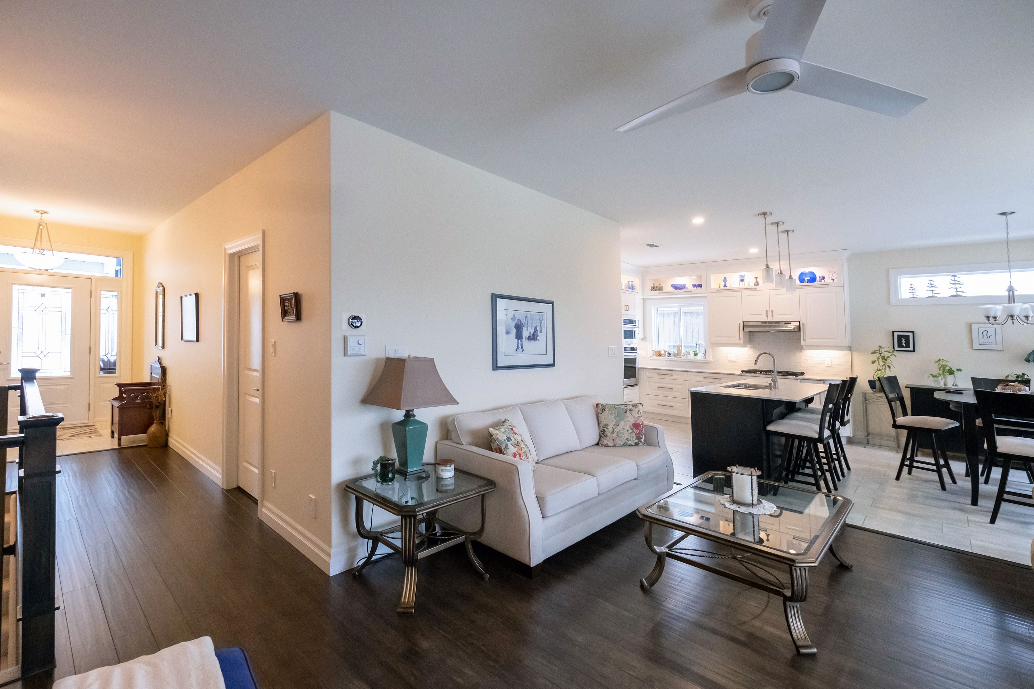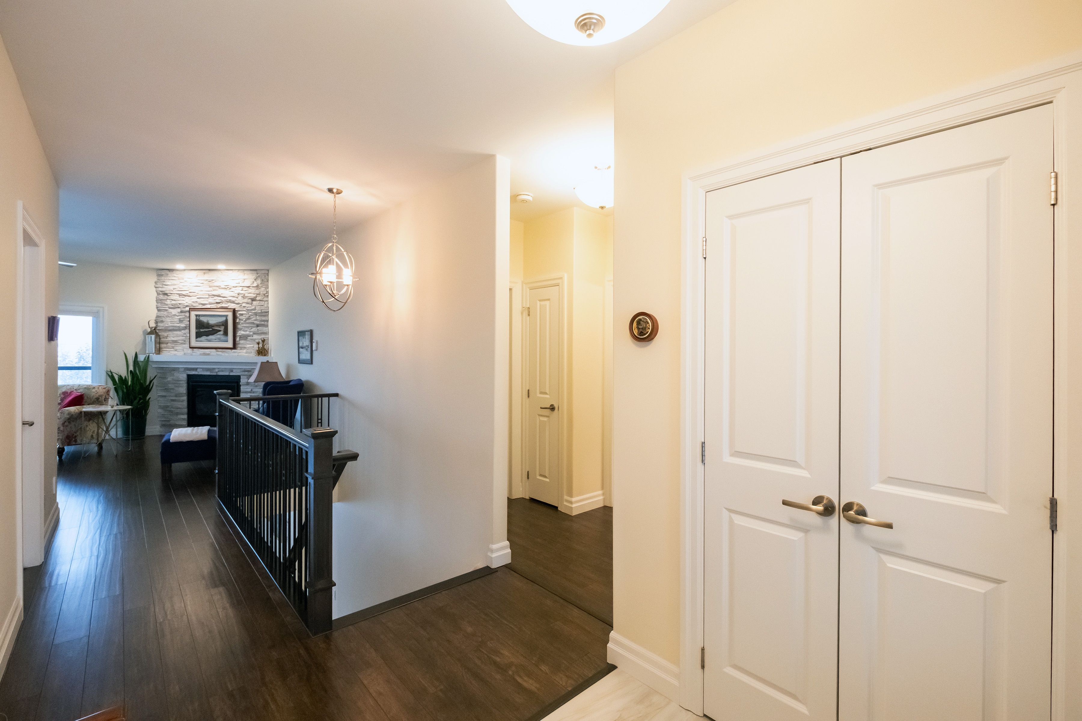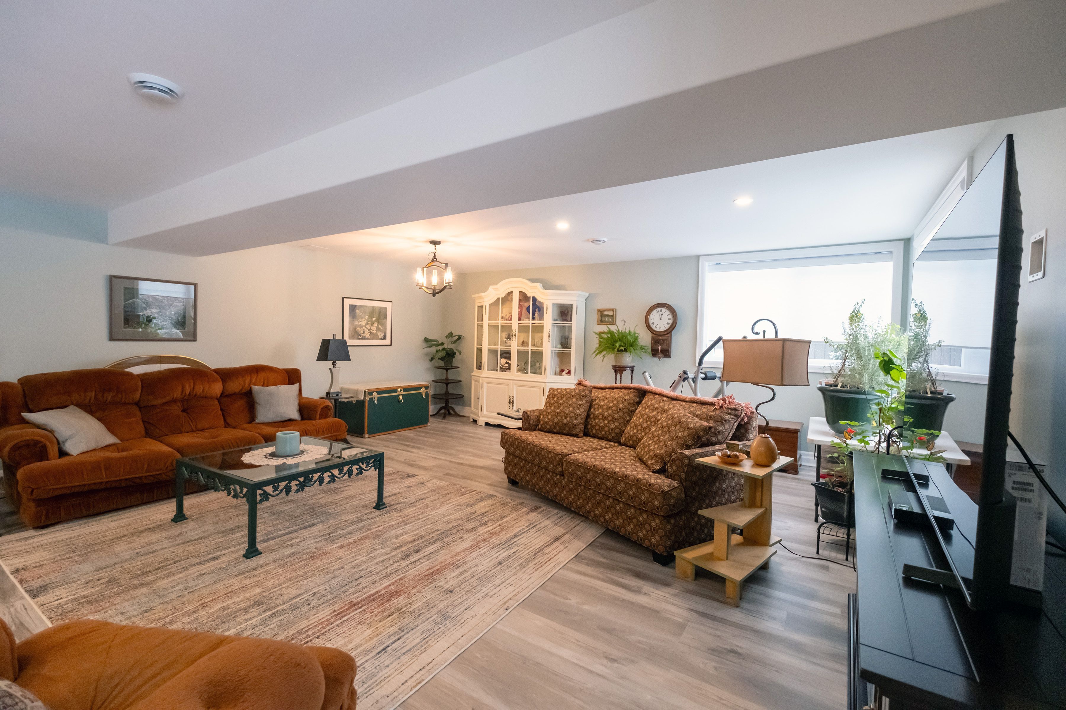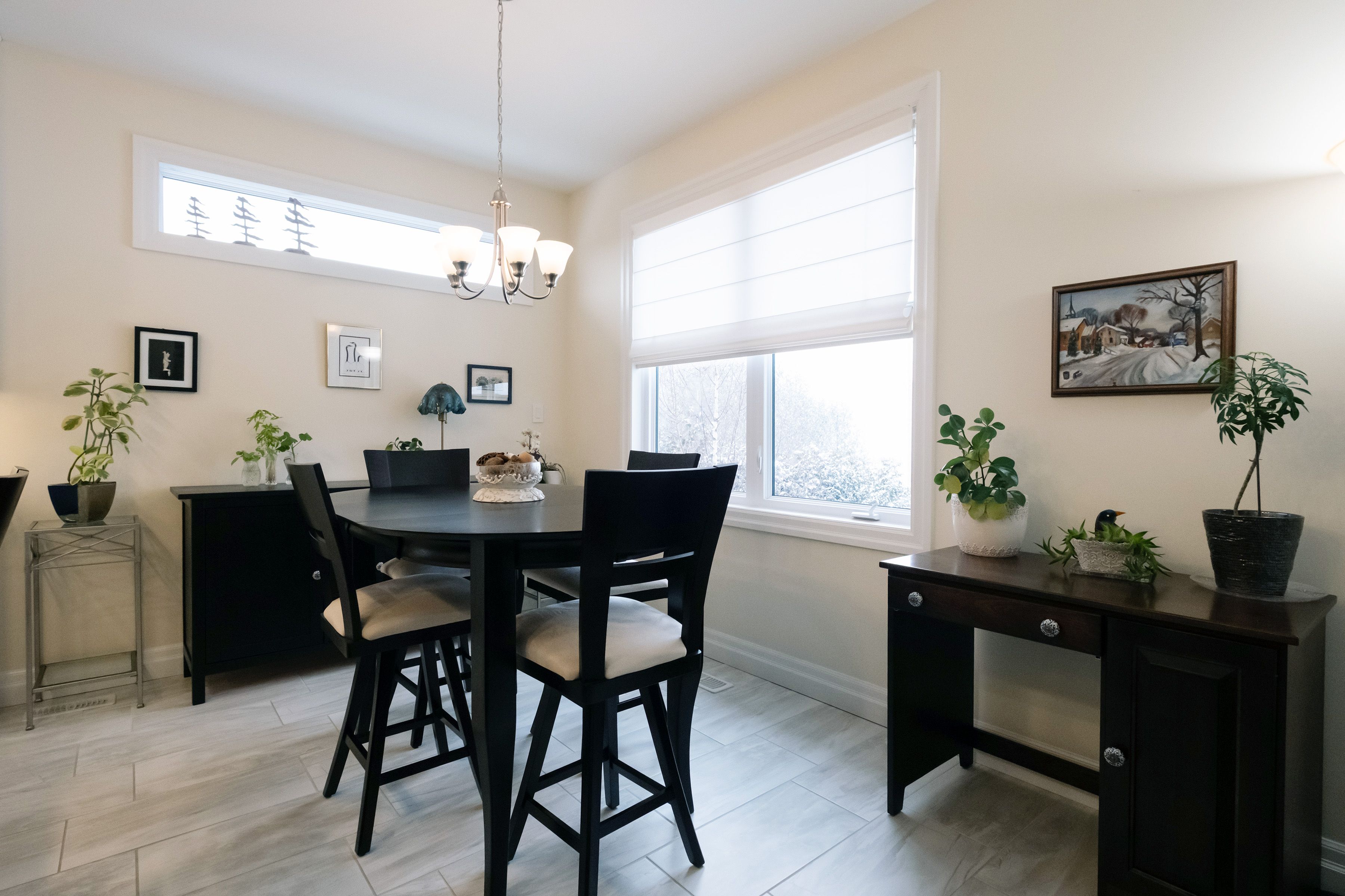 Welcome to this beautifully appointed residence showcasing timeless stone and vinyl exterior detailing, manicured landscaping, and a paved driveway. A spacious foyer sets the tone, opening to an elegant main level highlighted by soaring 9-foot ceilings and refined ceiling lighting throughout. The chef-inspired kitchen is thoughtfully designed with built-in appliances, quartz countertops, a walk-in pantry and seamless flow to the dining area ideal for entertaining. The inviting living room features a gas fireplace and an impressive 8-foot patio door that opens to a private/covered deck, creating a perfect indoor - outdoor connection. Retreat to the primary suite, complete with a walk-in closet and a stylish 3 piece ensuite featuring heated floors, makeup mirror, and a rough-in for hot water to accommodate a bidet. One additional well proportioned bedroom and a beautifully finished 4 piece bath complete the main level. The fully finished lower level elevates the living space with a generous recreation room offering a walkout to the rear yard and a rough-in for a future fireplace. This level also includes an additional 2 bedrooms, a 3 piece bath, a utility room with double sinks, and a generous storage room. Step outside to enjoy the large, fully fenced backyard - a private oasis perfect for entertaining, family living, or quiet relaxation. As an added bonus, the backyard features a convenient toy entry, allowing for effortless access in and out.