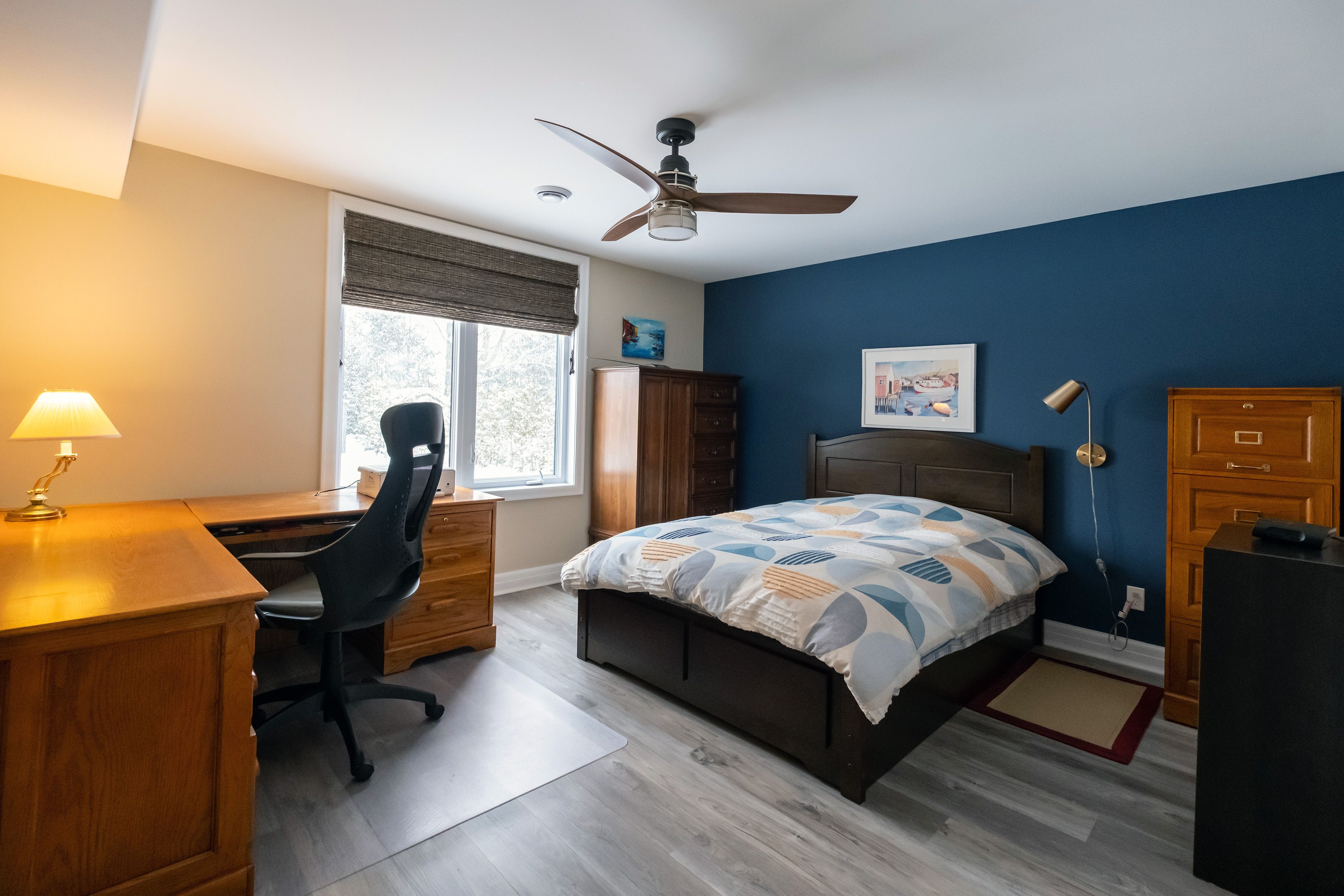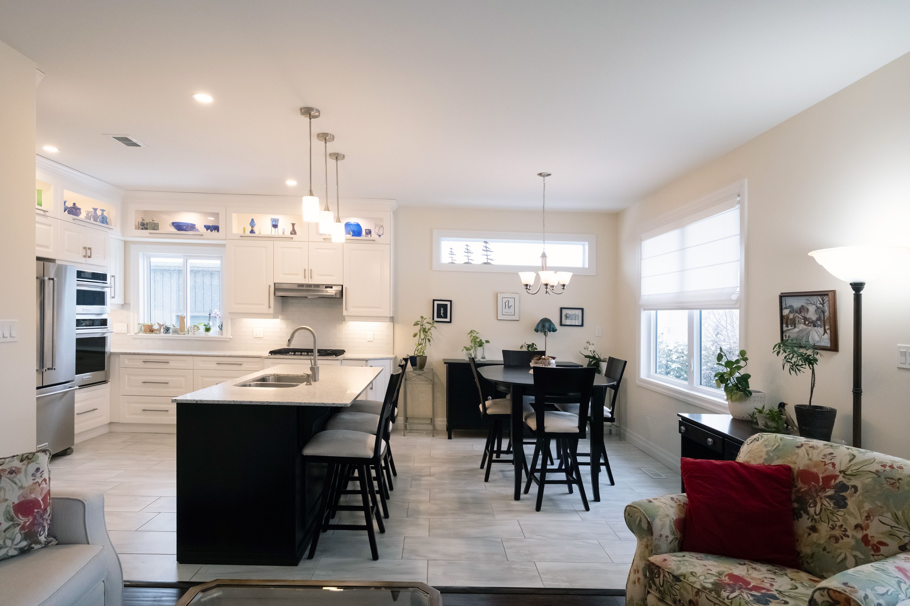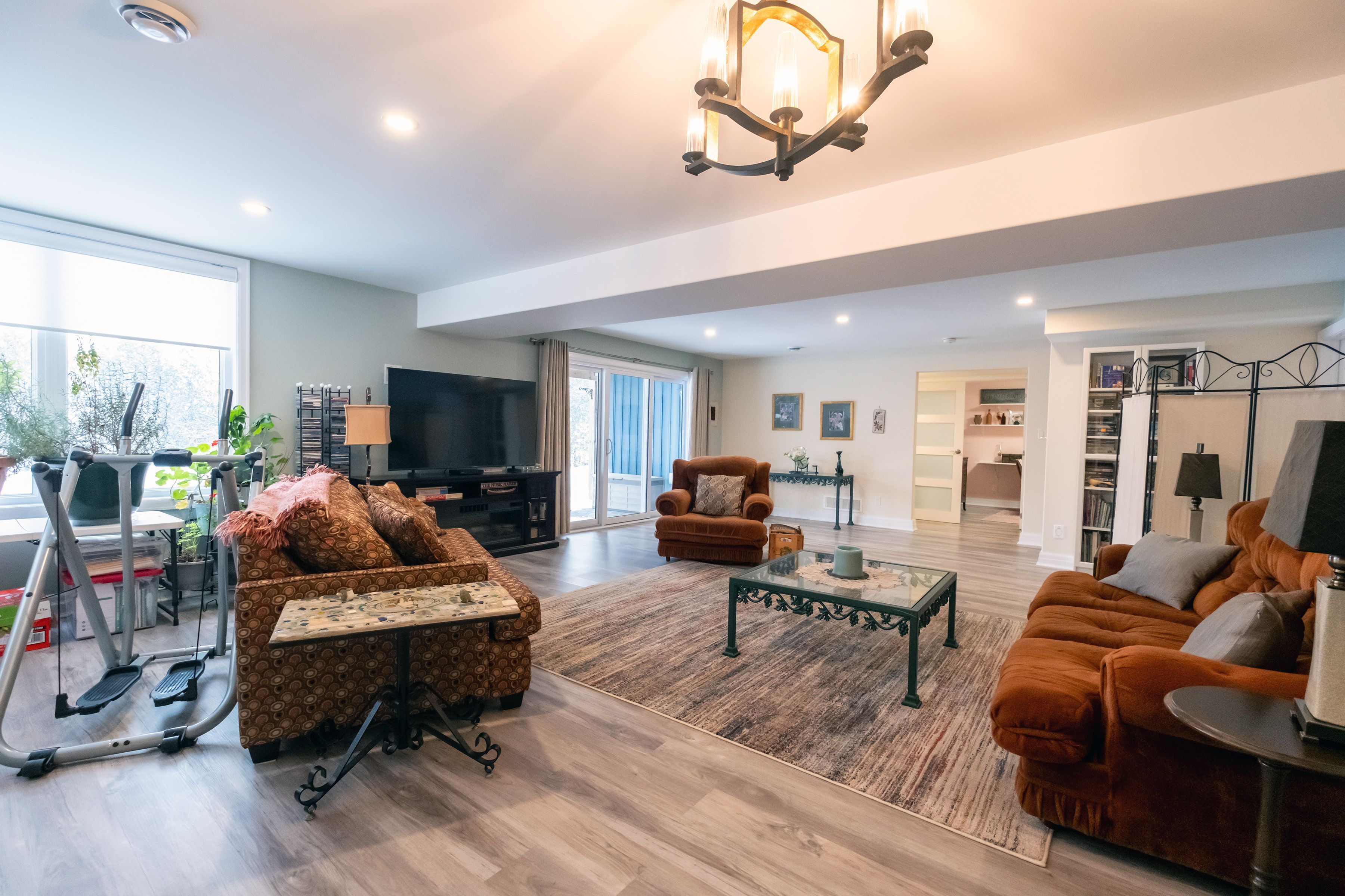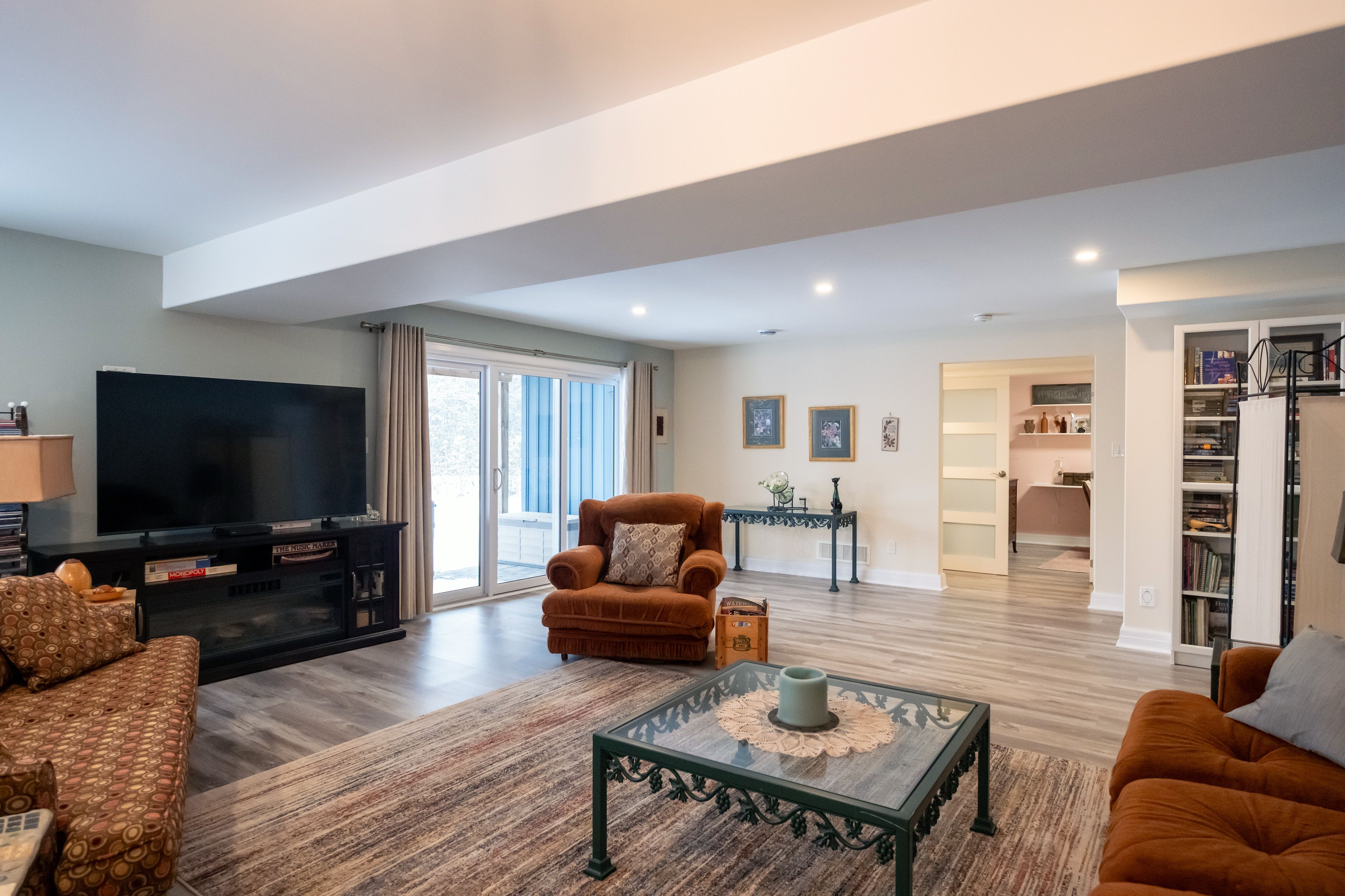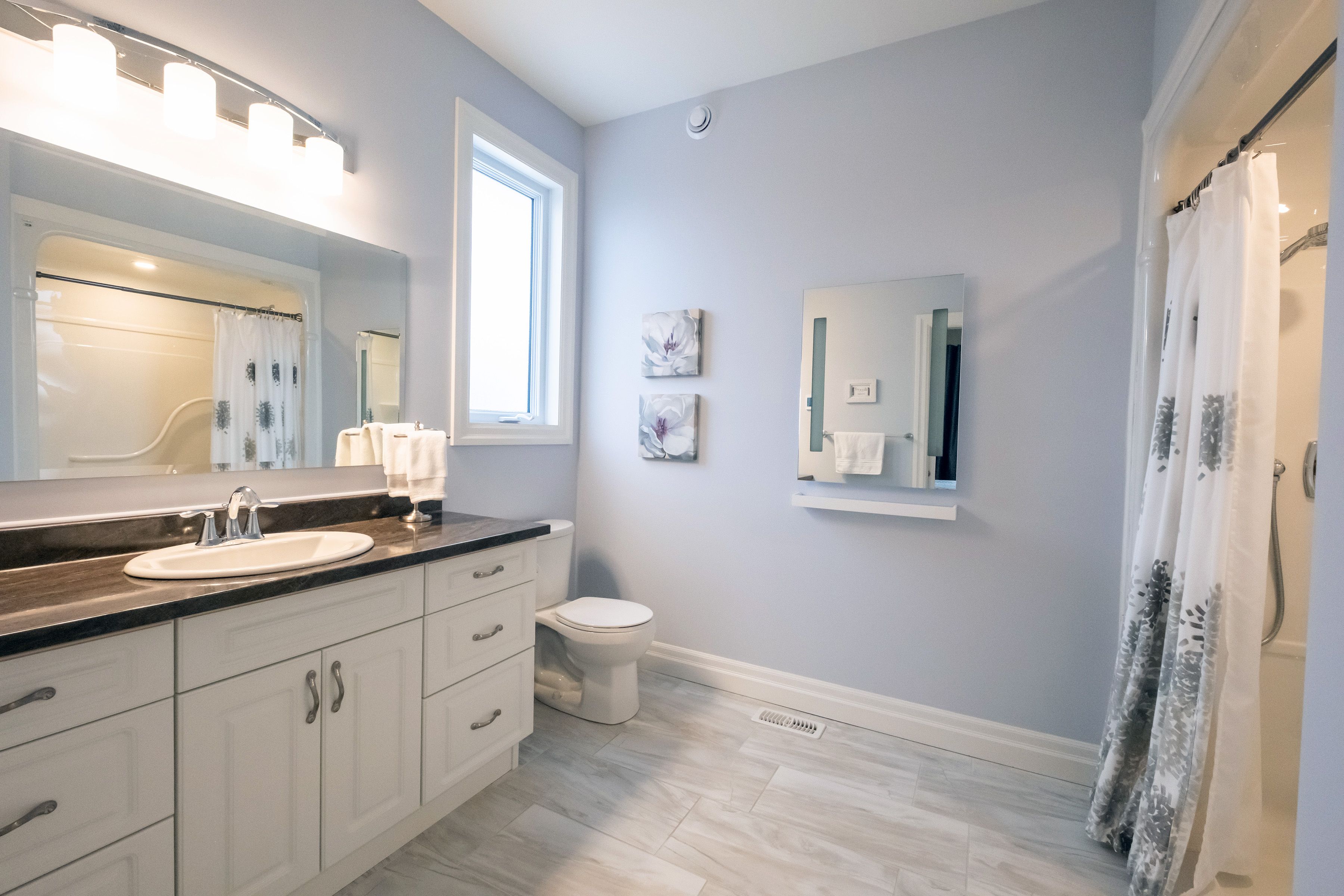 Welcome to this beautifully appointed residence showcasing timeless stone and vinyl exterior detailing, manicured landscaping, and a paved driveway. A spacious foyer sets the tone, opening to an elegant main level highlighted by soaring 9-foot ceilings and refined ceiling lighting throughout. The chef-inspired kitchen is thoughtfully designed with built-in appliances, quartz countertops, a walk-in pantry and seamless flow to the dining area ideal for entertaining. The inviting living room features a gas fireplace and an impressive 8-foot patio door that opens to a private/covered deck, creating a perfect indoor - outdoor connection. Retreat to the primary suite, complete with a walk-in closet and a stylish 3 piece ensuite featuring heated floors, makeup mirror, and a rough-in for hot water to accommodate a bidet. One additional well proportioned bedroom and a beautifully finished 4 piece bath complete the main level. The fully finished lower level elevates the living space with a generous recreation room offering a walkout to the rear yard and a rough-in for a future fireplace. This level also includes an additional 2 bedrooms, a 3 piece bath, a utility room with double sinks, and a generous storage room. Step outside to enjoy the large, fully fenced backyard - a private oasis perfect for entertaining, family living, or quiet relaxation. As an added bonus, the backyard features a convenient toy entry, allowing for effortless access in and out.