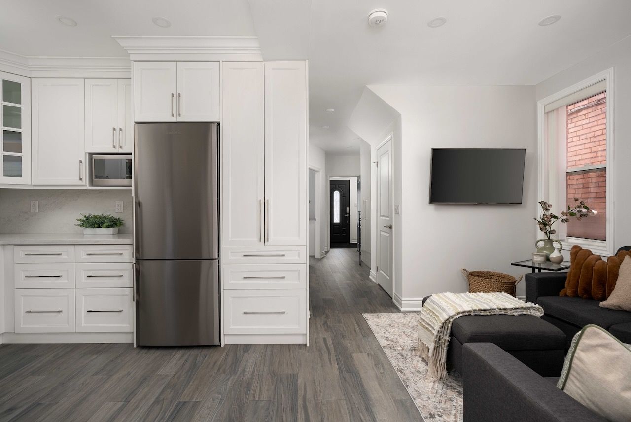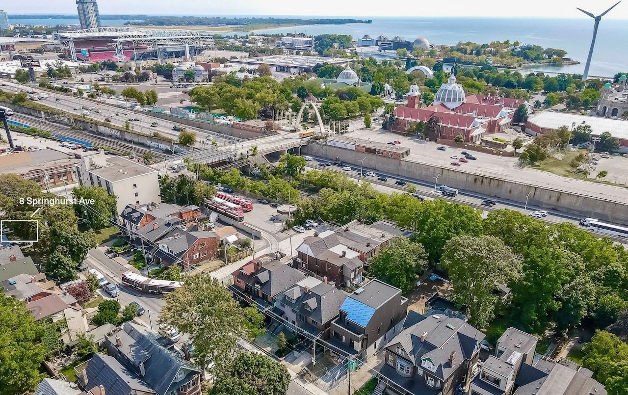 Let's start with the obvious. 8 springhurst sits four minutes on foot from exhibition place, nine from bmo field, and squarely inside one of toronto's most consistent, highest-traffic rental corridors. Over 12 million combined annual visitors pass through this stretch, including the cne, honda indy, caribana, the royal winter fair, and that's before you factor in what's coming: six confirmed fifa world cup 2026 matches at bmo field, the ontario place revitalization projecting 6m+ annual visitors, and the rbc amphitheatre transformation already underway. This isn't speculative growth, my friends. The infrastructure is arriving, the demand is baked in, and the location is already doing the heavy lifting. Now for the less obvious part: this 2. 5-storey detached residence is a serious operator. Sitting on a 25x100ft lot with approximately 2,500 sqft of total living space and a private double driveway complete with a dedicated ev charger, it was taken down to the studs and completely rebuilt in 2022. This isn't a renovation story, it's a construction one. Every major system is new. The framing underpinned foundation, the asphalt shingle roof, the windows & plumbing is entirely new. And the mechanicals deserve their own paragraph. No bulkheads, no dropped ceilings, no compromised interiors. All efforts are serving six bathrooms, three kitchens, and three laundry rooms. This is the kind of spec sheet that makes a home inspector blush & a future owner's maintenance budget even happier. Every layout decision was made on purpose. Light, flow, storage, and long-term liveability were the brief, and the result is a structurally superior, eco-friendly build with premium features including radiant heating that will still be performing a decade from now. Outside, the curb appeal delivers just as hard: premium pavers and concrete slabs front and rear, a fully rebuilt porch and balcony with new framing, joists, support beams, stone and brick finishes, and crisp aluminum railings.