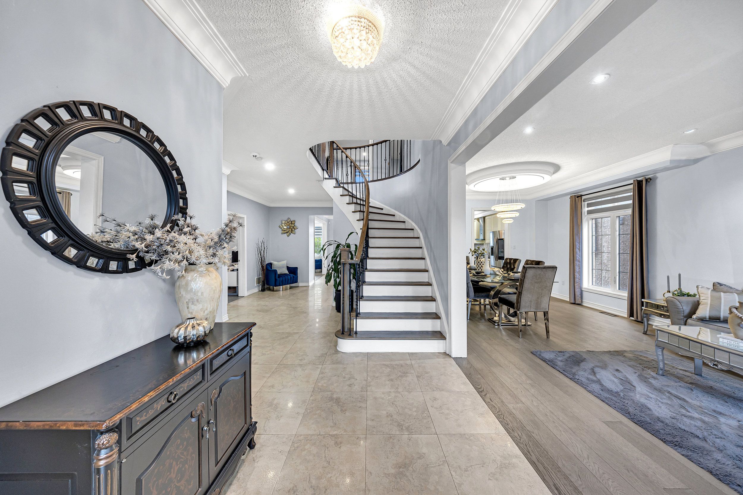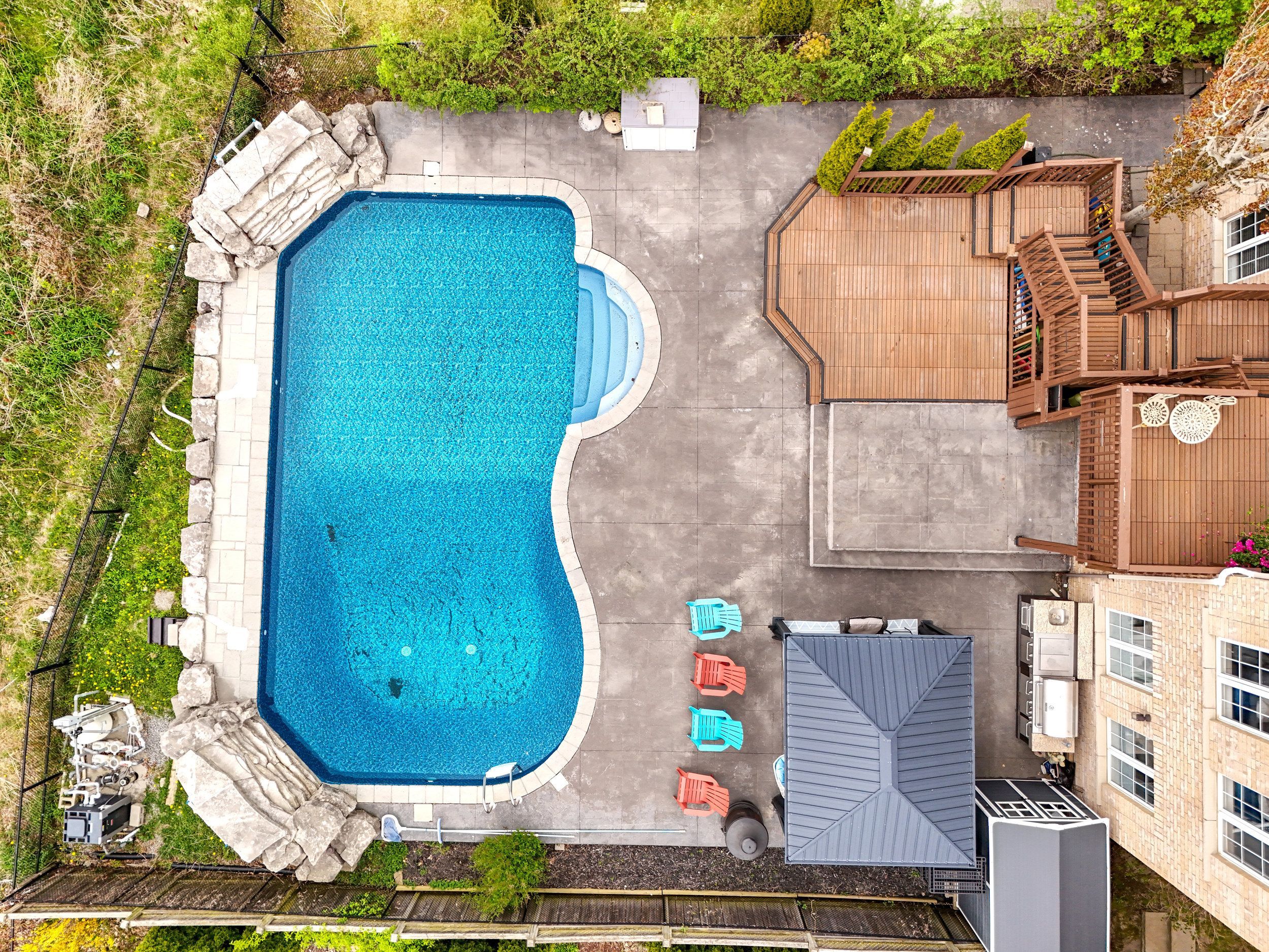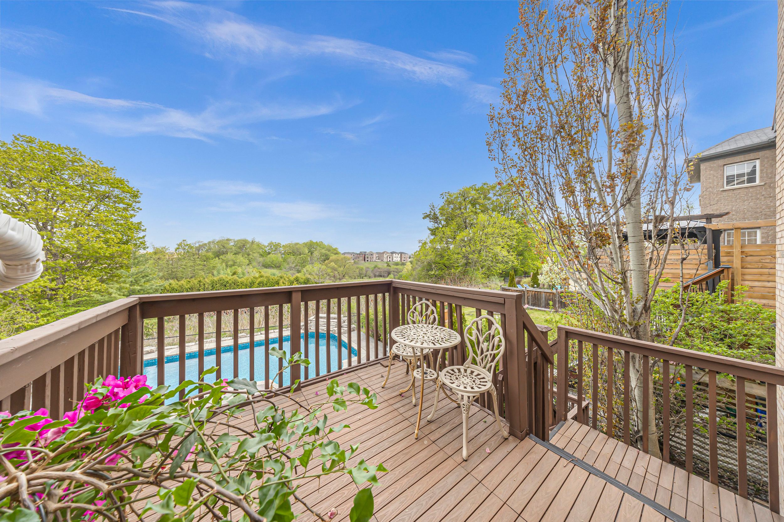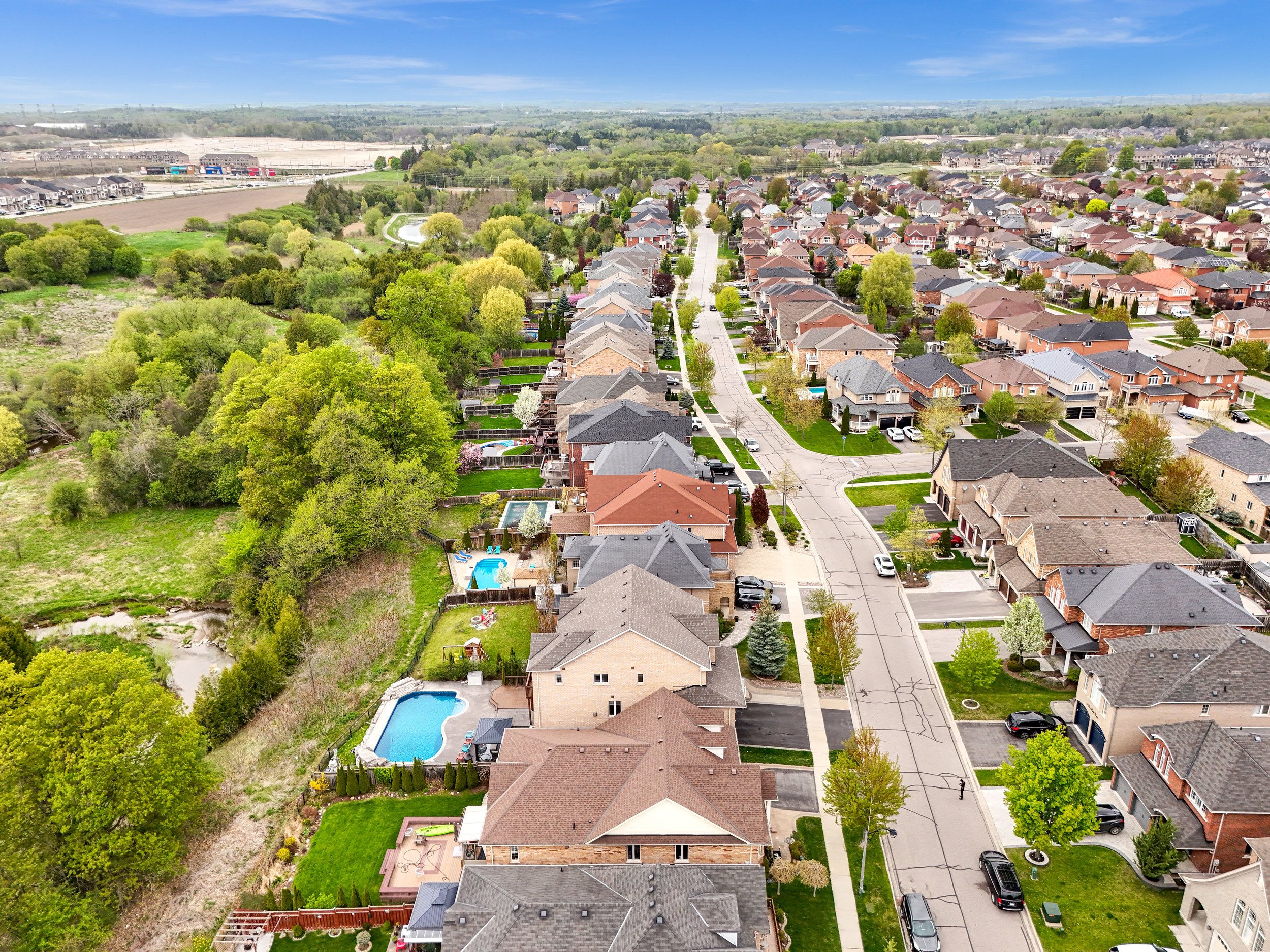 Absolutely stunning detached home situated in the heart of the prestigious williamsburg neighbourhood, boasting over 3,000 sq ft of luxurious living space on a rare and serene ravine lot with a spectacular inground pool, double waterfall features, and breathtaking western exposure for sunset views plus this family home perfectly positioned steps away from the iconic rocketship park truly a dream location for families! The exterior is fully landscaped with stamped concrete, offering a low-maintenance lifestyle. Step inside to an inviting open-concept layout enhanced by new gleaming hardwood floors and an upgraded staircase. The combined living and dining areas are bathed in natural light from oversized windows. The spacious family room is perfect for entertaining or relaxing, highlighted by crown moulding, large windows with ravine views, and a coffered ceiling that adds architectural elegance. The upgraded kitchen with stainless steel appliances, a large centre island, granite countertops, stylish backsplash, and a breakfast area with walk-out to the elevated deck overlooking your backyard paradise. Upstairs, you'll find five spacious bedrooms, perfect for a growing family. The primary suite offers a 5-piece ensuite, walk-in closet, and ravine views. The 4th bedroom also features its own 4-piece ensuite and walk-in closet. The remaining bedrooms are spacious, each with large windows and ample closet space, providing comfort and functionality for everyone. The fully finished walk-out basement with a separate entrance offers endless possibilities an ideal setup for extended family, guests, or potential rental income. This home truly has it all. Located steps away from top-rated schools like williamsburg public, parks, shopping, restaurants, hwy 401, 412, and the go station. Truly a forever home. Property was previously staged.