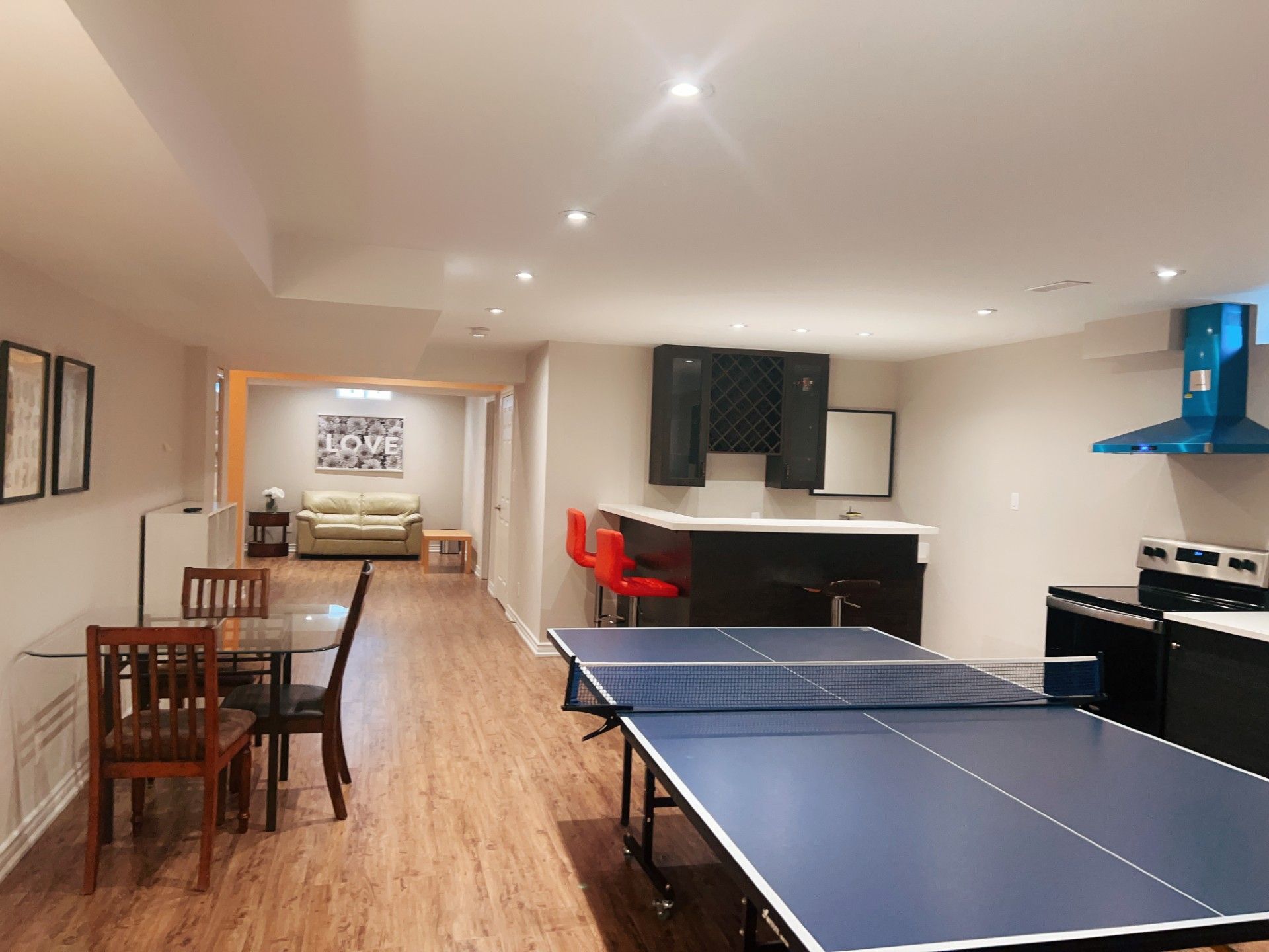 • Spacious open area featuring kitchen, bar, and living room.