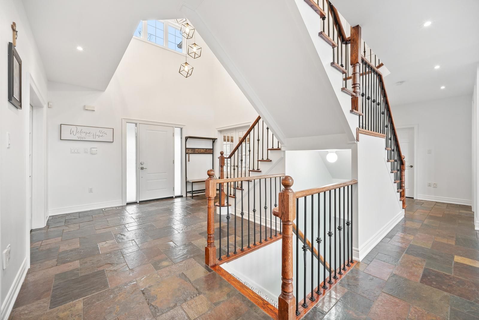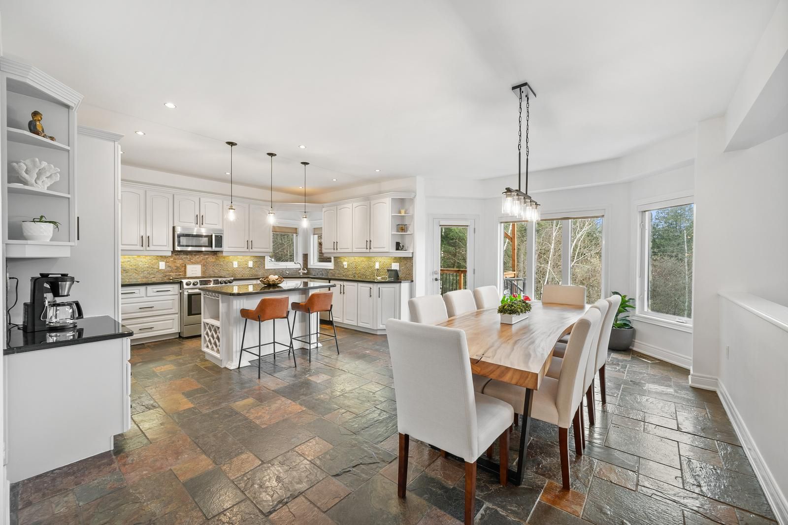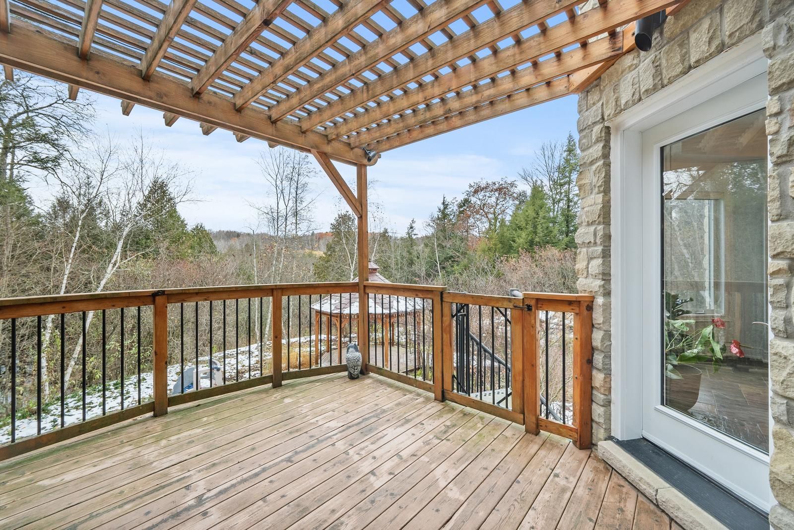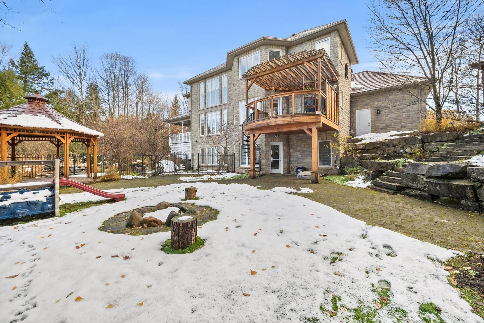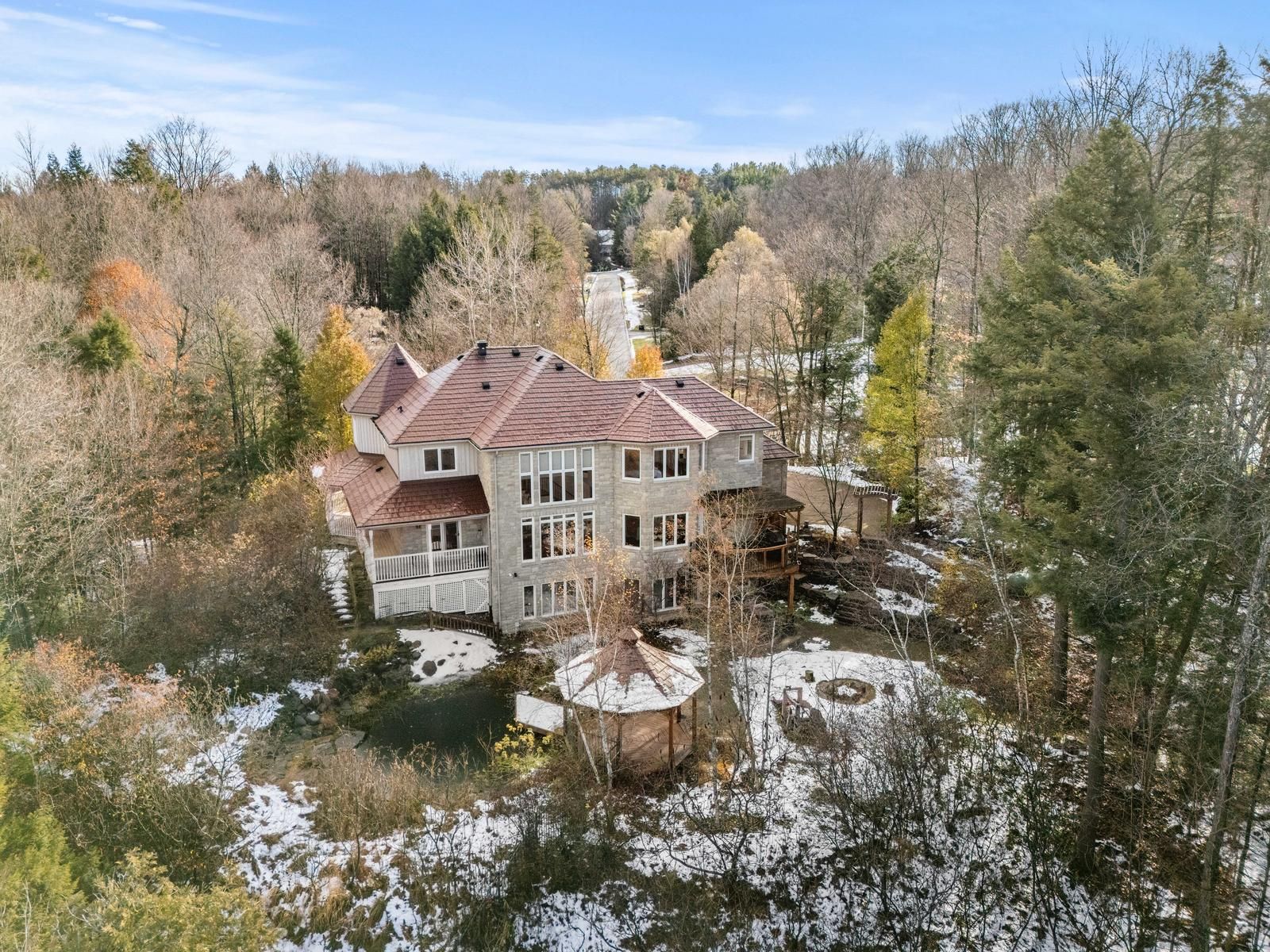 Discover this remarkable custom-built stone residence set on nearly 6 private acres in prestigious pipers hill estates, tucked away at the end of a quiet cul-de-sac. Just minutes from the city and airport, this exceptional property offers the perfect blend of peaceful country living and modern convenience. Offering approximately 5,000 sq. Ft. Of finished living space, the home welcomes you with a grand two-story foyer and a dramatic great room filled with natural light from floor-to-ceiling windows. A steel roof, wraparound porch, and timeless stone exterior enhance its impressive presence, while high-speed fiber internet (bell & vianet) ensures reliable connectivity. The open-concept kitchen features extensive cabinetry, a generous breakfast area, stainless steel appliances, and a walkout to a deck with sweeping views of the surrounding landscape. The primary suite offers a serene escape with an updated, spa-inspired ensuite and custom closets added to all bedrooms (2025). The bright, full walkout lower level includes oversized windows, a 4-piece bathroom, and direct backyard access-ideal for a recreation area, gym, or potential in-law suite. Outdoors, the property unfolds into a private natural retreat complete with interlocking stone patios, a firepit, pergola, and a hardwood forest with a stream and peaceful walking trails. With its naturalized landscape, the grounds offer privacy and beauty with minimal maintenance. Practical conveniences include a spacious 3-car garage, smart lock exterior doors, wi-fi-enabled garage door openers, an ev level 2 nacs (tesla) charger installed in 2023, and a 22kw standby power generator.