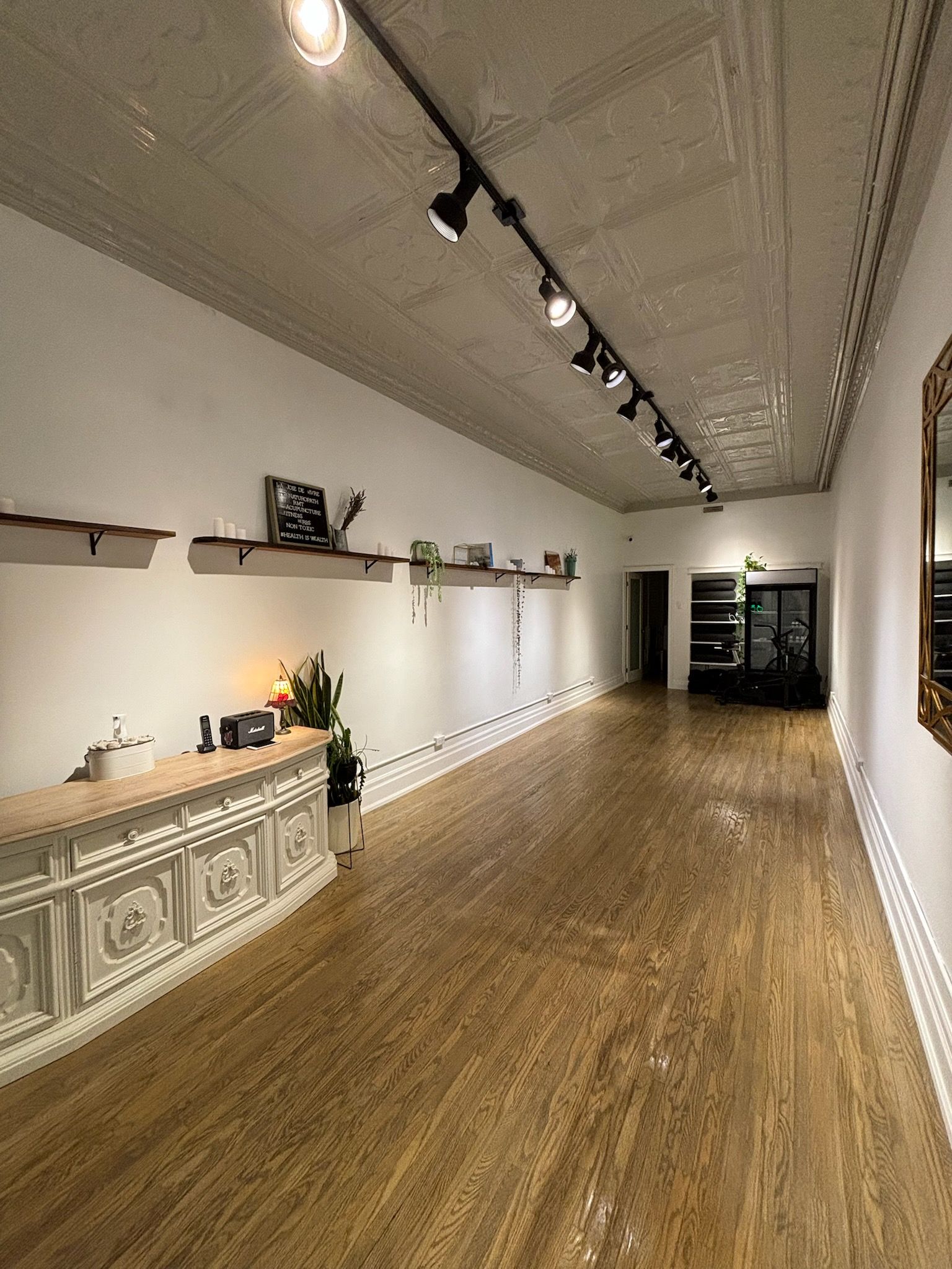 • High ceilings and gallery lighting create a bright, inviting atmosphere.