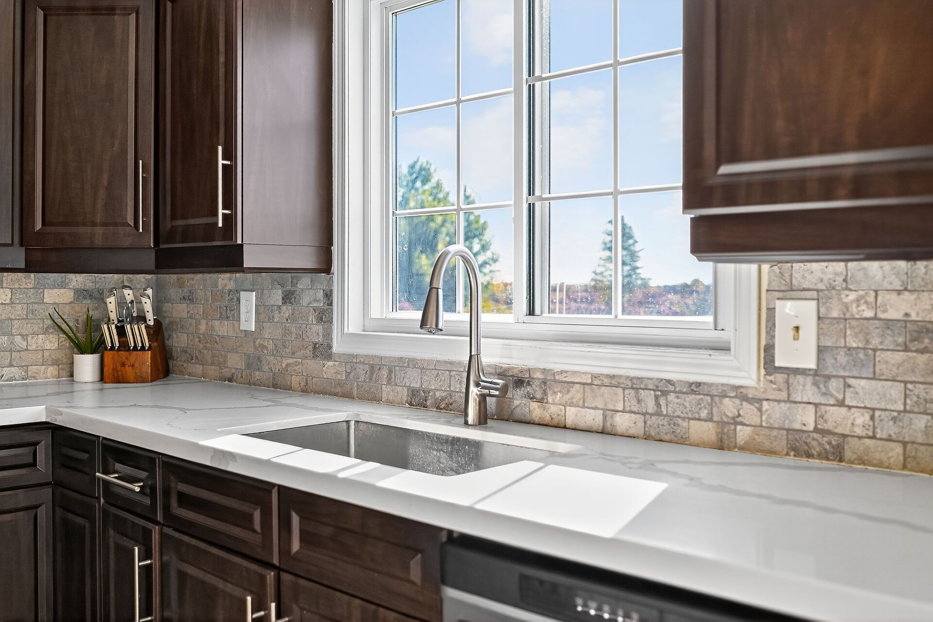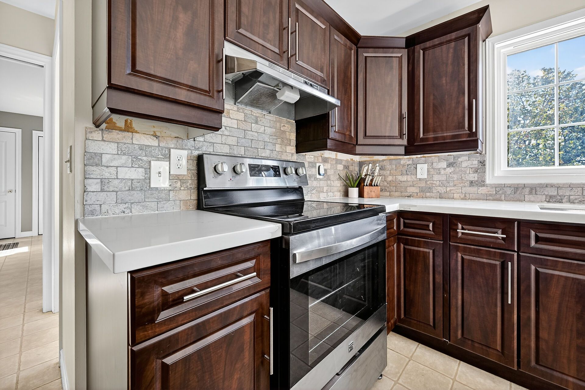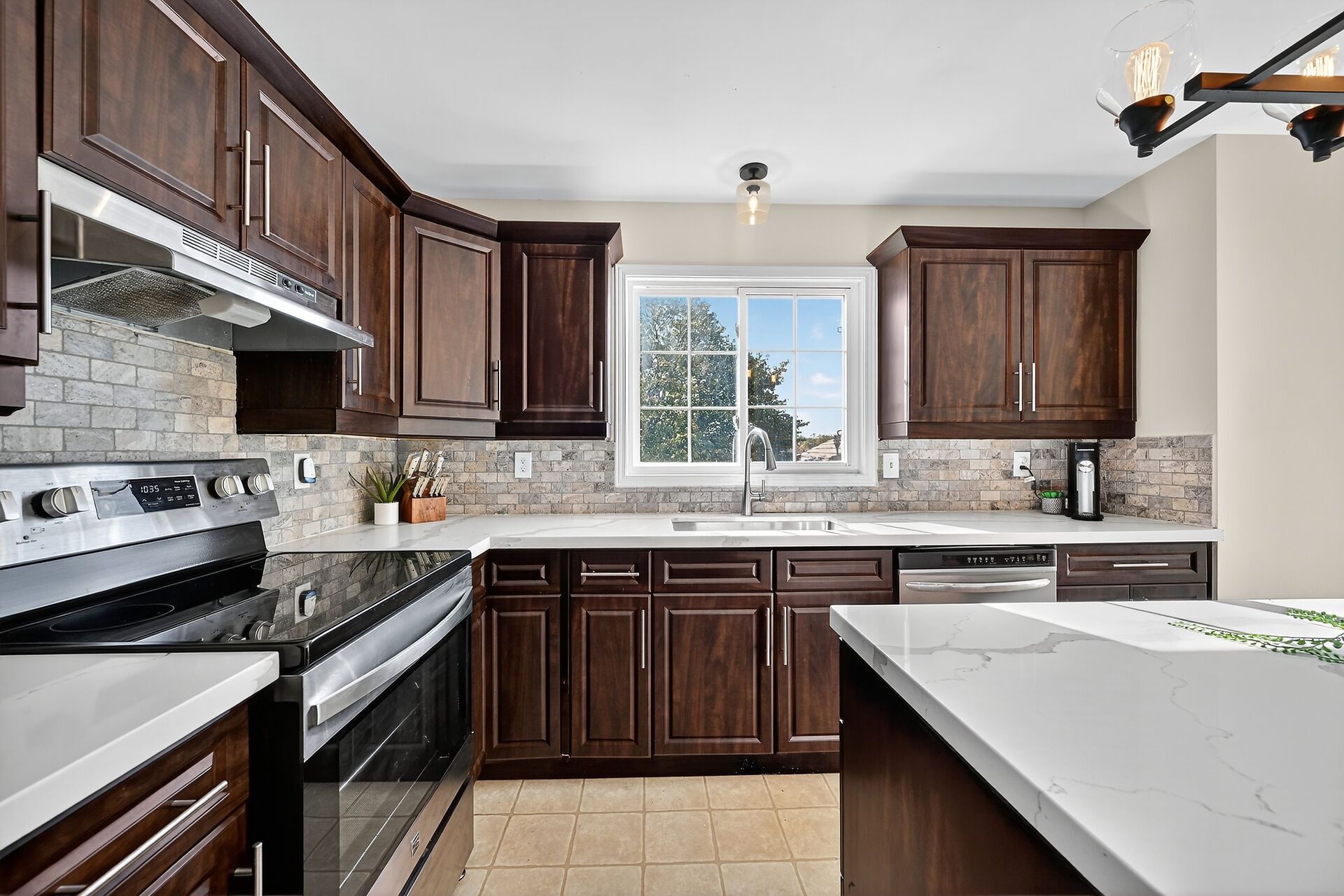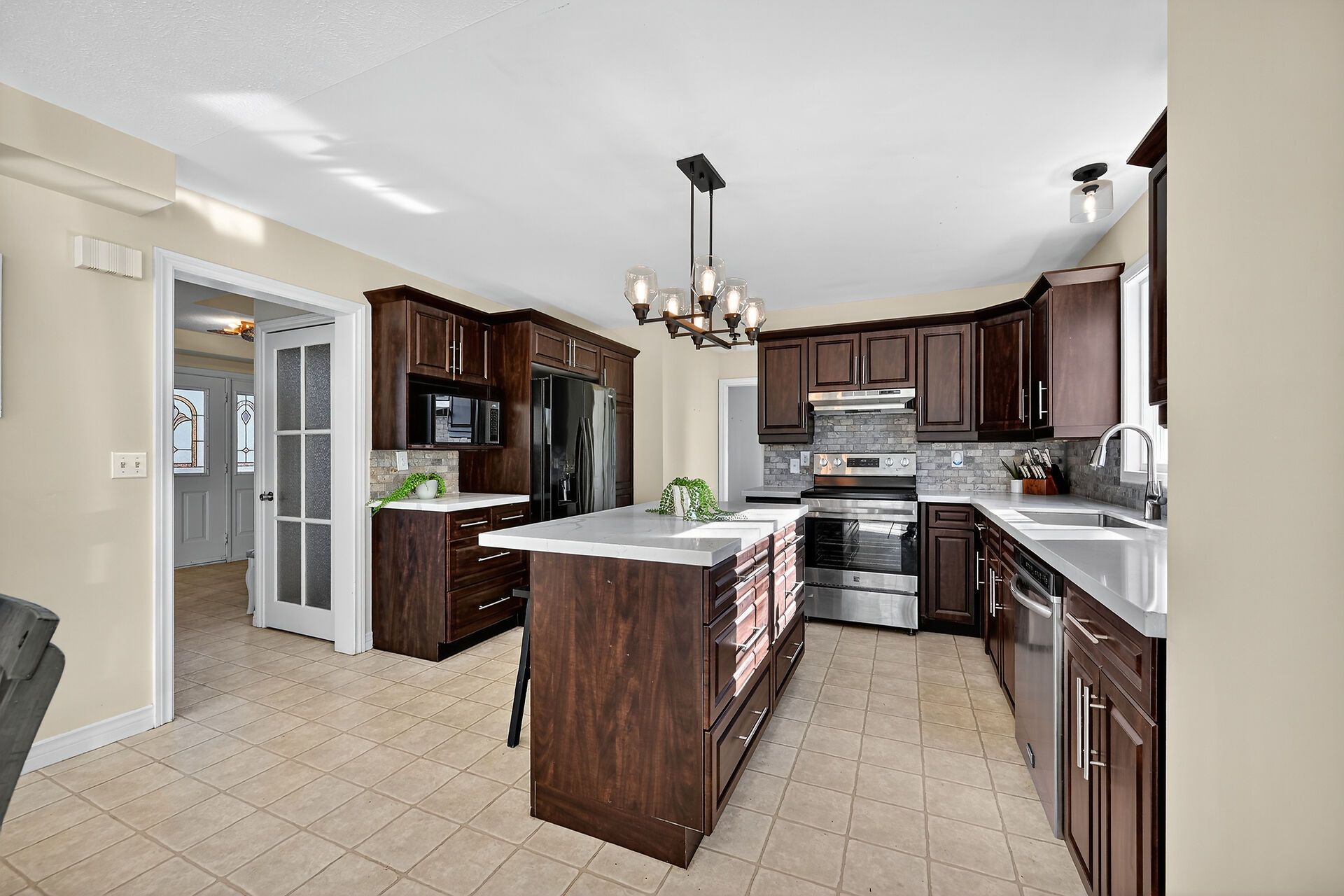 • Gourmet kitchen with quartz countertops and ample storage.