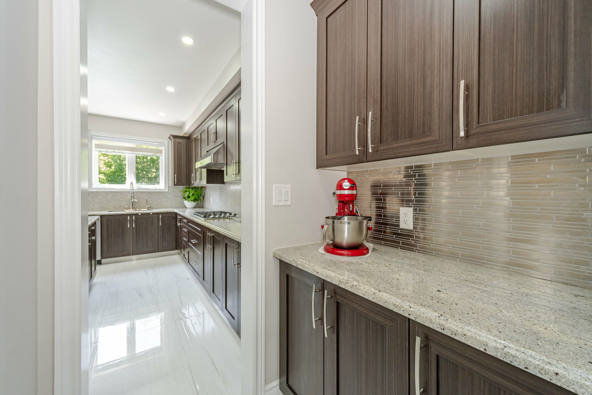 • Upgraded chef's kitchen featuring high-end appliances and a walk-in pantry.