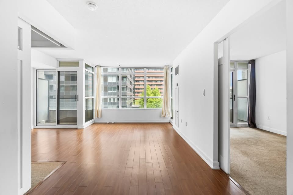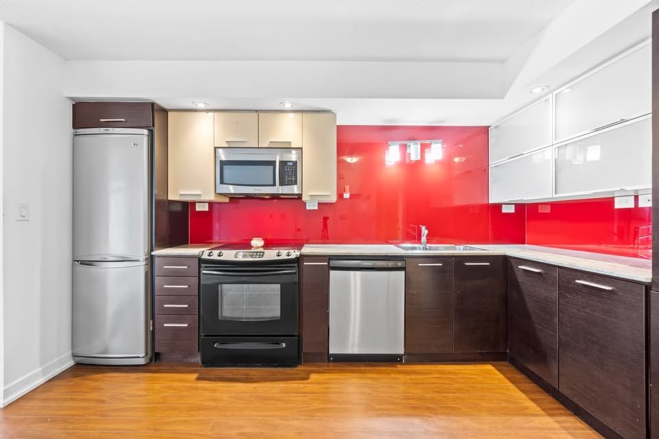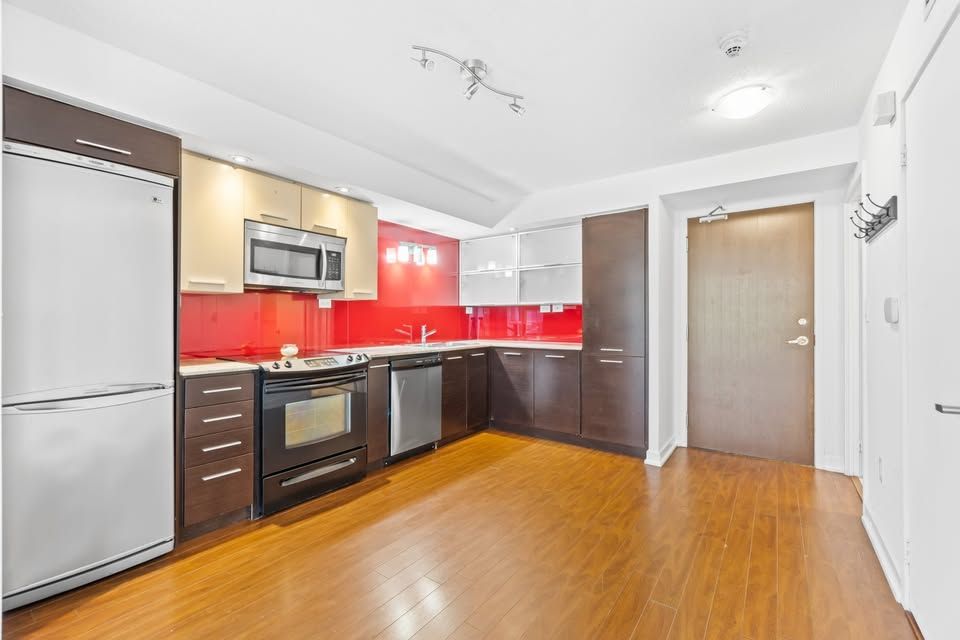 Welcome to luna condos in cityplace! This beautiful 2-bedroom + den, 2-bathroom suite offers a functional layout in one of downtown's most sought-after neighbourhoods. Featuring laminate flooring throughout the living area and kitchen, this bright and inviting unit includes a private balcony for added outdoor space. The modern kitchen is equipped with granite countertops, built-in appliances, and plenty of cabinet storage. The spacious primary bedroom offers a 4-piece ensuite, closet, and large window, while the second bedroom includes a closet and convenient access to the second full bath. Located just steps to grocery stores, a park directly across the street, and surrounded by countless cafés, restaurants, and nightlife options.