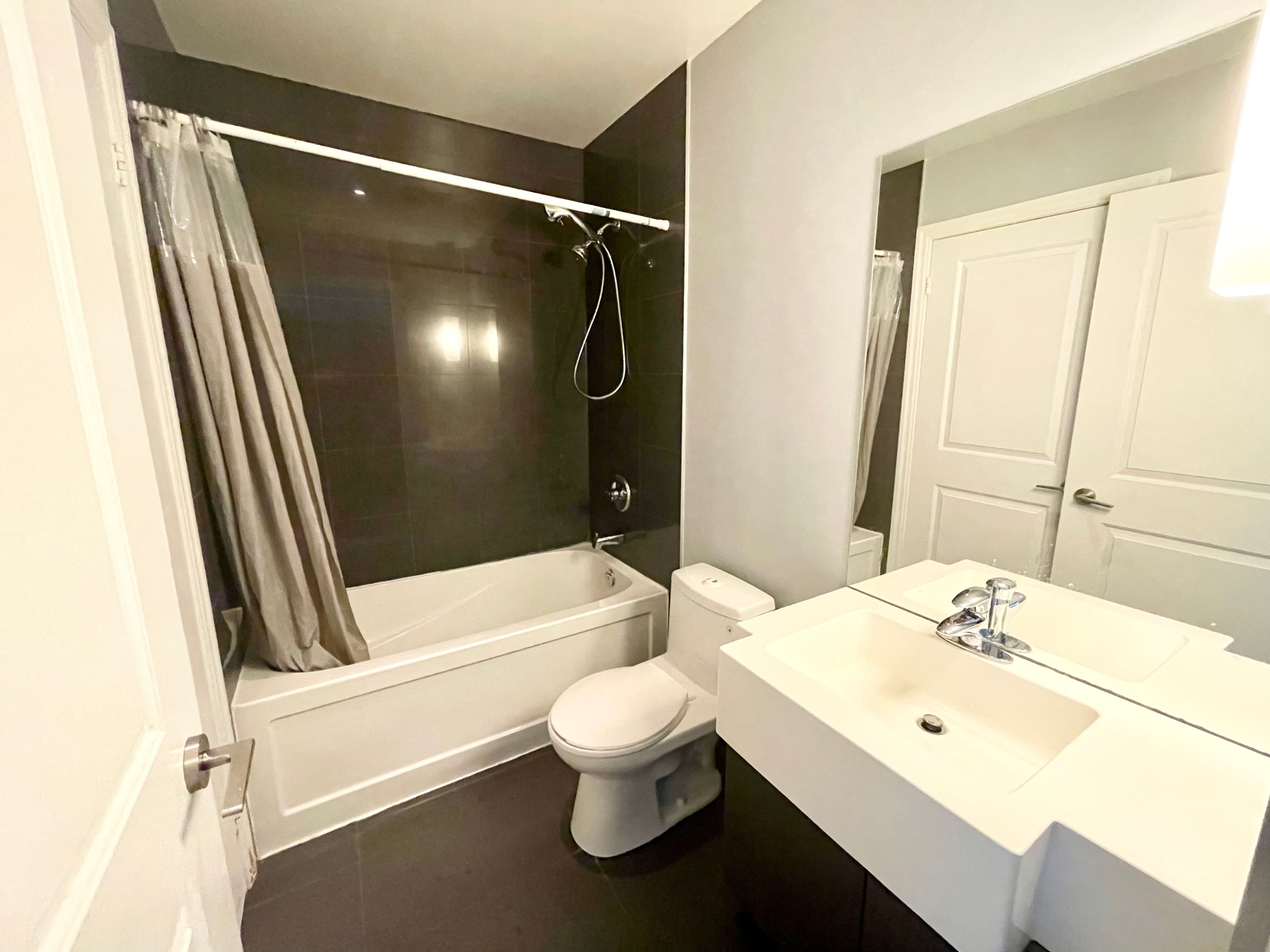 • Modern one-bedroom unit with engineered hardwood flooring throughout.