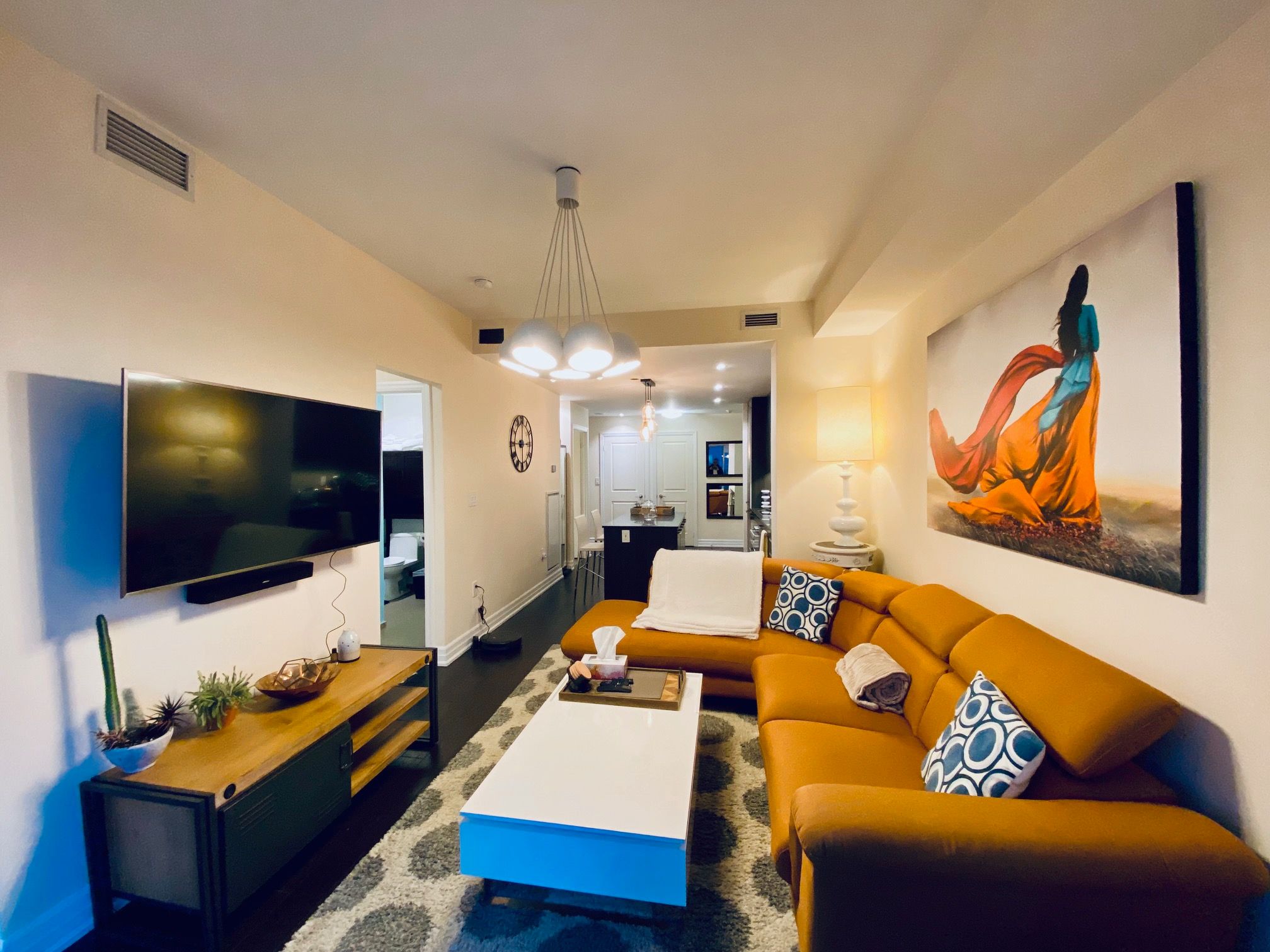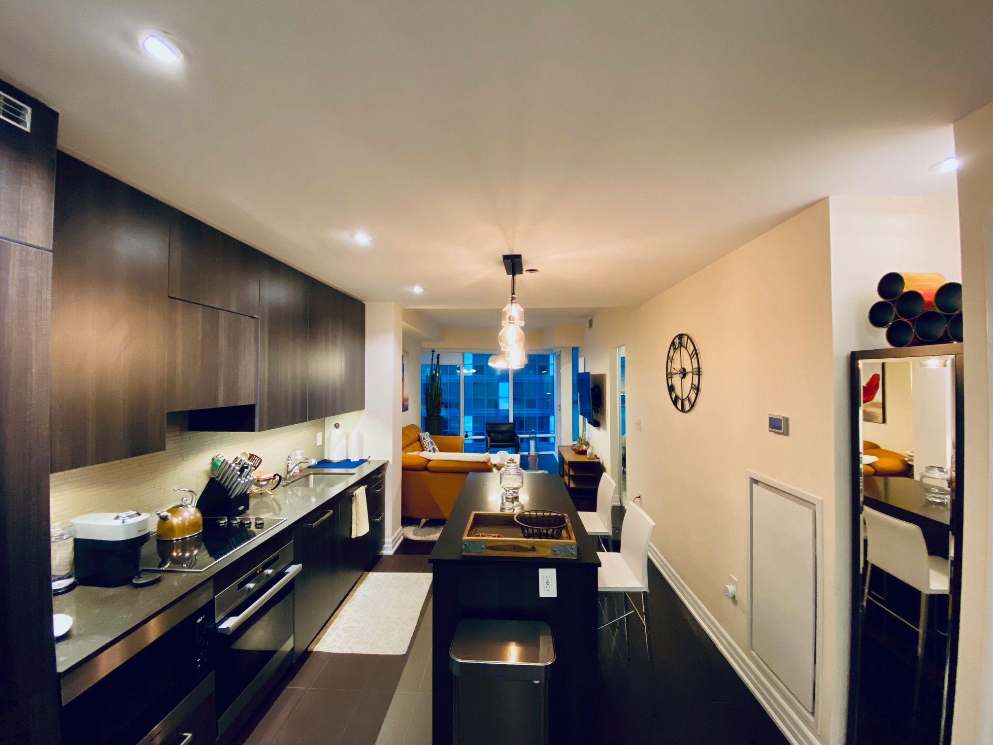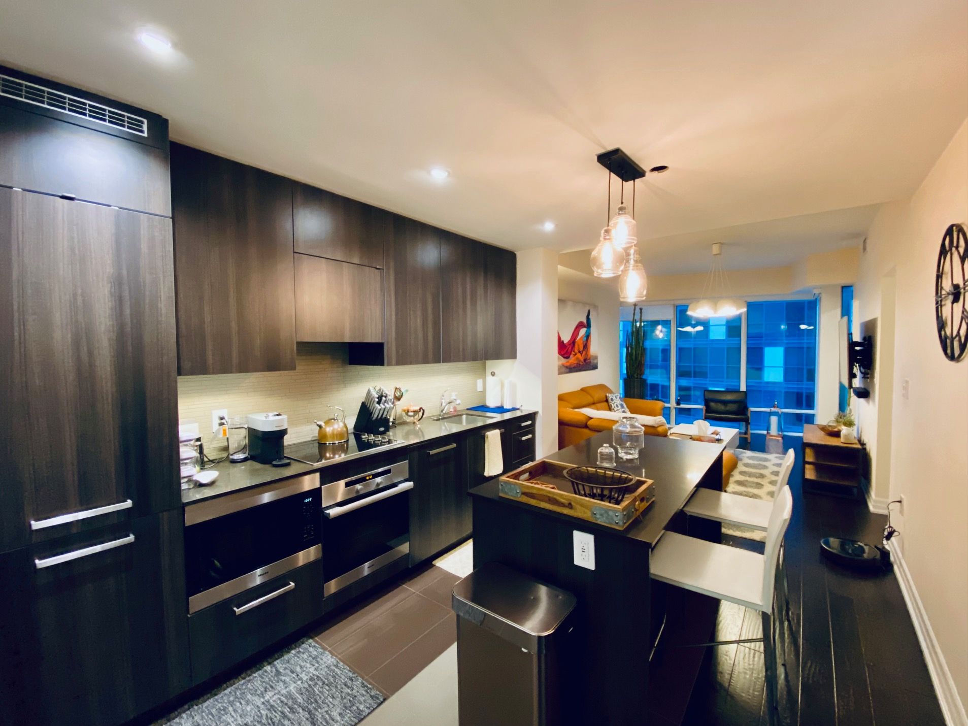 Modern, luxurious & fully furnished condo in heart of downtown toronto at l-tower. Steps away from union station, st. Lawrence market, the waterfront and berczy park you are walking distance from everything at this location. Surrounded by restaurants, pubs, grocery, pharmacies & coffee shops on all sides you will be spoiled for choice on where to go next. Impossible to be bored with tiff, the flat iron, rogers centre minutes away! This luxury building and unit is perfect for the working professional in town on business. The space has a queen size bed, two full baths, full kitchen and a den that can be used for a workspace. The condo has been equipped to be a home away from home with all the everyday necessities you will need. This includes a variety of coffee and tea, cleaning supplies, basic toiletries and cleaning supplies. There is a nespresso machine & keurig with coffee and hot chocolate pods. Ensuite washer and dryer. A balcony with a great view. Lots of plugs throughout the condo that also have usb ports. Lights have dimmers on them. The bed has a mattress pad than can be taken off at your comfort and convenience for a firmer or softer nights sleep. The coffee table top also pulls up to meet you at chest level to eat or work on. A full gym with a yoga room, sauna and pool available on second floor. The pool has a skylight and loungers so you feel like you're outdoors! Though we're in the heart of downtown it is exceptionally quiet in the unit **extras** fully furnished with cleaning service available(wifi + hydro + parking/locker negotiable)