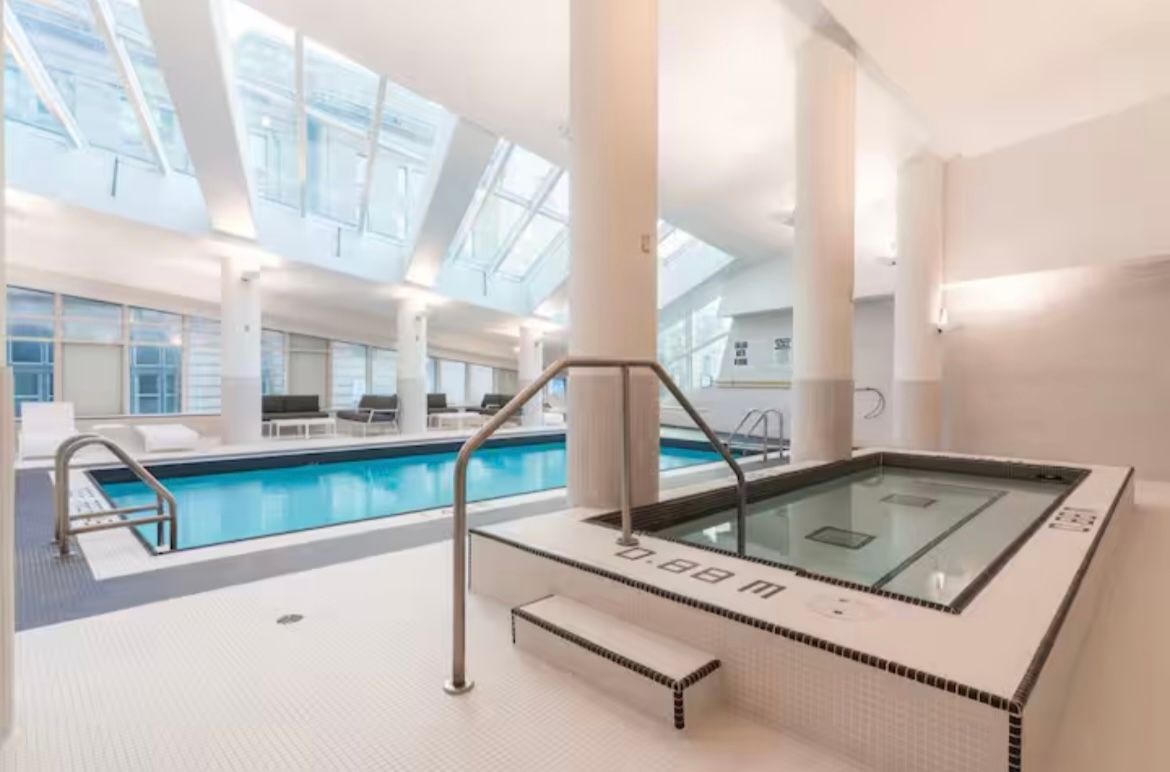 • Enjoy amenities like a gym, sauna, and pool with skylight.