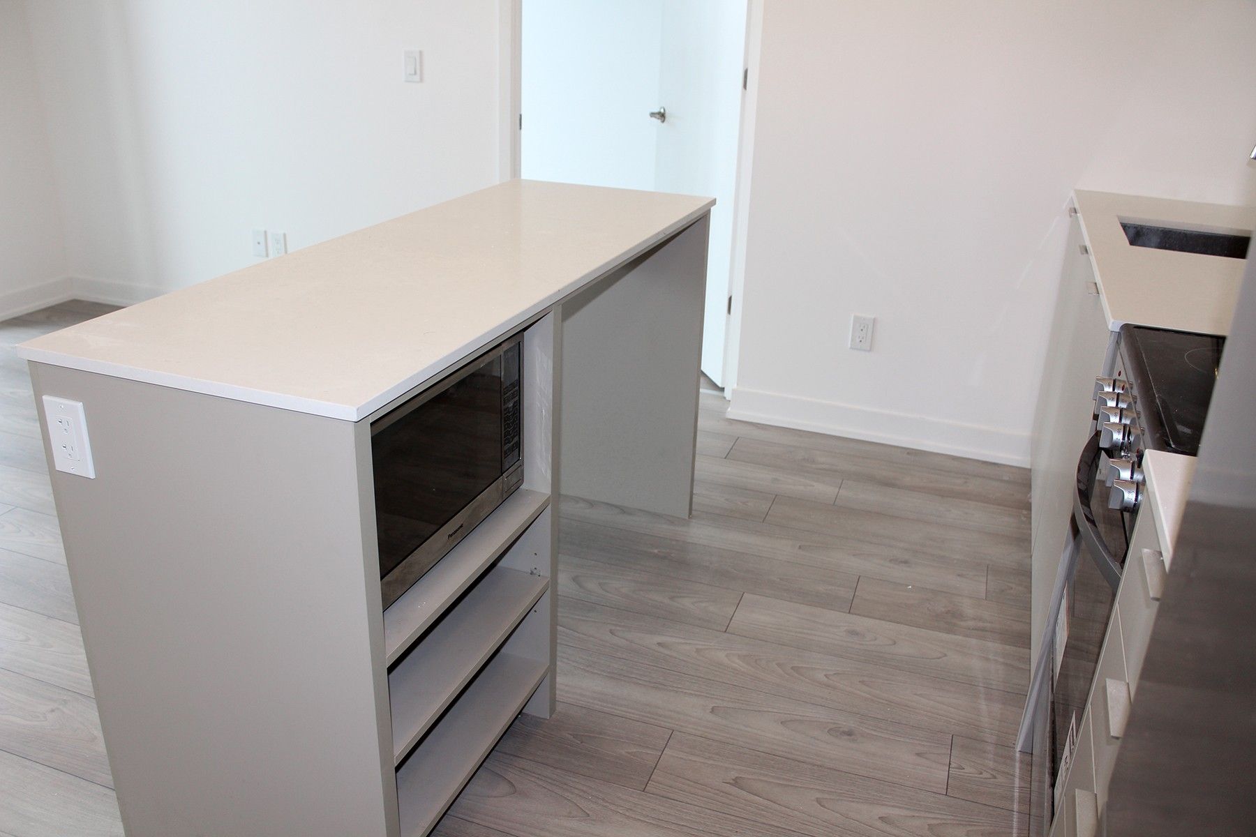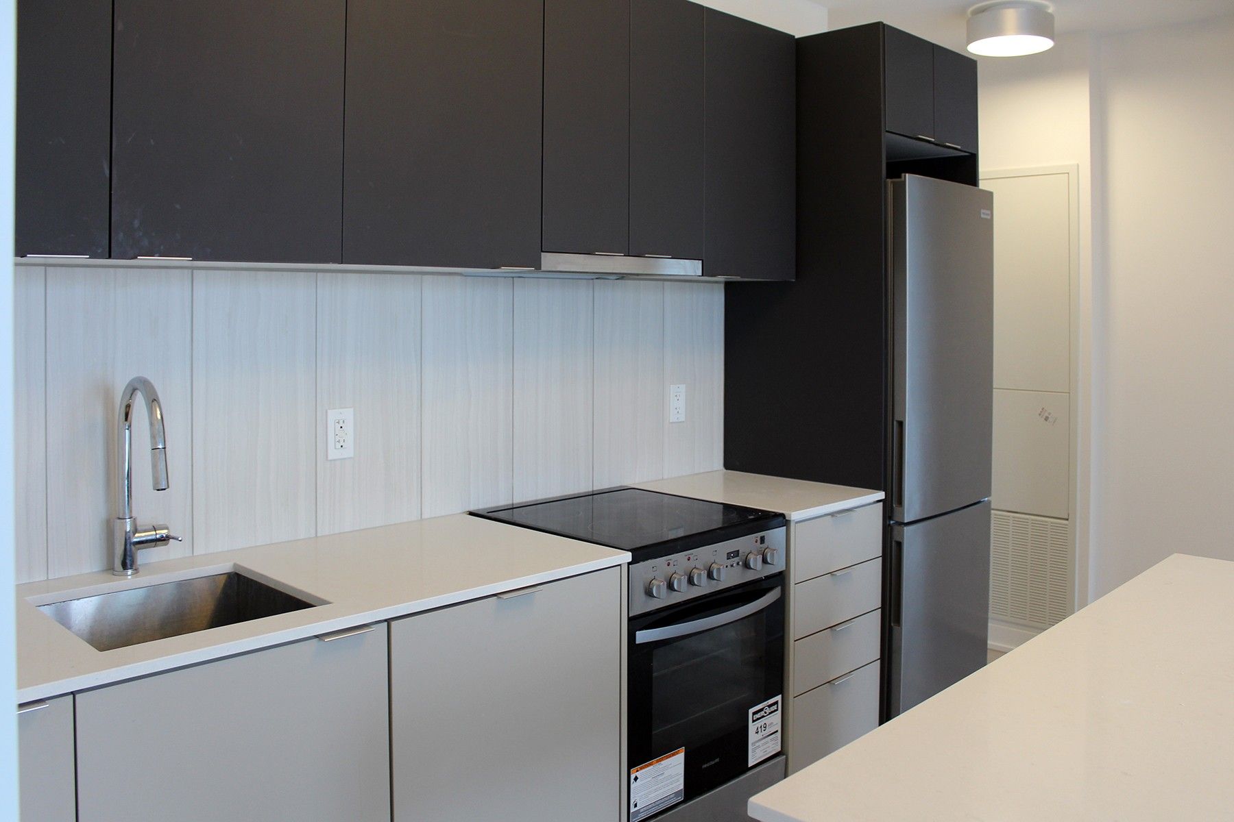• Modern kitchen featuring integrated appliances and sleek finishes for convenience.