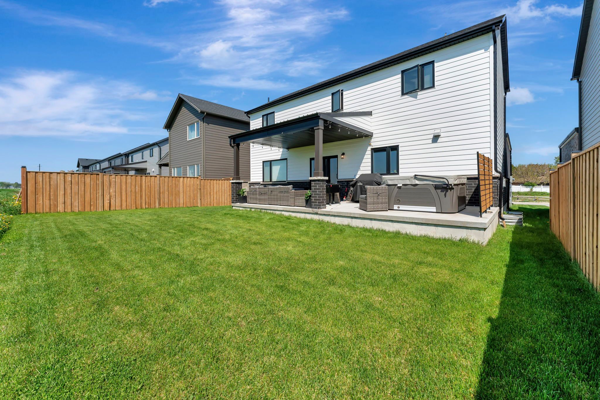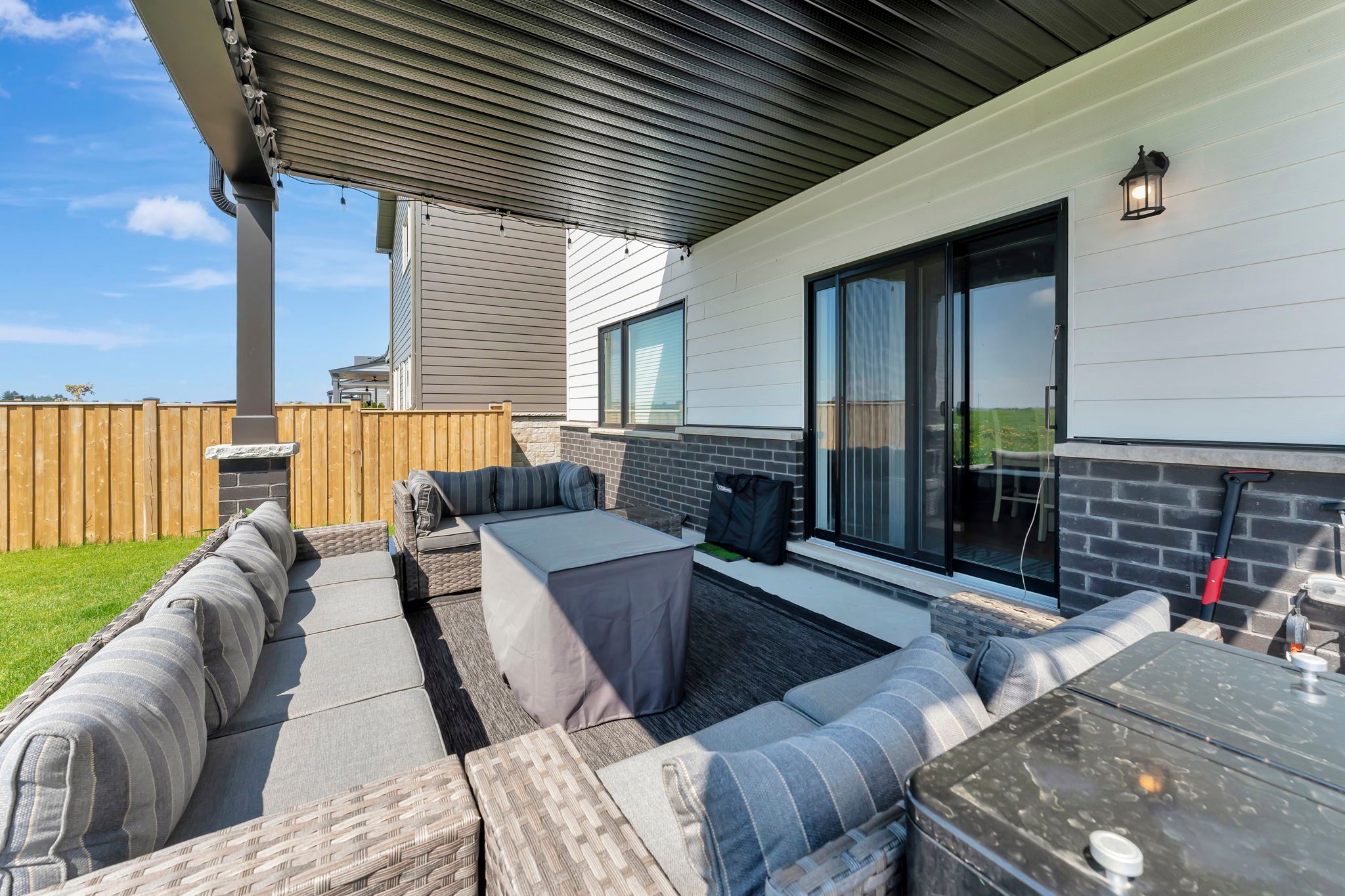 • Covered rear patio offering beautiful countryside views for relaxation.