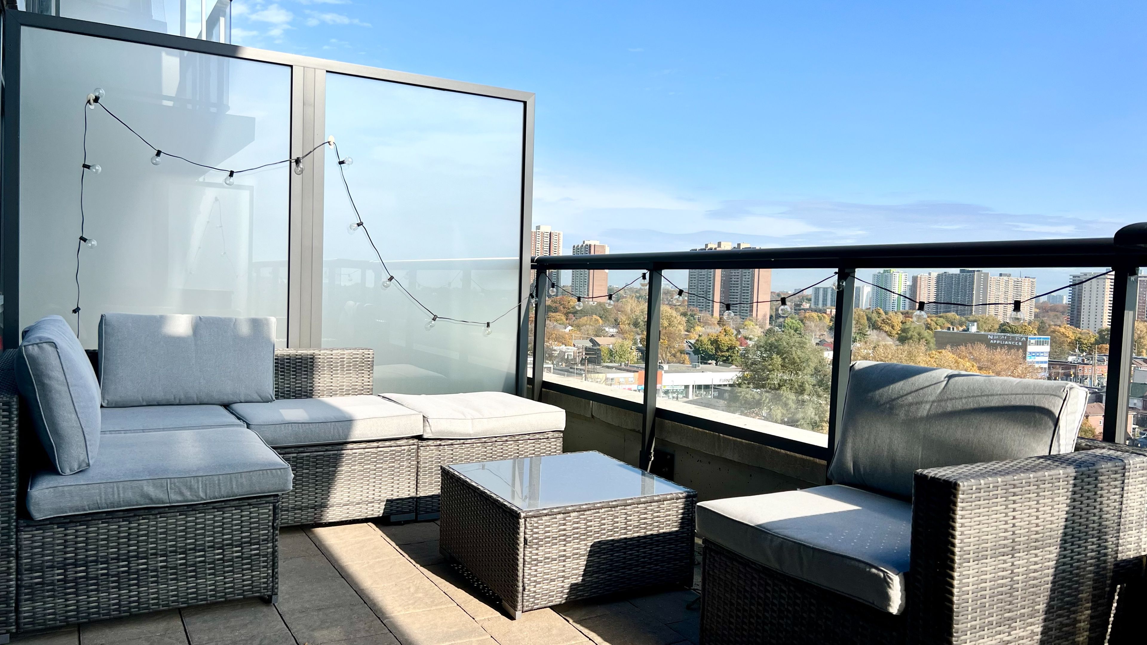Fully furnished | utilities included | exceptional private terrace. Available (april 1 2026 to october 1st 2026) experience elevated city living in this beautifully furnished 1-bedroom, 1-bathroom suite featuring a rare oversized east-facing terrace - perfect for outdoor dining, morning coffee, or entertaining. The suite is filled with natural light thanks to floor-to-ceiling windows, creating a bright and inviting atmosphere. The spacious bedroom includes a walk-in closet, while the modern kitchen features stainless steel appliances and a breakfast island ideal for casual dining or hosting. Enjoy the convenience of in-suite laundry and a fully furnished, turnkey living experience designed for comfort and style. Ideal for professionals, relocations, or mid-term stays seeking refined living in the city. Parking: underground assigned. Utilities included. Flexible furnished lease options available.