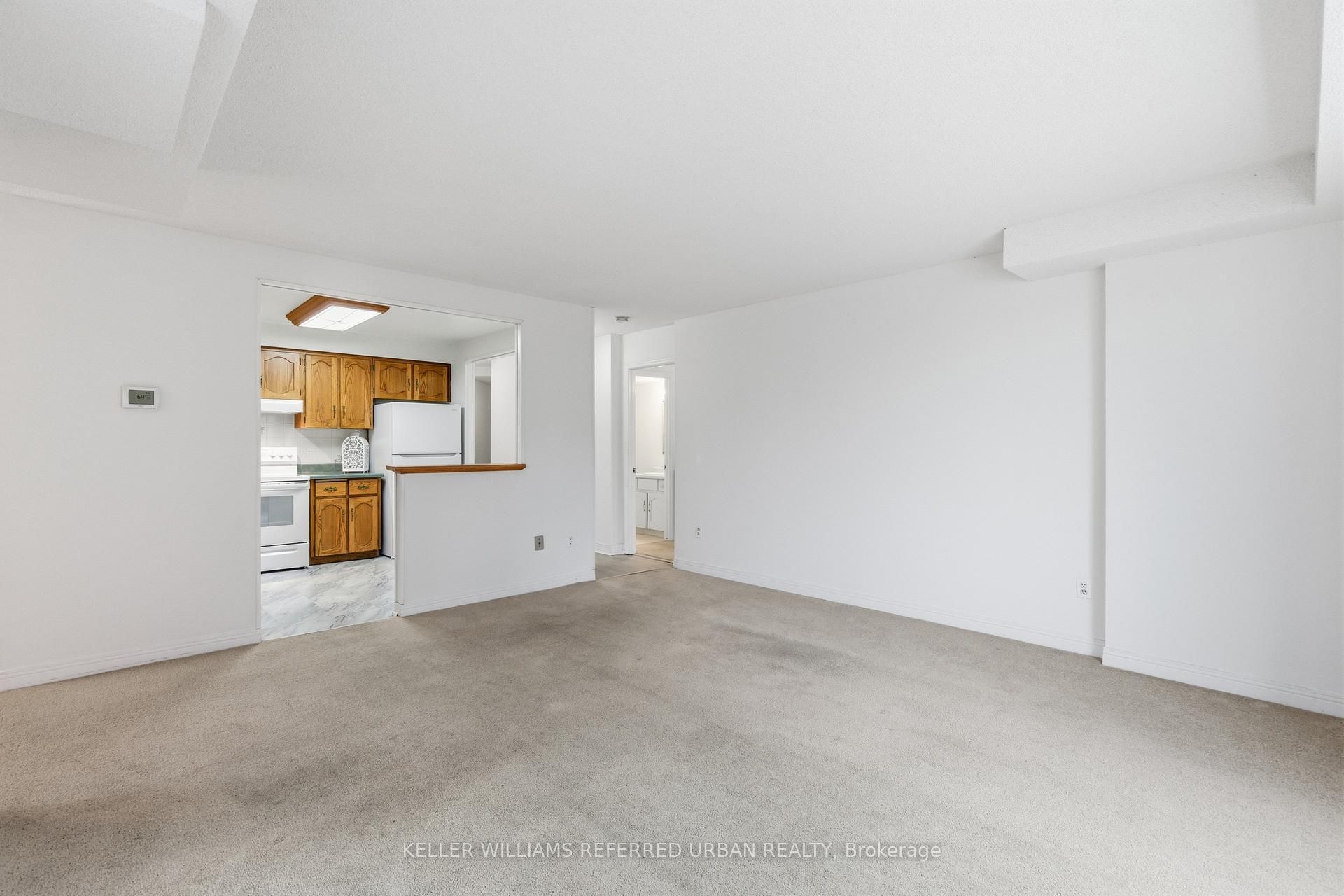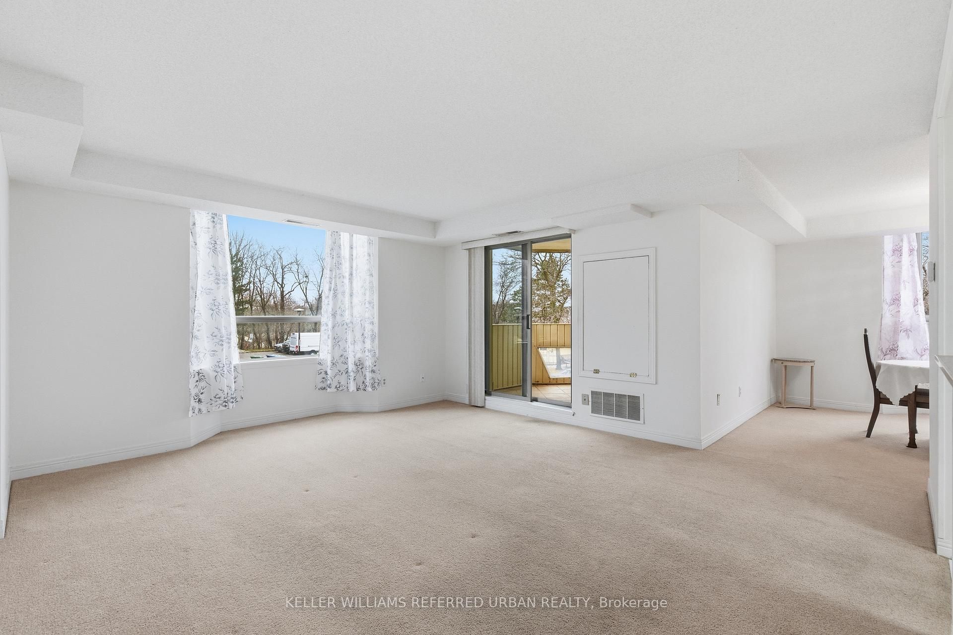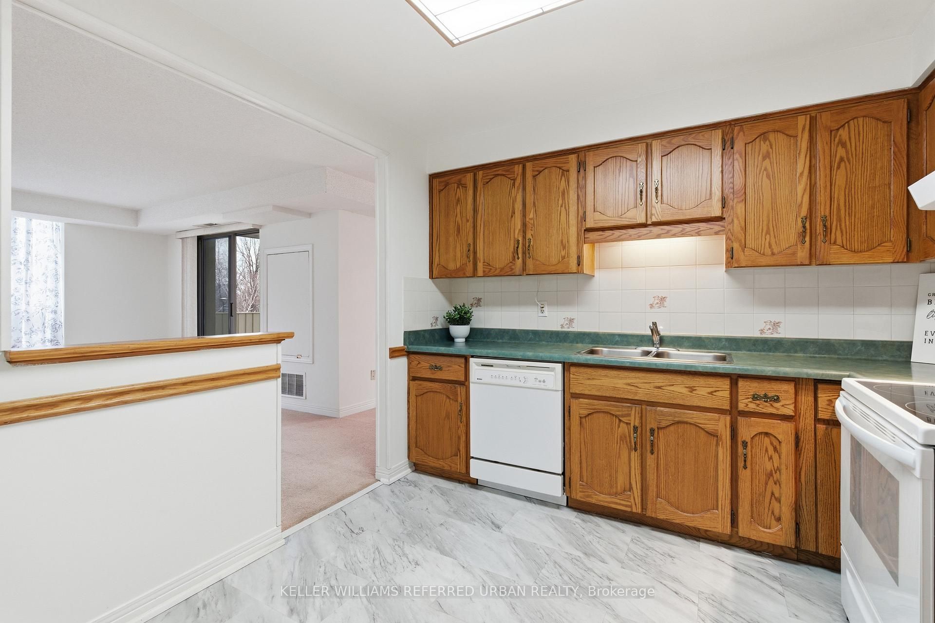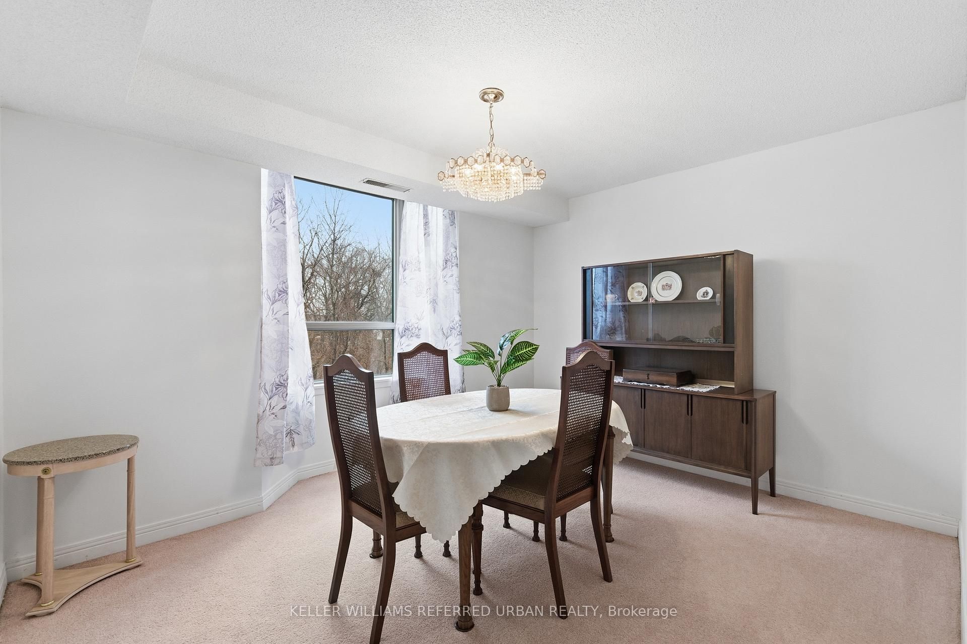 Welcome to 8 village green, stoney creek, located in stoney creek's historic and charming downtown king street area with quaint shops and restaurants. This well-maintained condominium apartment offers comfortable and spacious living (approx. 1200 sf) in a desirable, wellmanaged community, popular with seniors and downsizers. Featuring 2 oversized bedrooms and 2 full bathrooms, a separate dining room for entertaining, and a bright and roomy living area with walk-out to a private balcony large enough for a patio set: this home is ideal for relaxed everyday living and great for someone who wants a smaller space and no snow to shovel! Residents enjoy excellent building amenities including a workshop, library, exercise room, and party room with kitchen area. Convenient underground parking spot right near the elevator entry. Located close to shopping, parks, transit, major highway access, centennial parkway, the battlefield house and park, devil's punchbowl and waterfall, and the bruce trail . The suite overlooks the back of the building where there is serene greenspace and trees for privacy. Absolutely ideal for downsizers who still want space and a separate dining area, first-time buyers who want a large condo, or anyone seeking lowmaintenance, easy and enjoyable condo living. Lovingly cared for and maintained the condo has been freshly painted with new modern laminate floors in the hallways (2026).